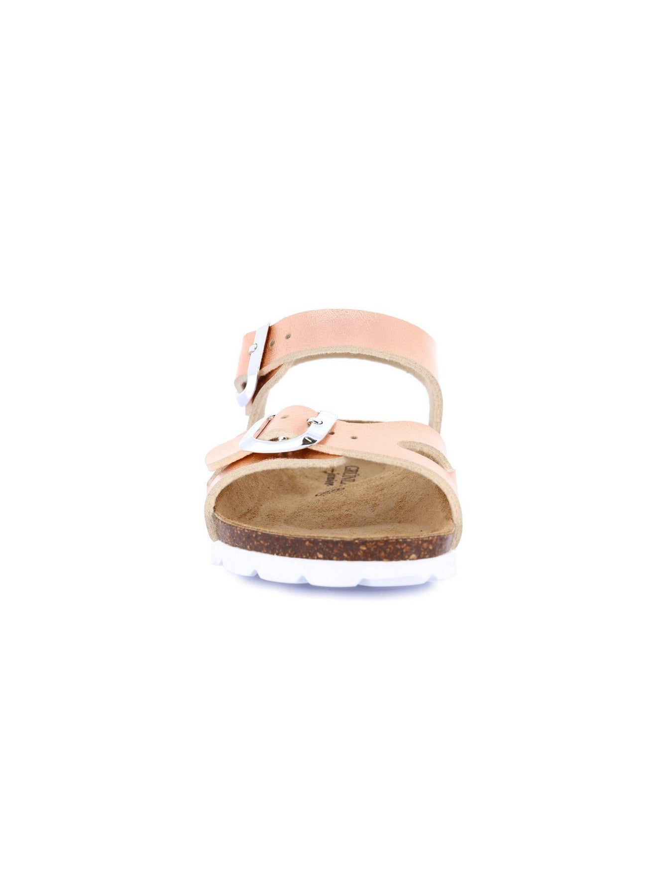 La suola in sughero naturale garantisce un'ottima ammortizzazione, mentre la base in gomma antiscivolo assicura stabilità ad ogni passo. Il colore cipria con effetto metallizzato aggiunge un tocco glamour che si abbina facilmente ad abiti, shorts o gonnelline.