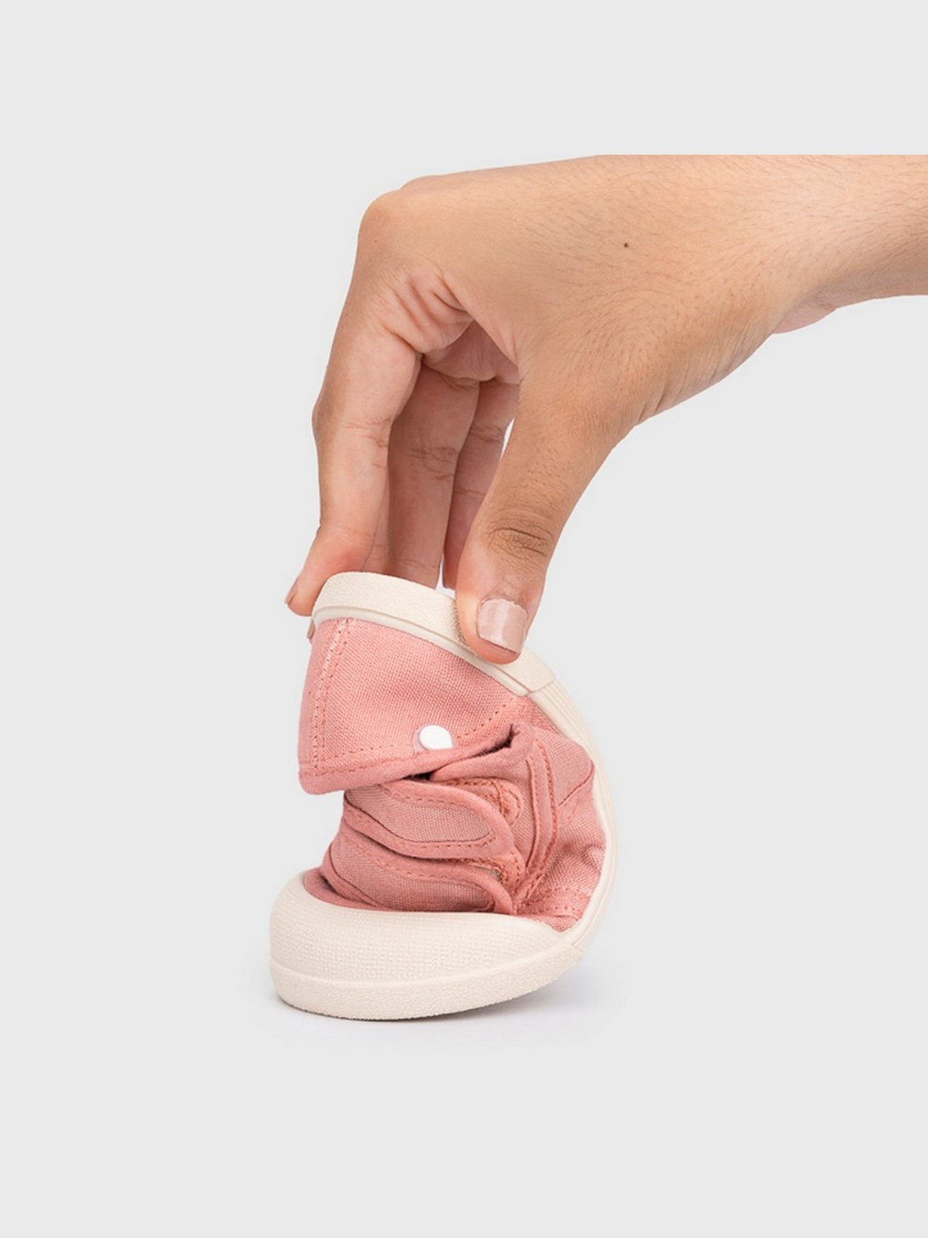 Il design con doppio strappo facilita la calzata autonoma, mentre la punta ampia e la suola piatta, flessibile e antiscivolo favoriscono il movimento naturale e sicuro. Realizzata in cotone traspirante, è perfetta per l'uso quotidiano, dalla scuola al gioco all'aperto.