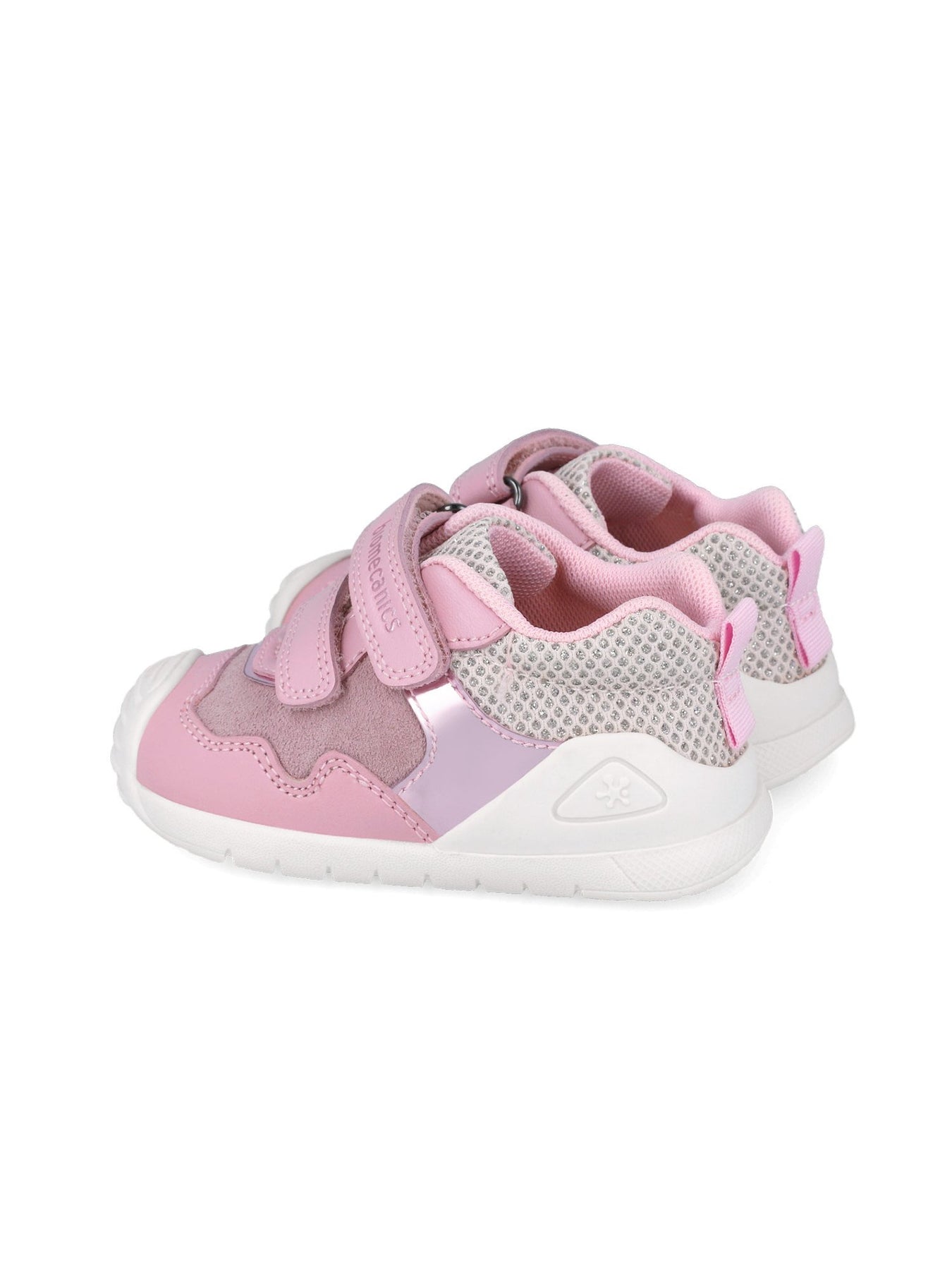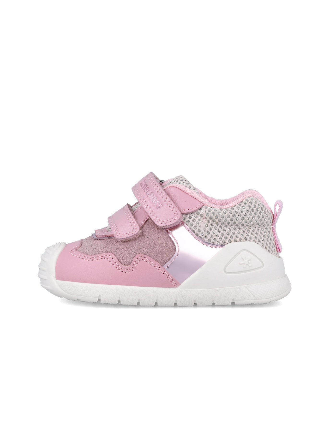 Questa sneaker è progettata per sostenere al meglio lo sviluppo naturale del piede. La tomaia in mesh leggero e inserti in pelle scamosciata garantiscono traspirabilità e resistenza, mentre i dettagli rosa e metallizzati aggiungono un tocco femminile e moderno.