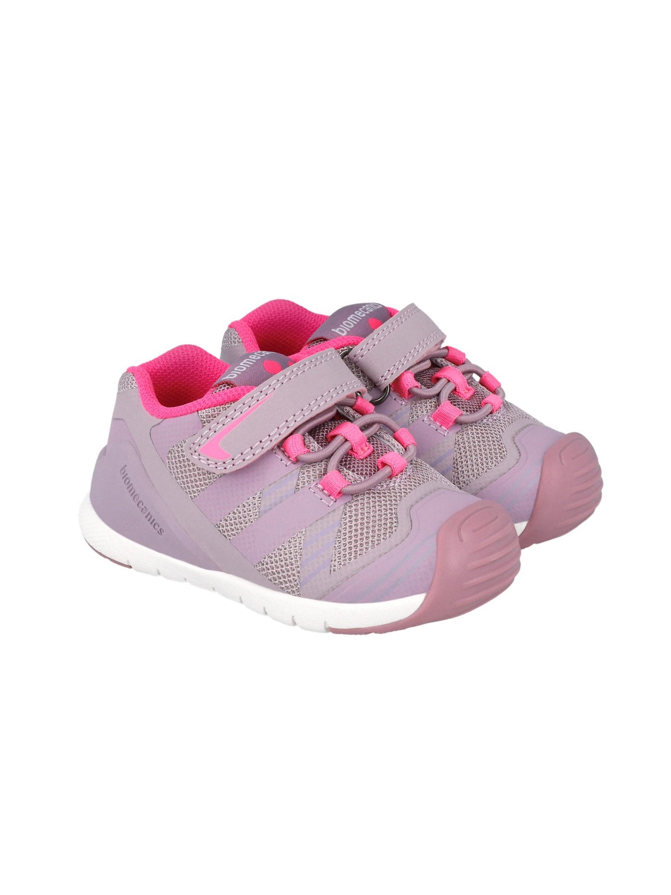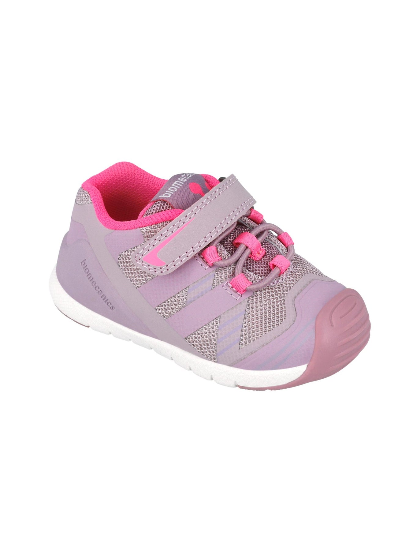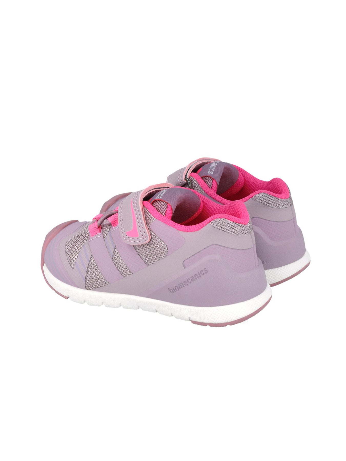 Questa sneaker è pensata per il corretto sviluppo del piede, grazie a una struttura ergonomica e materiali traspiranti. La tomaia in mesh tecnico con rinforzi sintetici garantisce freschezza, durata e stabilità, mentre il design lilla con accenti rosa rende la scarpa allegra e moderna.