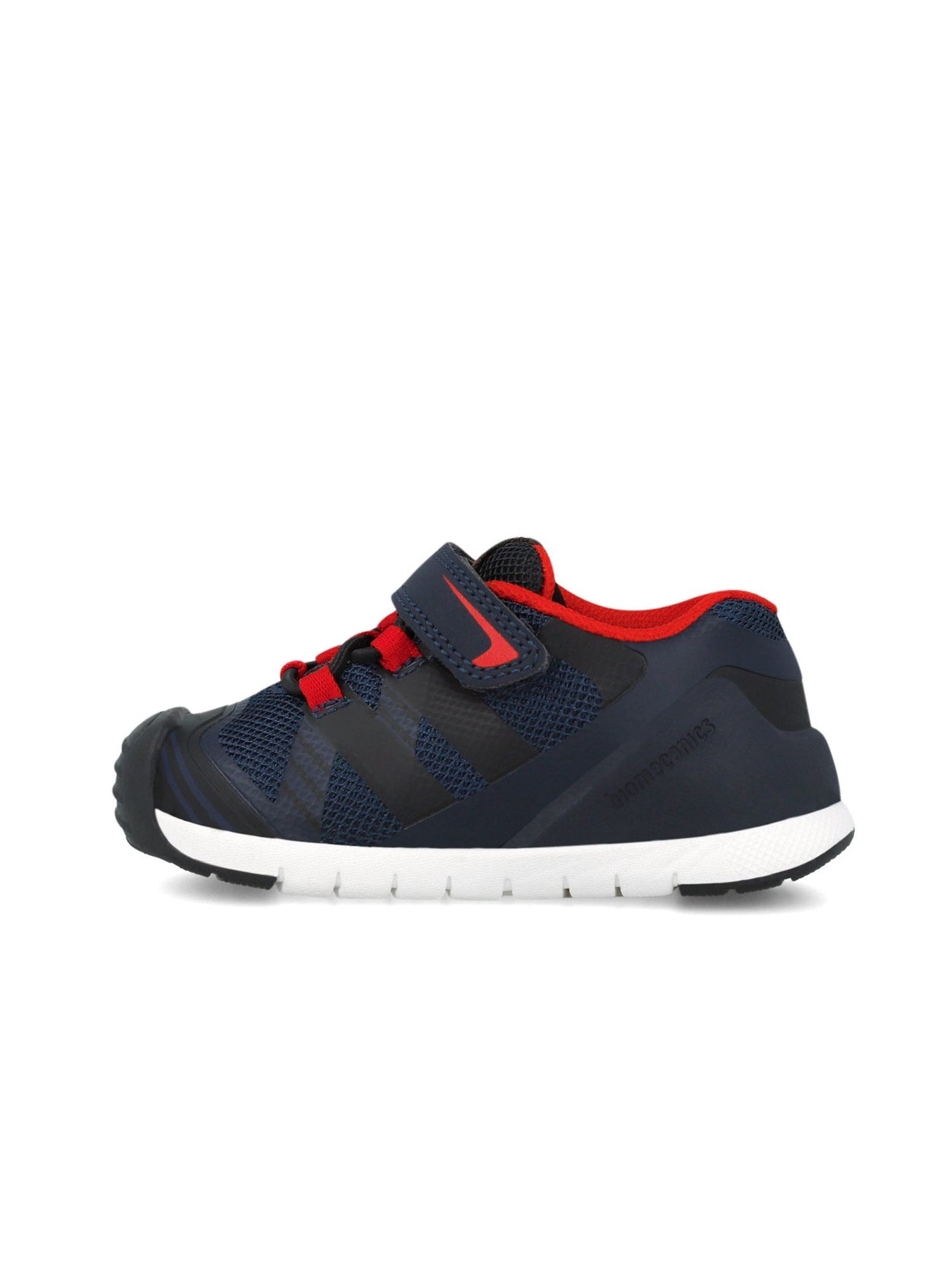 Questa sneaker è progettata per accompagnare lo sviluppo naturale del piede, offrendo sostegno e libertà di movimento. La tomaia in mesh traspirante con rinforzi resistenti assicura durata e ventilazione, mentre il design sportivo rende la scarpa moderna e pratica.