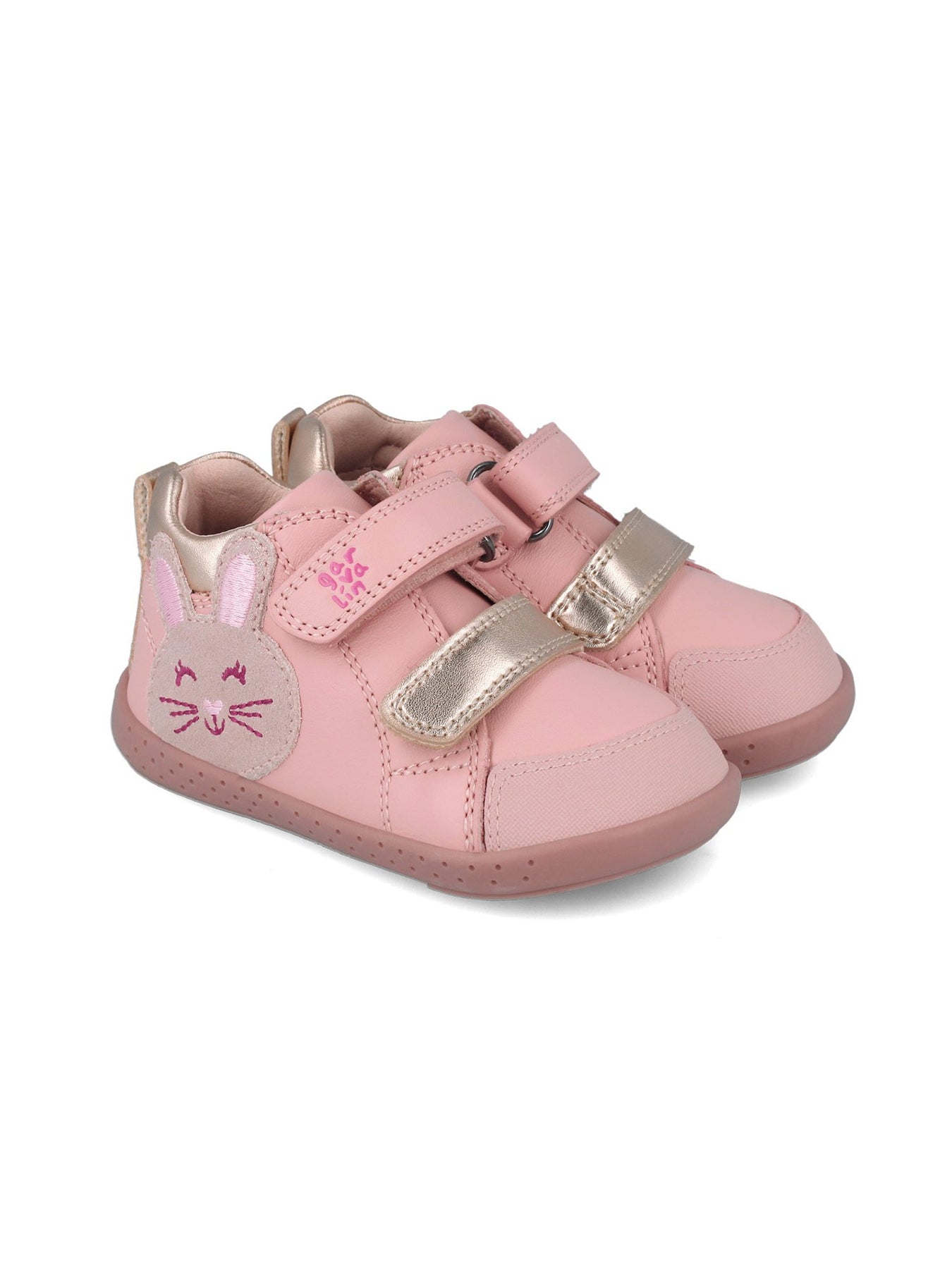 Questa sneaker è realizzata in materiali resistenti e morbidi per garantire comodità e protezione ai piedi dei più piccoli. Il design vivace in rosa è arricchito da una simpatica applicazione con faccina di coniglietto, ideale per le bambine.