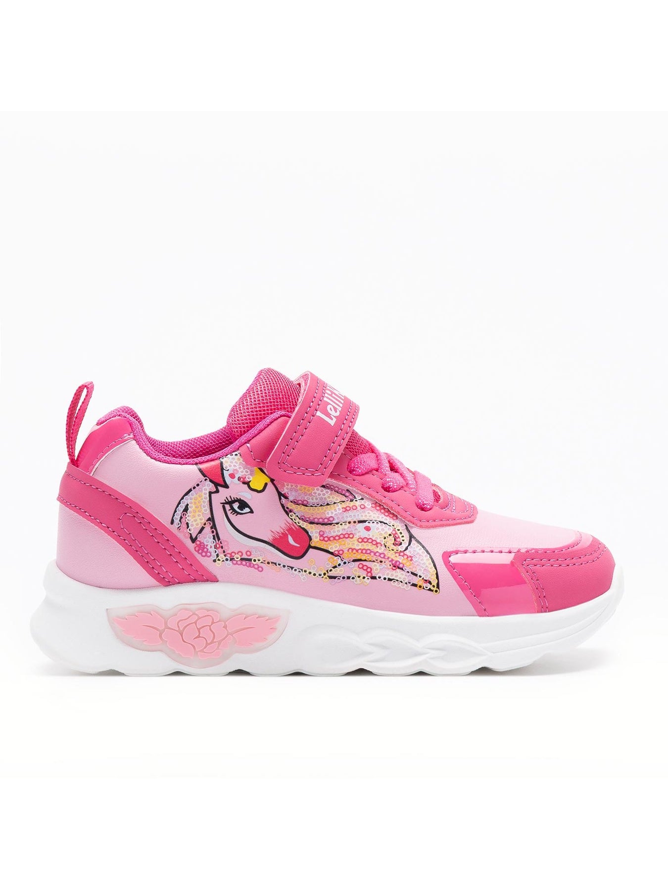 Questa sneaker è realizzata in materiale resistente e leggero, con un design vivace e dettagli scintillanti. Sul lato spicca un grande unicorno glitterato, che rende la scarpa allegra e magica per le più piccole.