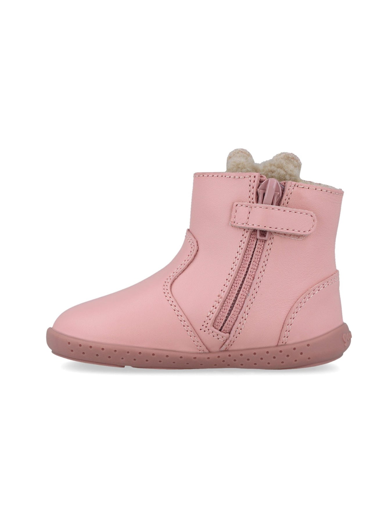 Questo tronchetto è pensato per offrire protezione e comfort ai piedi dei più piccoli. La tomaia morbida e resistente in rosa è arricchita da un'applicazione con la faccina di un coniglietto, che dona un look allegro e originale.