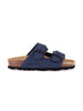 La tomaia in materiale effetto scamosciato abbinata al plantare anatomico in sughero favorisce la corretta postura del piede, assicurando un sostegno naturale anche durante lunghe passeggiate. La suola nera antiscivolo completa questo sandalo pratico e resistente, adatto per l'uso quotidiano in estate.