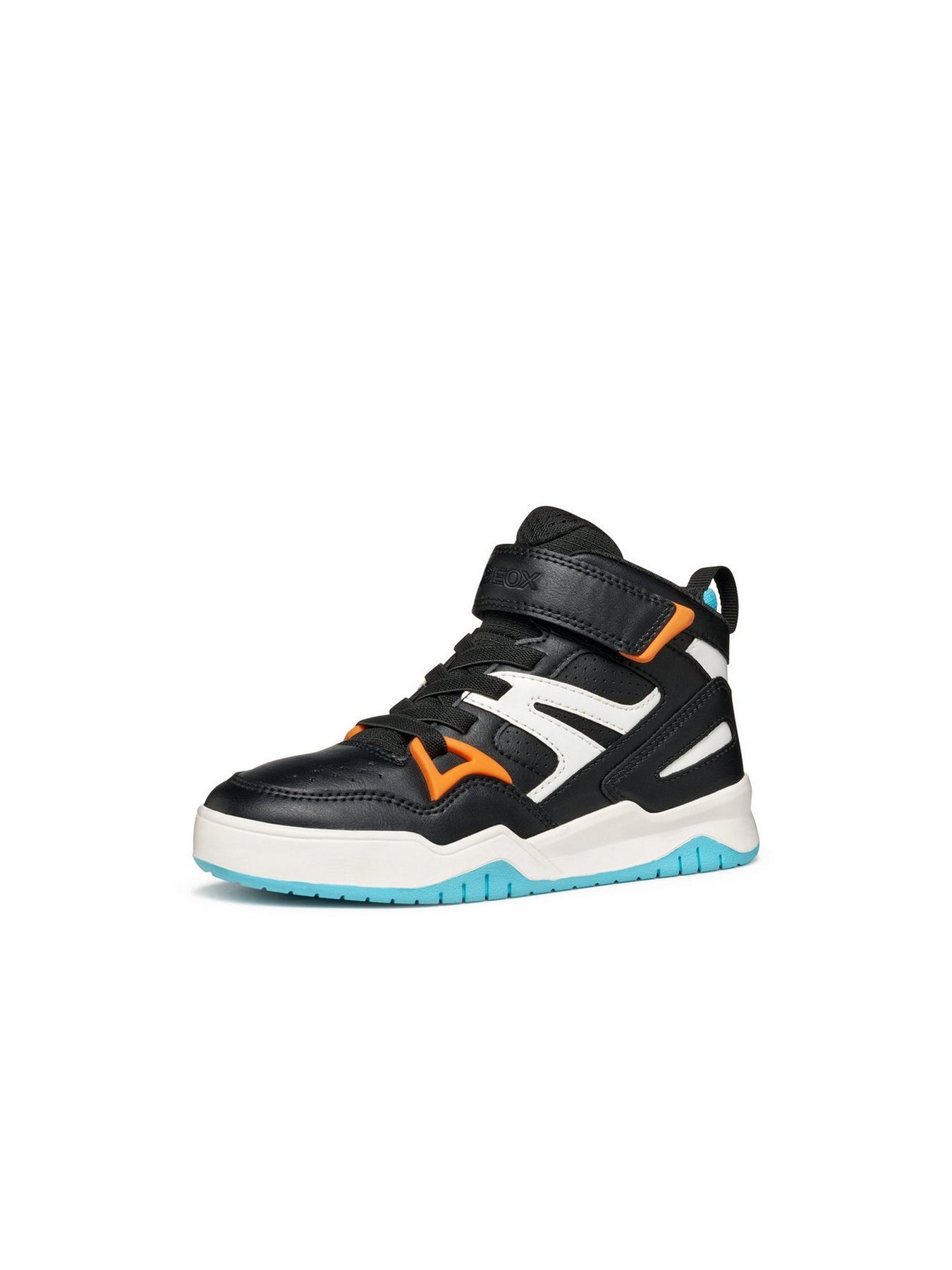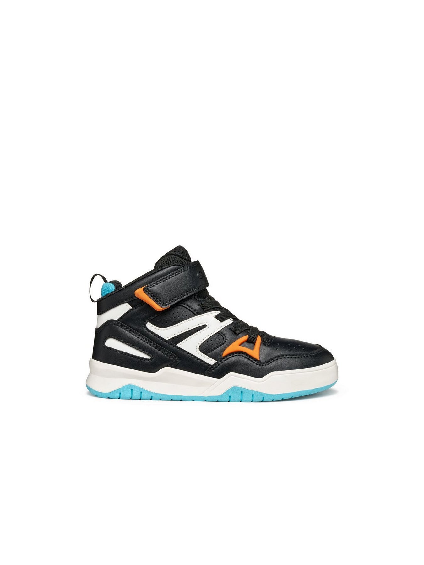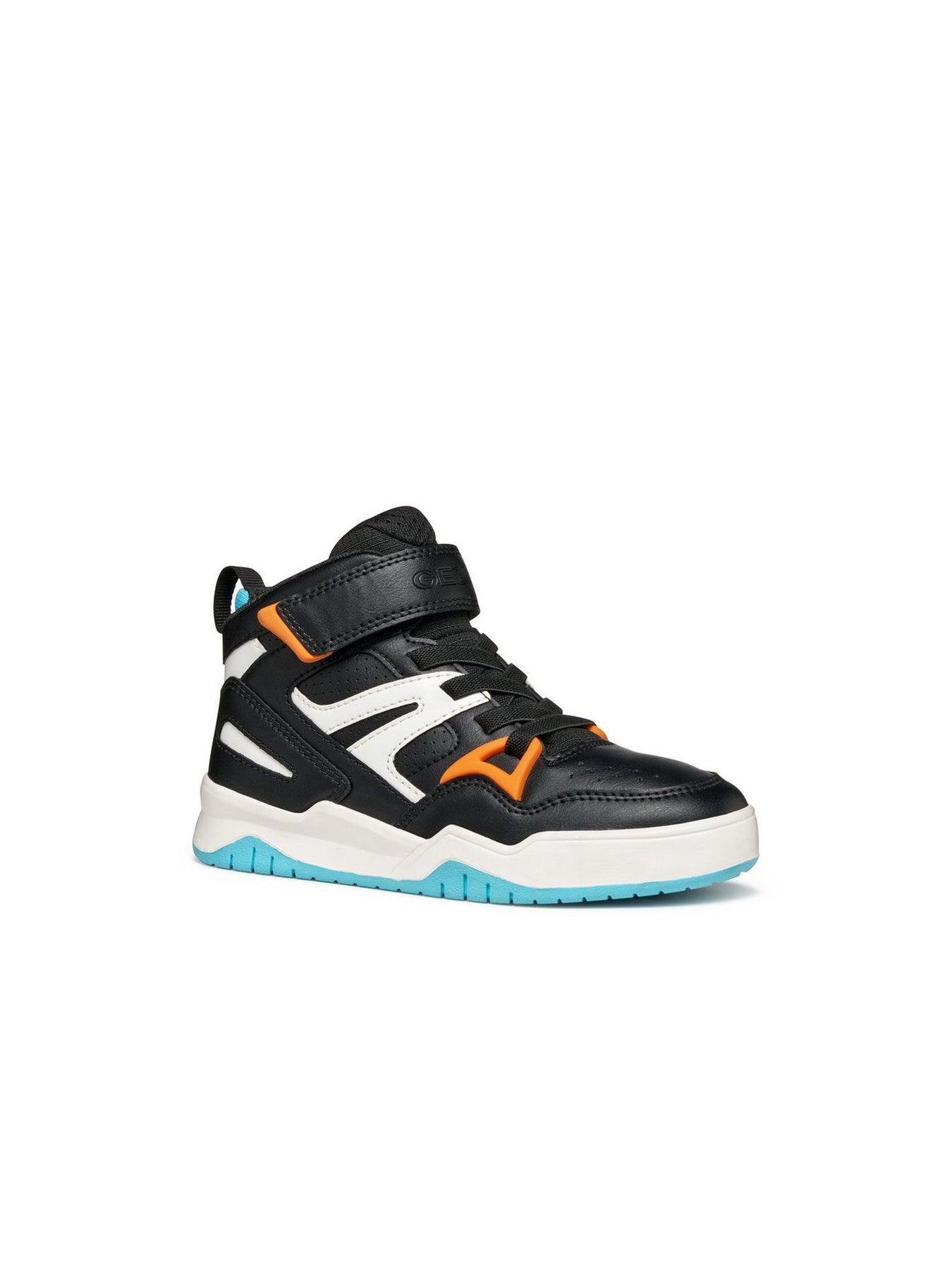 La sneaker GEOX J Perth Boy J567RA054FU è un modello dal look sportivo e moderno, ideale per i bambini che amano uno stile dinamico e di tendenza. Realizzata in ecopelle nera con inserti bianchi e arancioni, presenta un design deciso e grintoso.