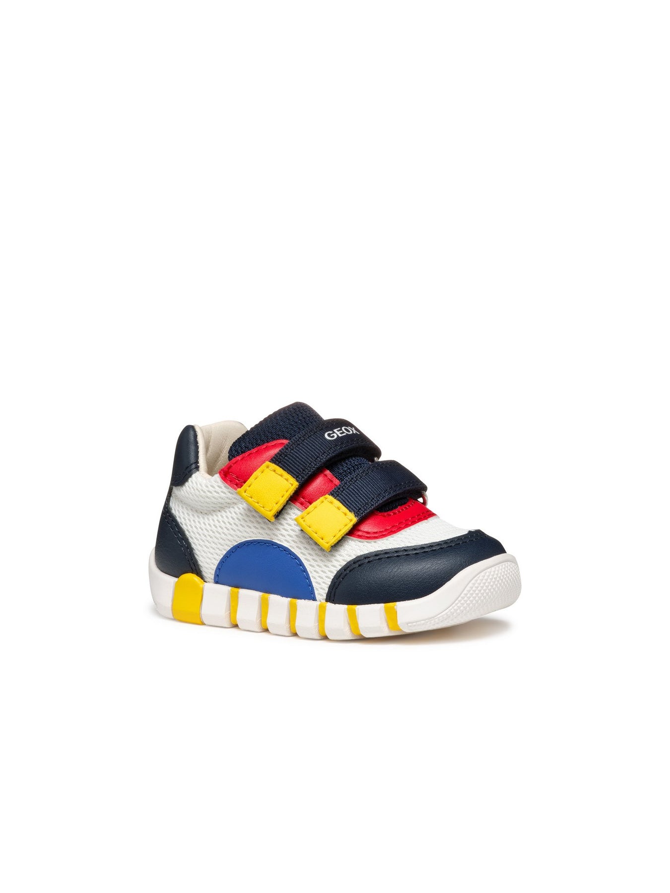 La sneaker con strappo GEOX modello B3555C01454 in colori bianco e navy della linea B Iupidoo Boy è la scelta ideale per i bambini che cercano una calzatura comoda e stilosa. Il design sportivo e pratico, con un mix di bianco e blu navy, è perfetto per ogni occasione, dalla scuola al tempo libero.