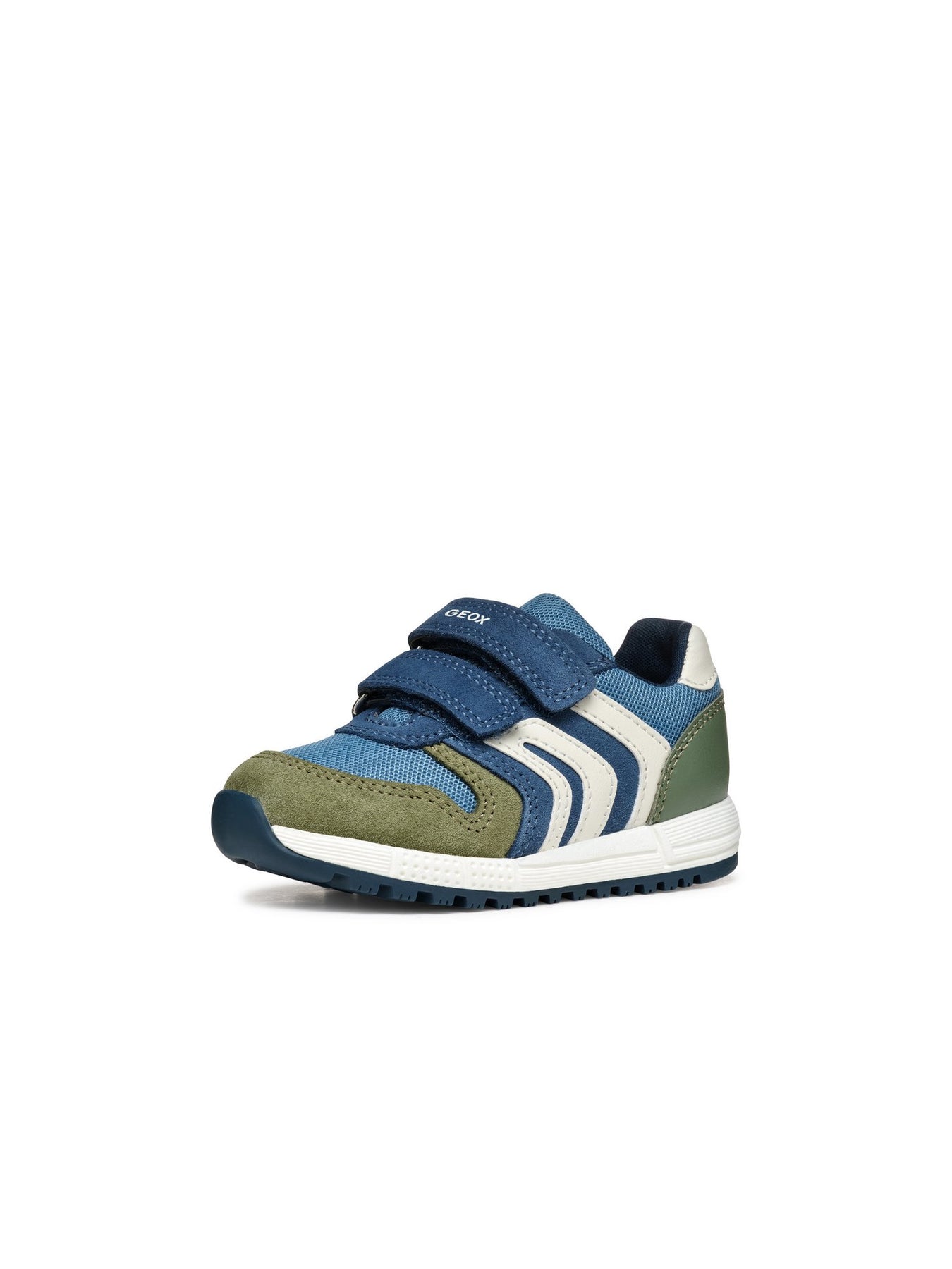 La sneaker con strappo GEOX modello B453CA02214 in colori sage e avio della linea B Alben Boy è la scelta perfetta per i bambini che cercano una calzatura comoda, pratica e stilosa. Il design sportivo e fresco, con una combinazione di verde salvia e blu avio, la rende perfetta per ogni tipo di outfit, dallo sportivo al casual.