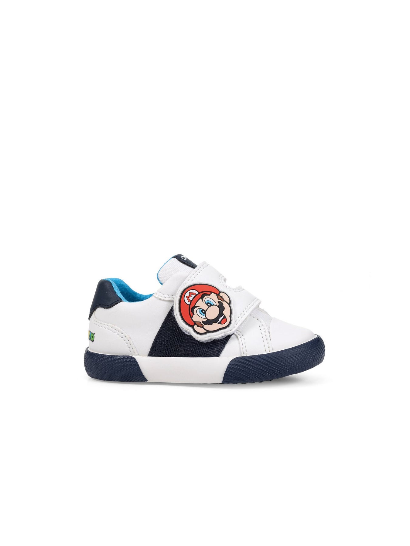 La sneaker GEOX modello B551NC000BC in white e navy conquista i più piccoli con il suo design unico, arricchito da grafiche ispirate all'iconico Super Mario. La chiusura a strappo facilita la calzata, garantendo comfort e praticità durante tutto l'arco della giornata.