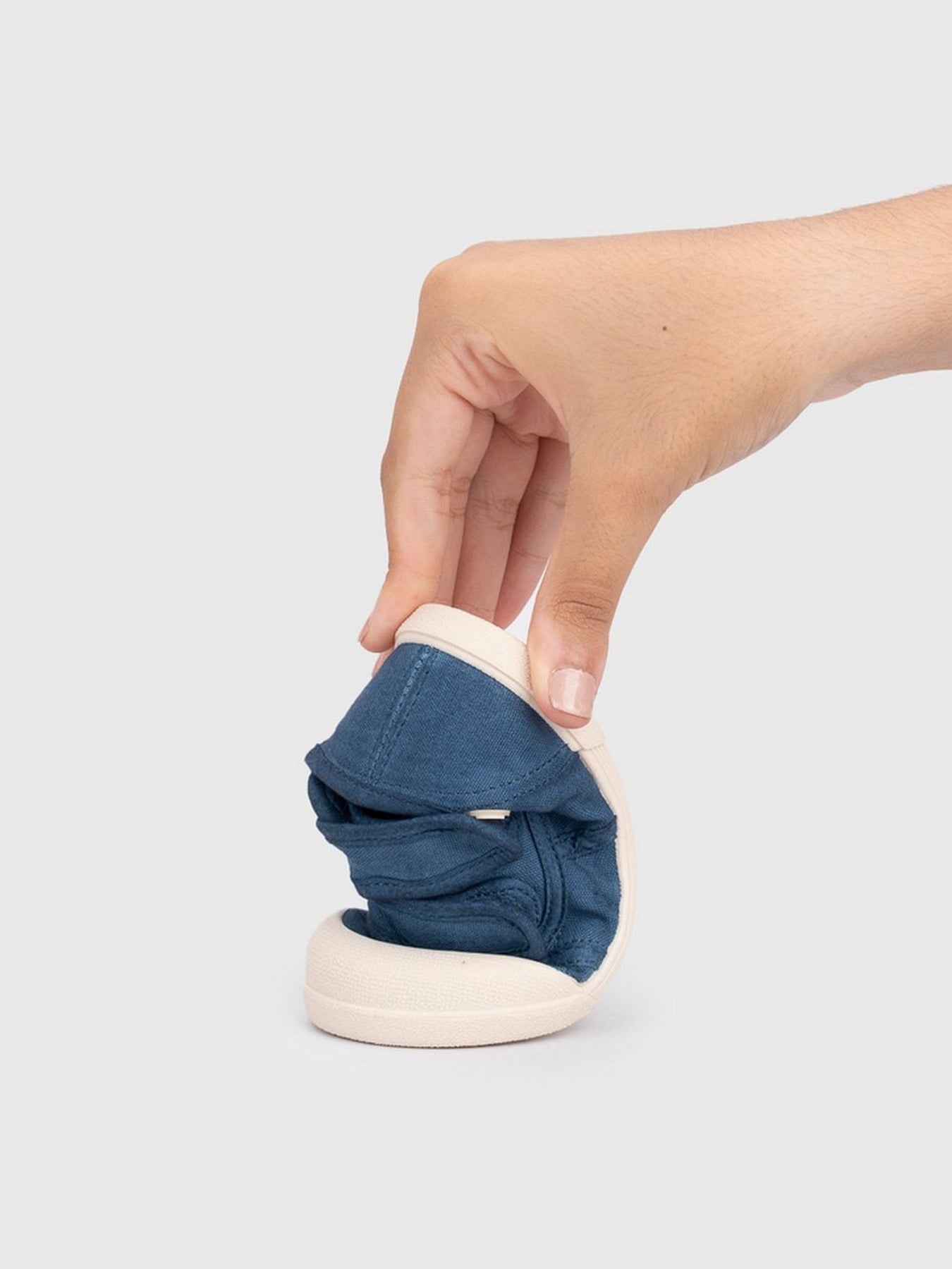 Con doppio strappo regolabile e punta ampia, favorisce l'autonomia nella calzata e il corretto posizionamento delle dita. La suola piatta, flessibile e antiscivolo garantisce sicurezza e aderenza, mentre la tomaia in cotone resistente e traspirante offre leggerezza e traspirabilità per l'uso quotidiano.