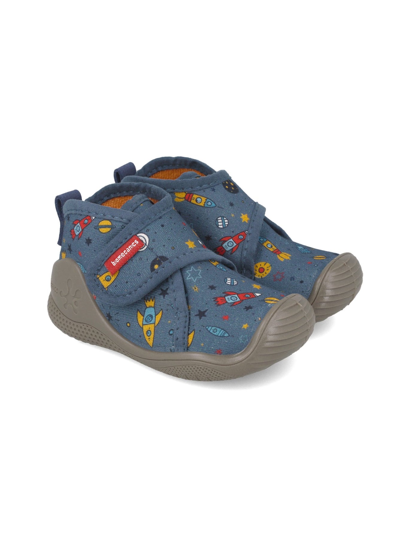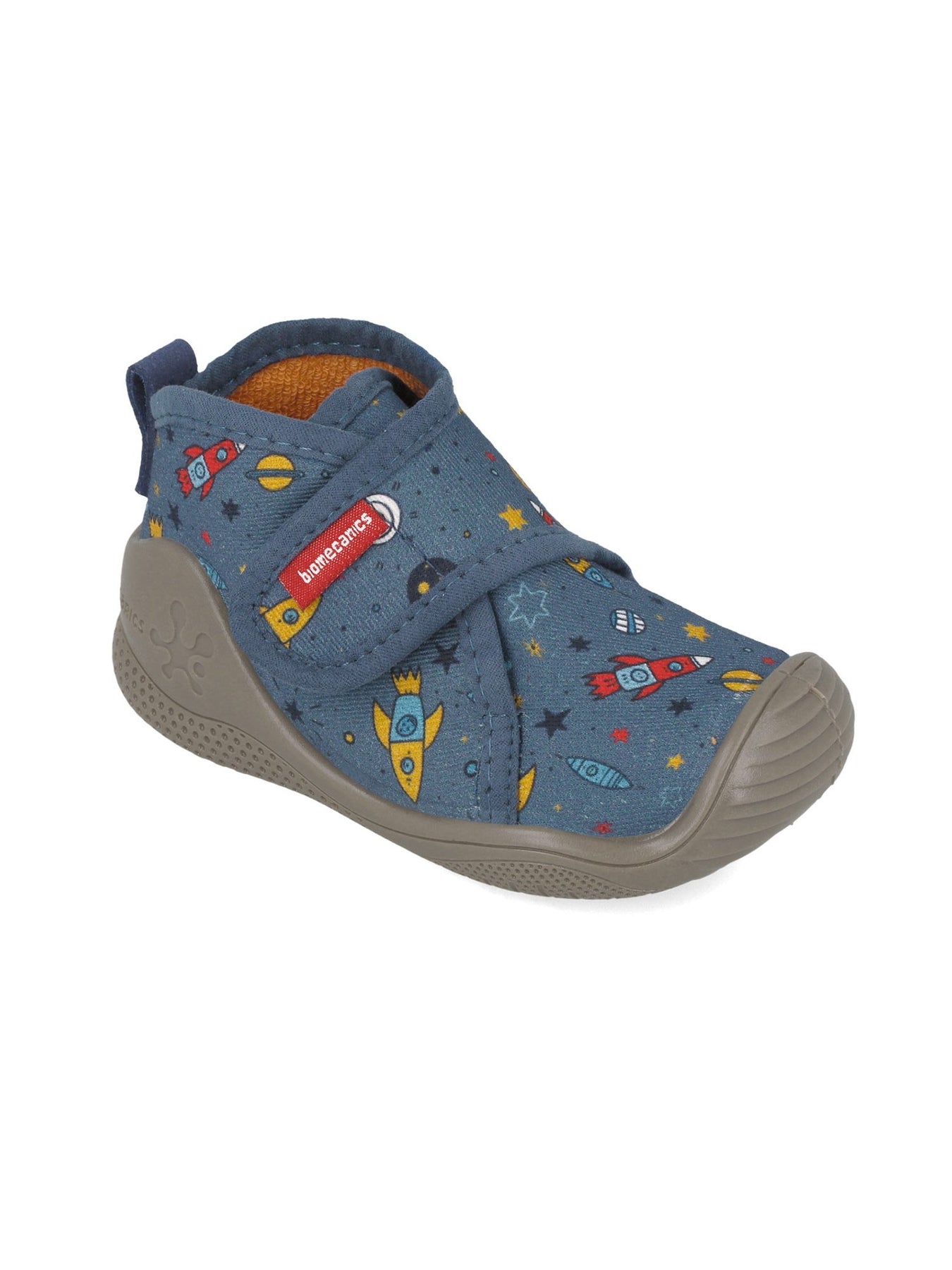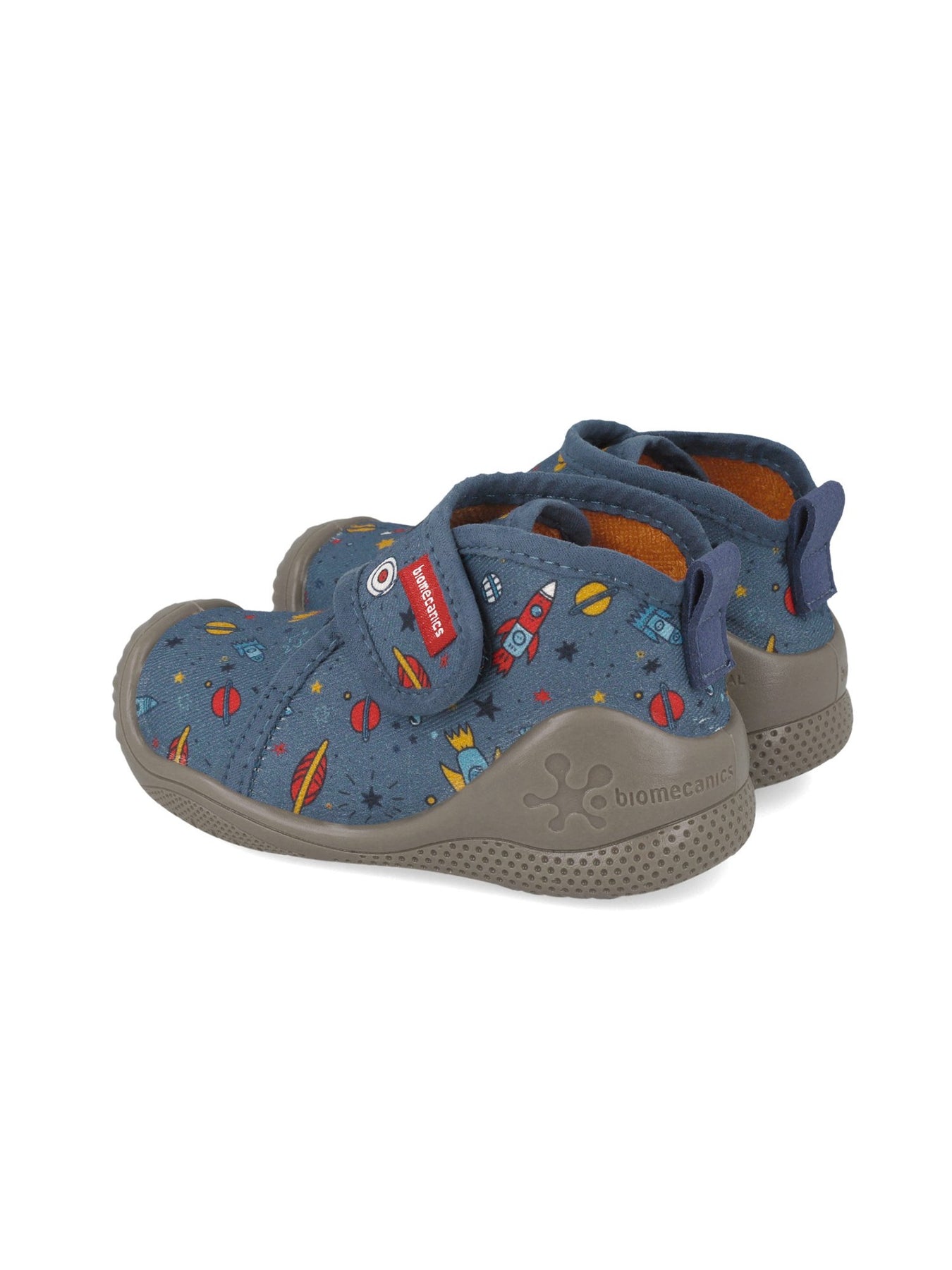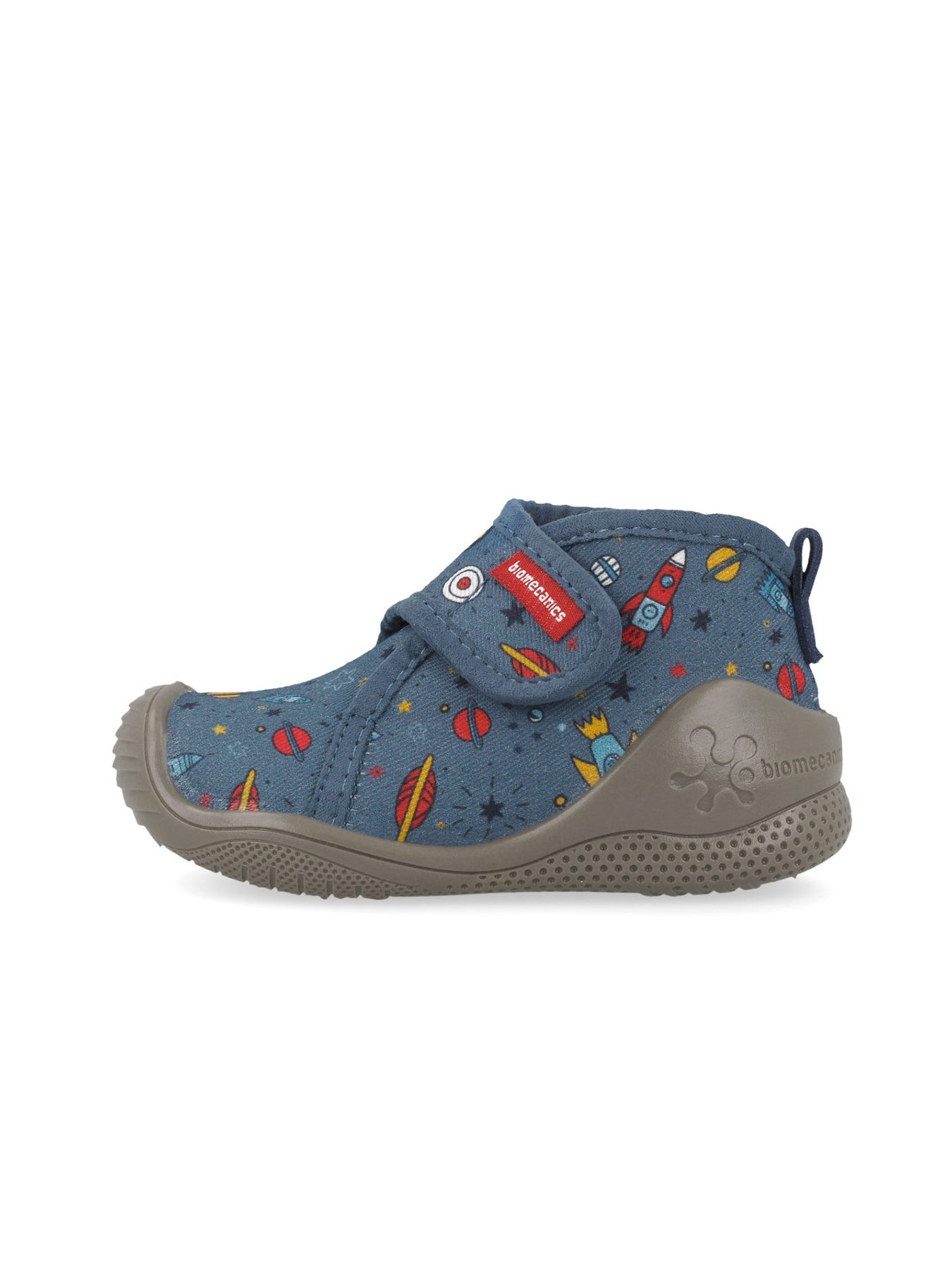 La sneaker BIOMECANICS 251146 Vaquero unisce comfort, praticità e un design divertente. La tomaia blu è decorata con razzi colorati, stelle e pianeti, ideale per i piccoli esploratori che amano sognare avventure nello spazio.