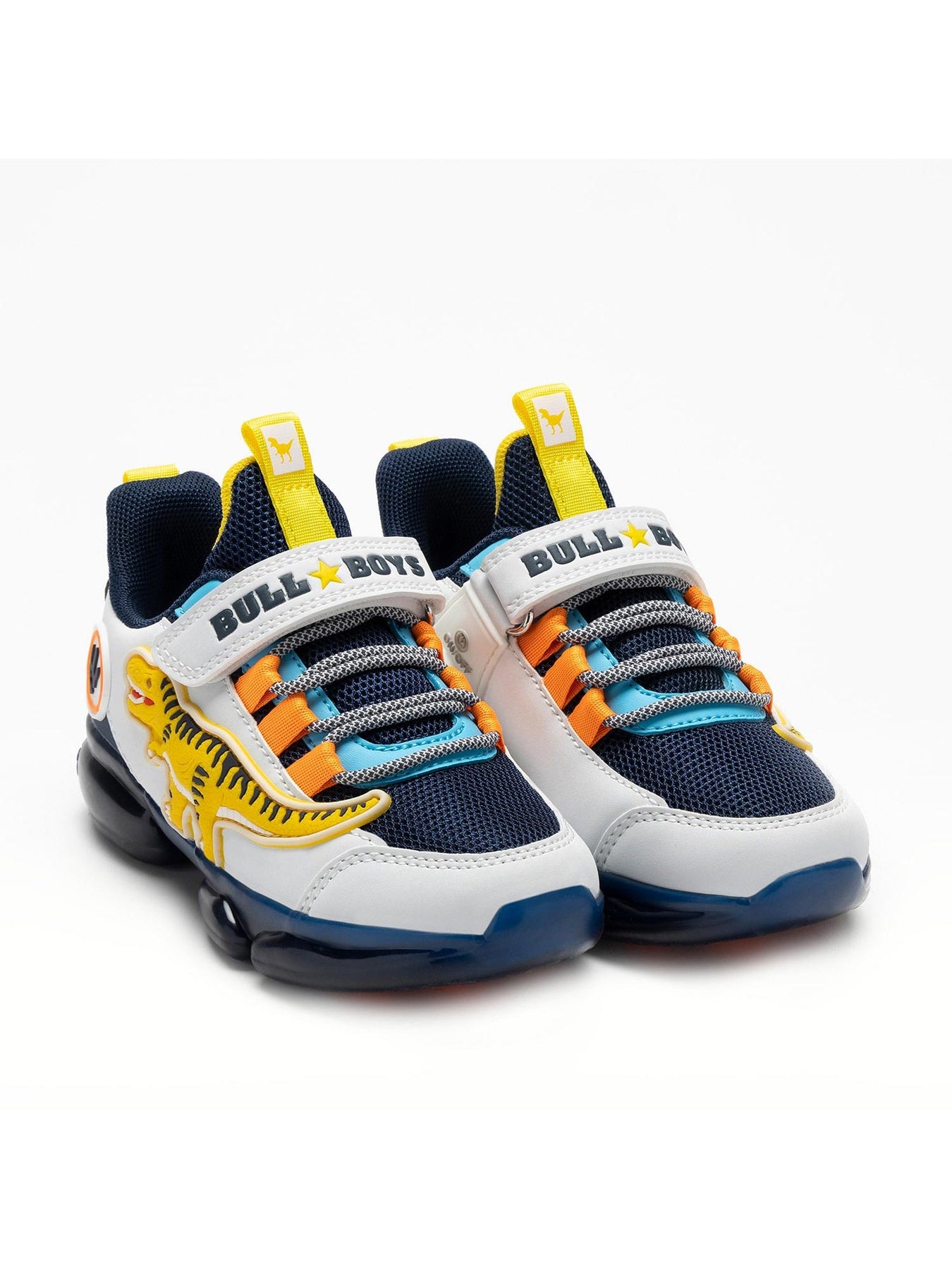 La sneaker con strappo BULL BOYS T-Rex modello DNAR5008 in Blu/Bianco è la calzatura ideale per i bambini che vogliono unire stile, praticità e comfort in ogni passo. Il mix di blu e bianco dona un look fresco e vivace, perfetto per ogni occasione, mentre il design sportivo è pensato per sostenere i piccoli durante le loro giornate piene di energia.