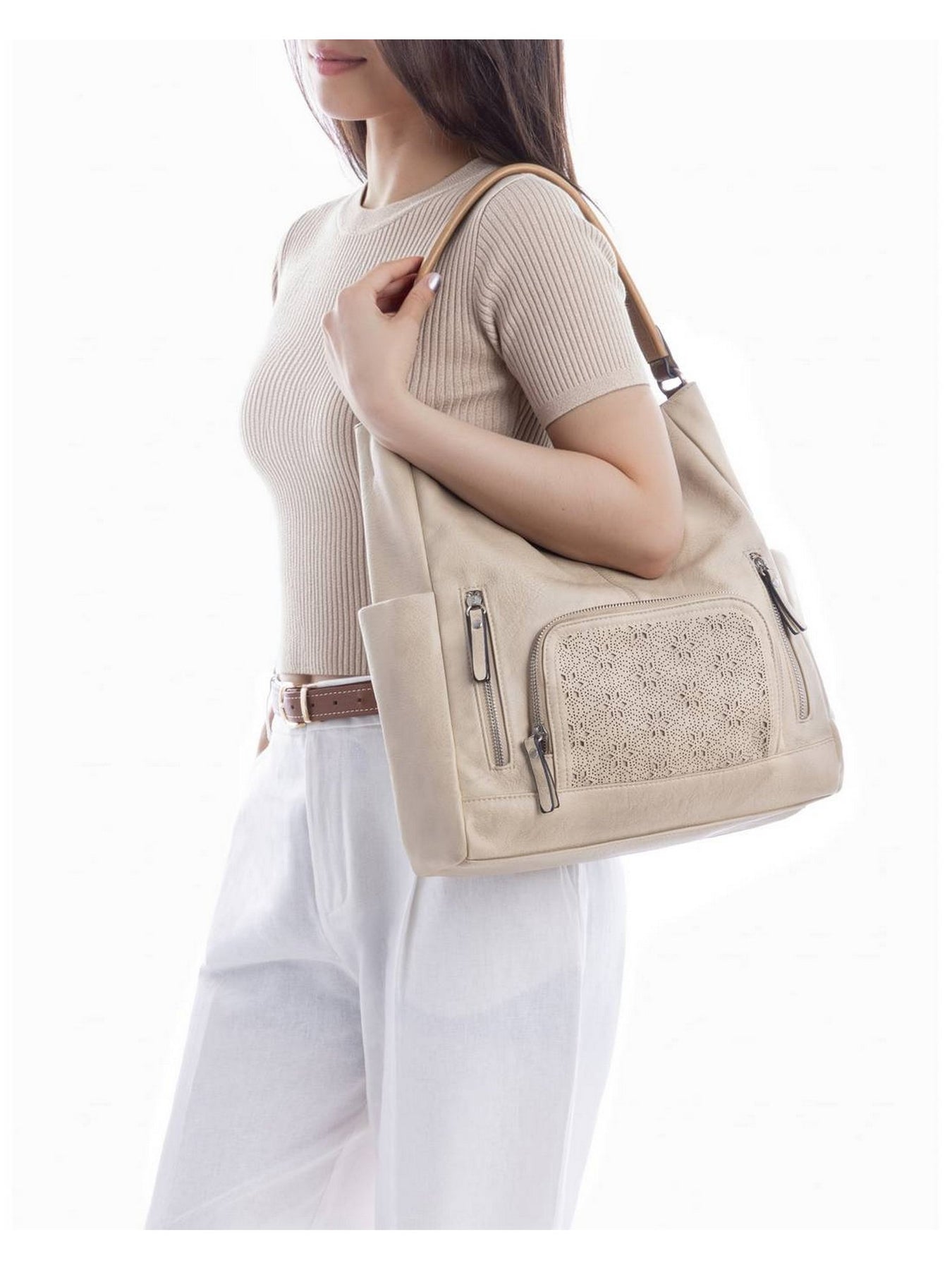 REFRESH Borsa Donna - 183365 Beige borsa da donna dal design moderno e funzionale, proposta in una raffinata tonalità beige che si abbina facilmente a qualsiasi look. L'inserto frontale con lavorazione traforata e le zip decorative aggiungono un tocco contemporaneo e curato. Questo modello firmato Refresh è ideale per il lavoro, il tempo libero e la vita in città.