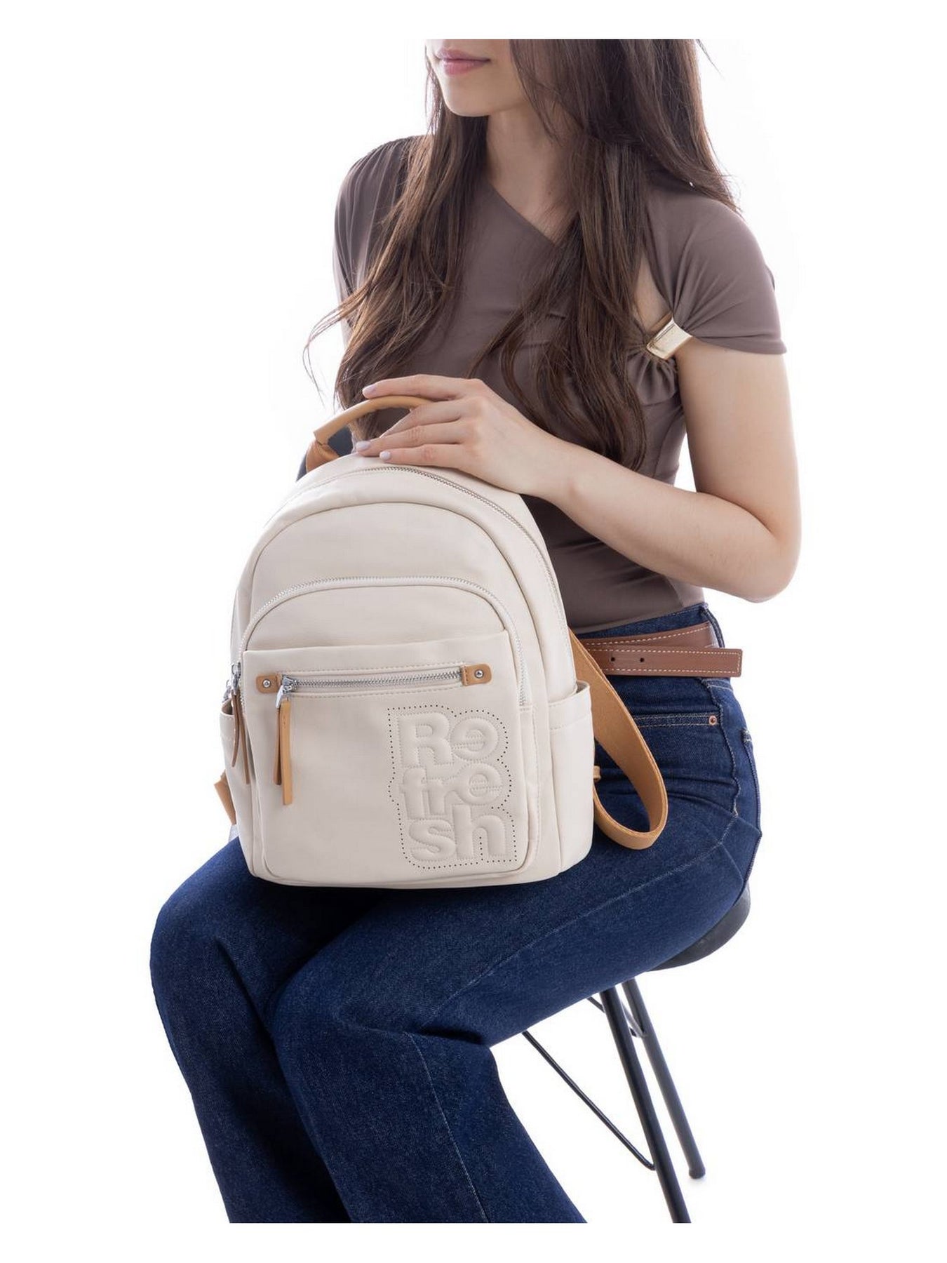 REFRESH Zaino Donna - 183377 Beige zaino da donna dal design moderno e compatto, caratterizzato da una raffinata tonalità beige e dal logo in rilievo che dona un tocco distintivo e contemporaneo. Le linee pulite e la struttura funzionale rendono questo modello firmato Refresh ideale per l'uso quotidiano, perfetto per la città, il tempo libero e uno stile di vita dinamico.