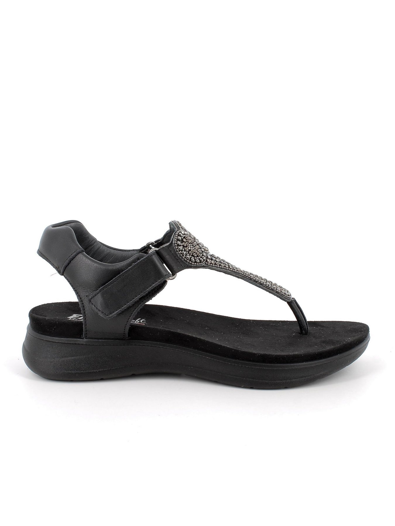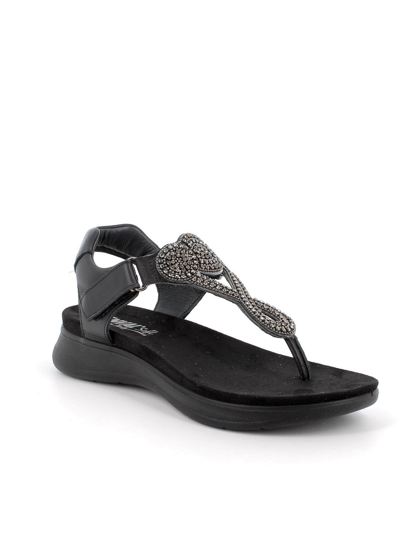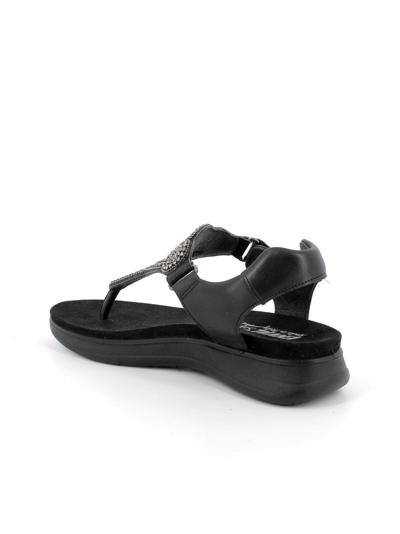 ENVAL SOFT Sandalo Infradito Donna - 77866 Nero Elegante sandalo infradito da donna con applicazioni brillanti sul dorso Chiusura con strappo laterale per una calzata pratica e personalizzata Sottopiede imbottito effetto memory per un comfort superiore Suola leggera e flessibile, ideale per passeggiate estive Design raffinato, perfetto sia per look casual che più curati Colore: Nero Linea: Enval Donna Comfort Composizione: Tomaia in ecopelle, fodera in tessuto morbido, suola in gomma flessibile Made In: Italy Chiusura: Strappo laterale Plantare: Fisso, imbottito Altezza suola: 4 cm (circa)
