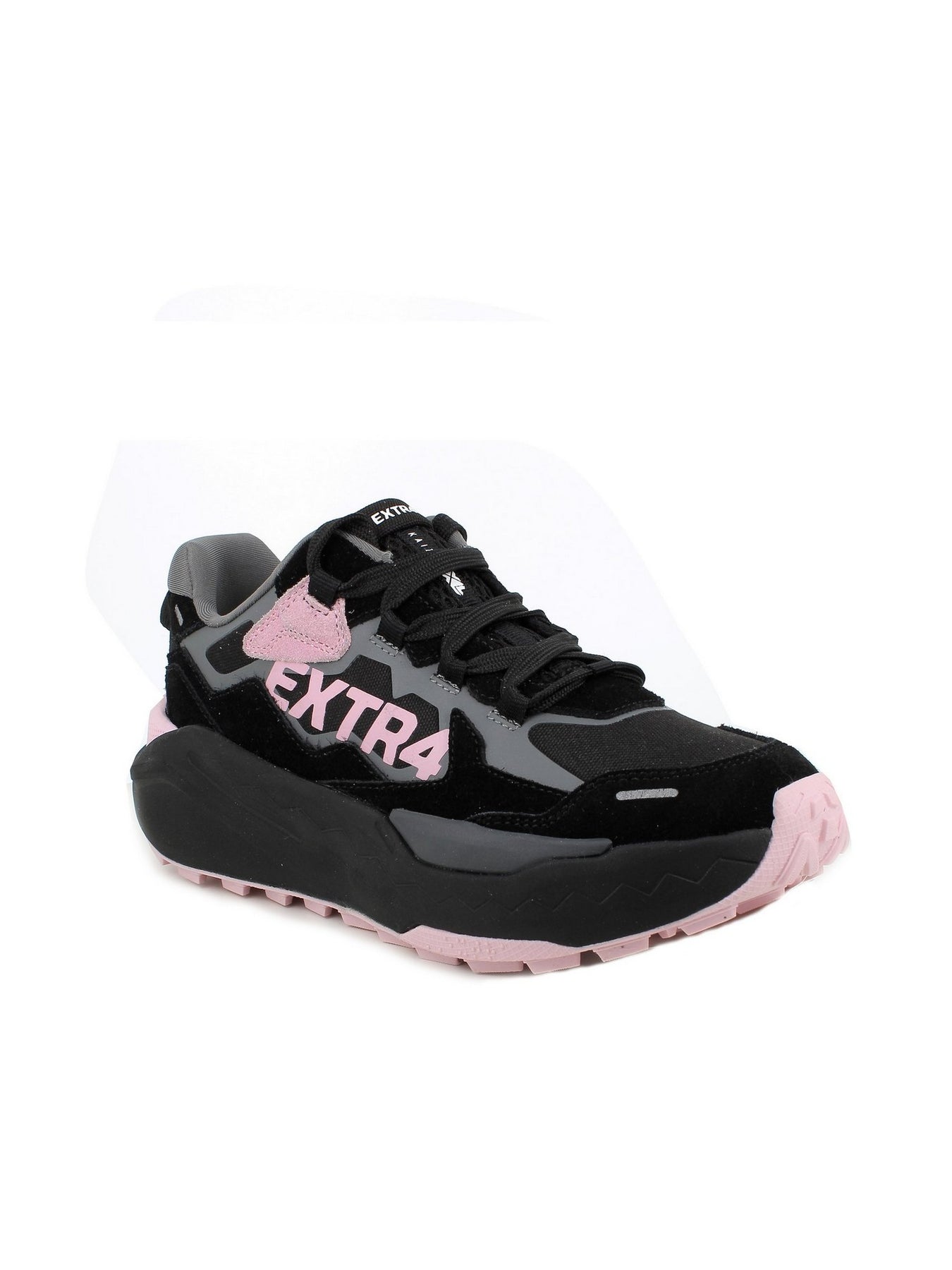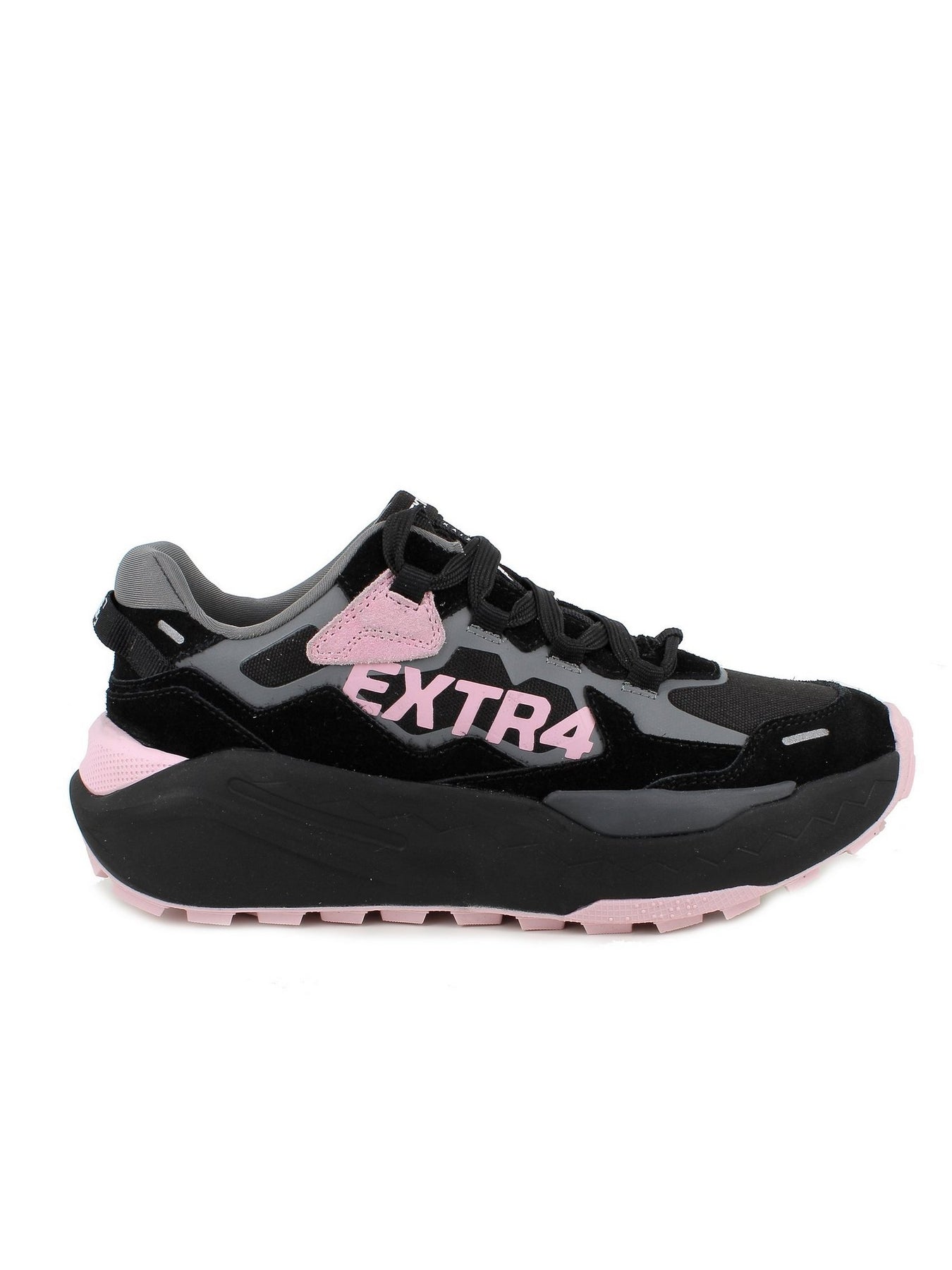 Realizzata in pelle e tessuto nei toni del nero e rosa, è caratterizzata dal logo laterale EXTR4 e da inserti a contrasto che donano un look dinamico e trendy. La suola chunky in gomma nera con dettagli rosa garantisce stabilità, resistenza e un tocco fashion che rende la sneaker protagonista di ogni outfit.