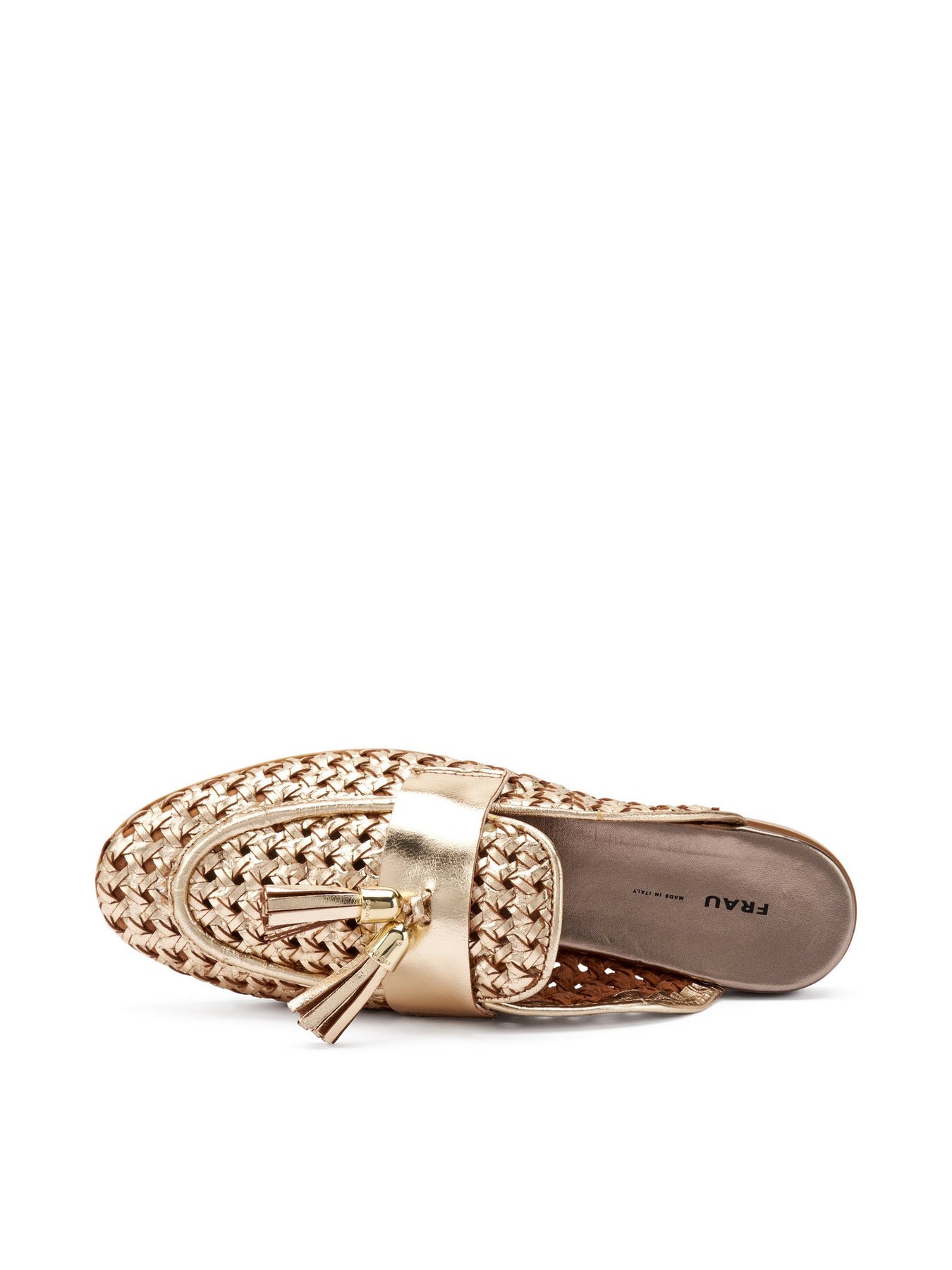 Il sabot FRAU modello 95X7 in Oro è la scelta perfetta per chi desidera unire stile, raffinatezza e comodità in una calzatura leggera e versatile. La tomaia in pelle morbidissima con intreccio a trama larga garantisce freschezza e traspirabilità, permettendo una calzata ariosa e confortevole.
