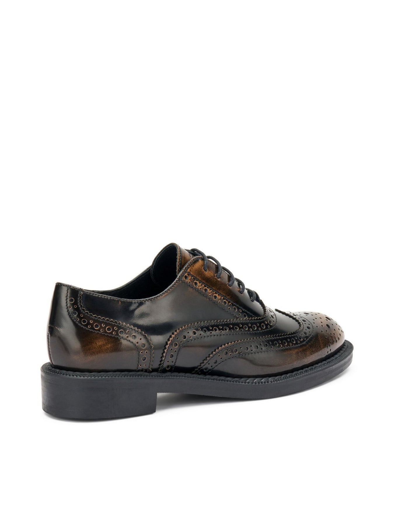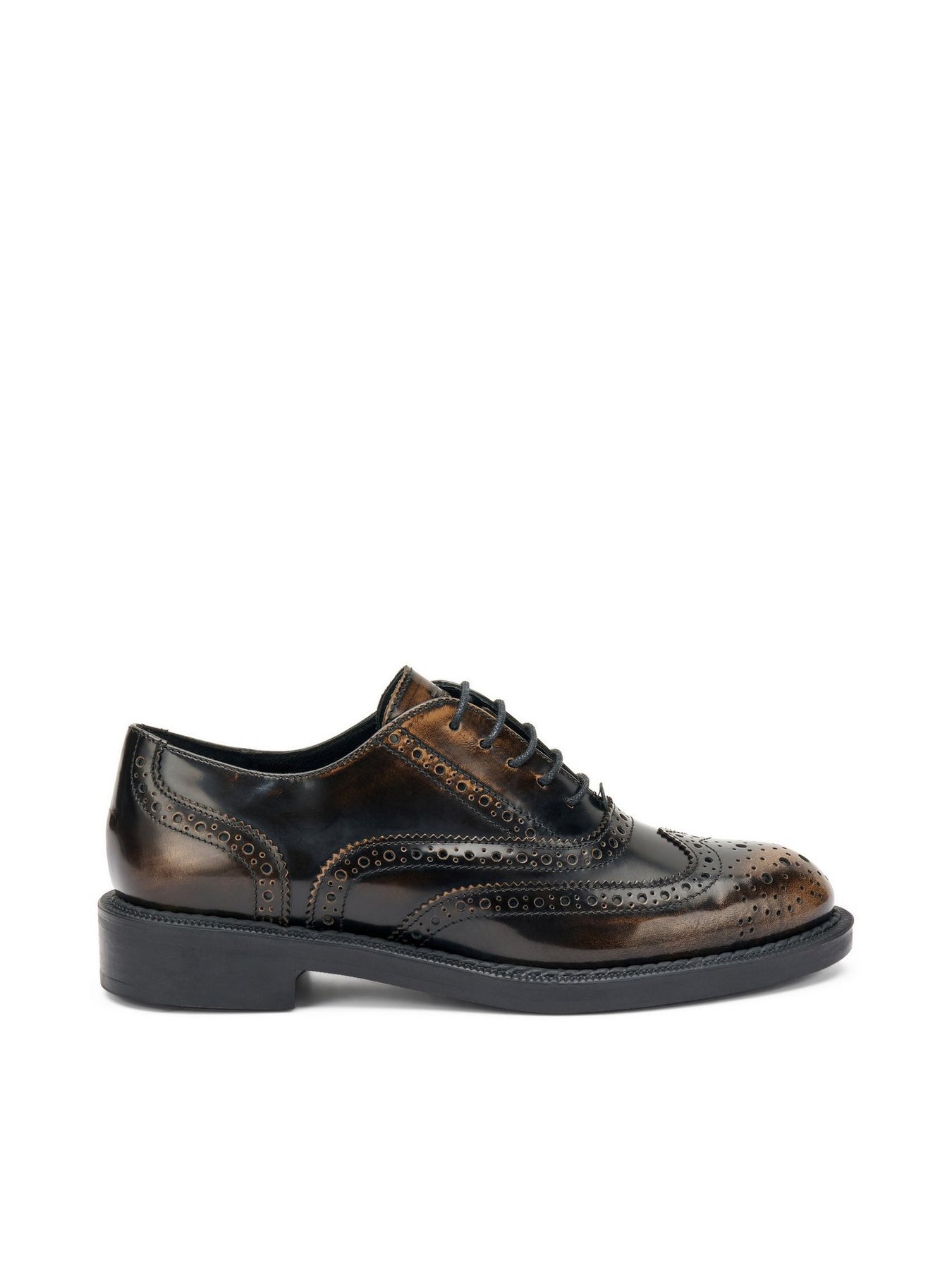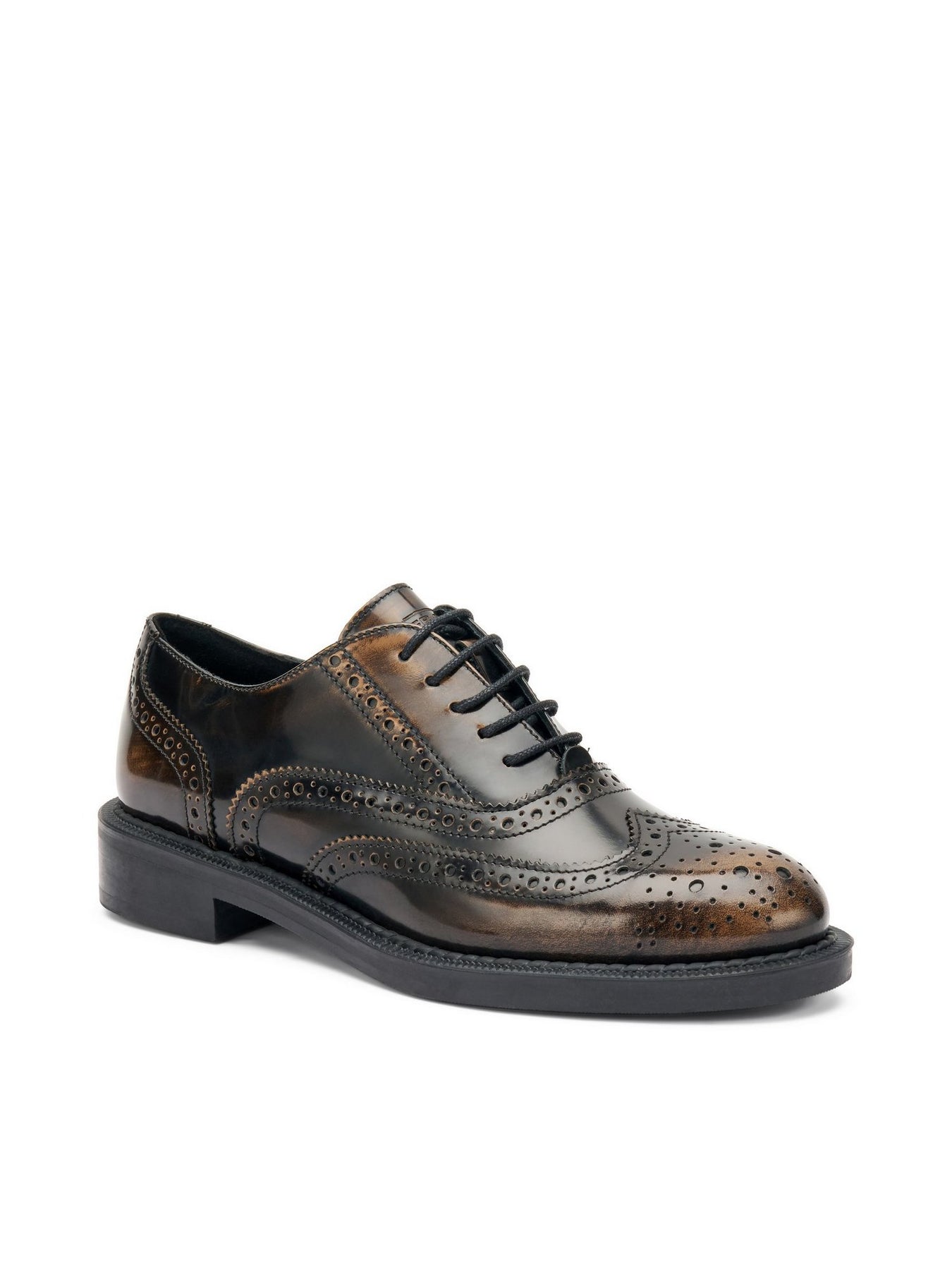 Realizzata in pelle spazzolata di alta qualità, presenta dettagli traforati tipici della lavorazione brogue che aggiungono personalità e originalità. La suola in gomma leggera assicura comfort, stabilità e praticità, rendendola ideale anche per un utilizzo quotidiano.