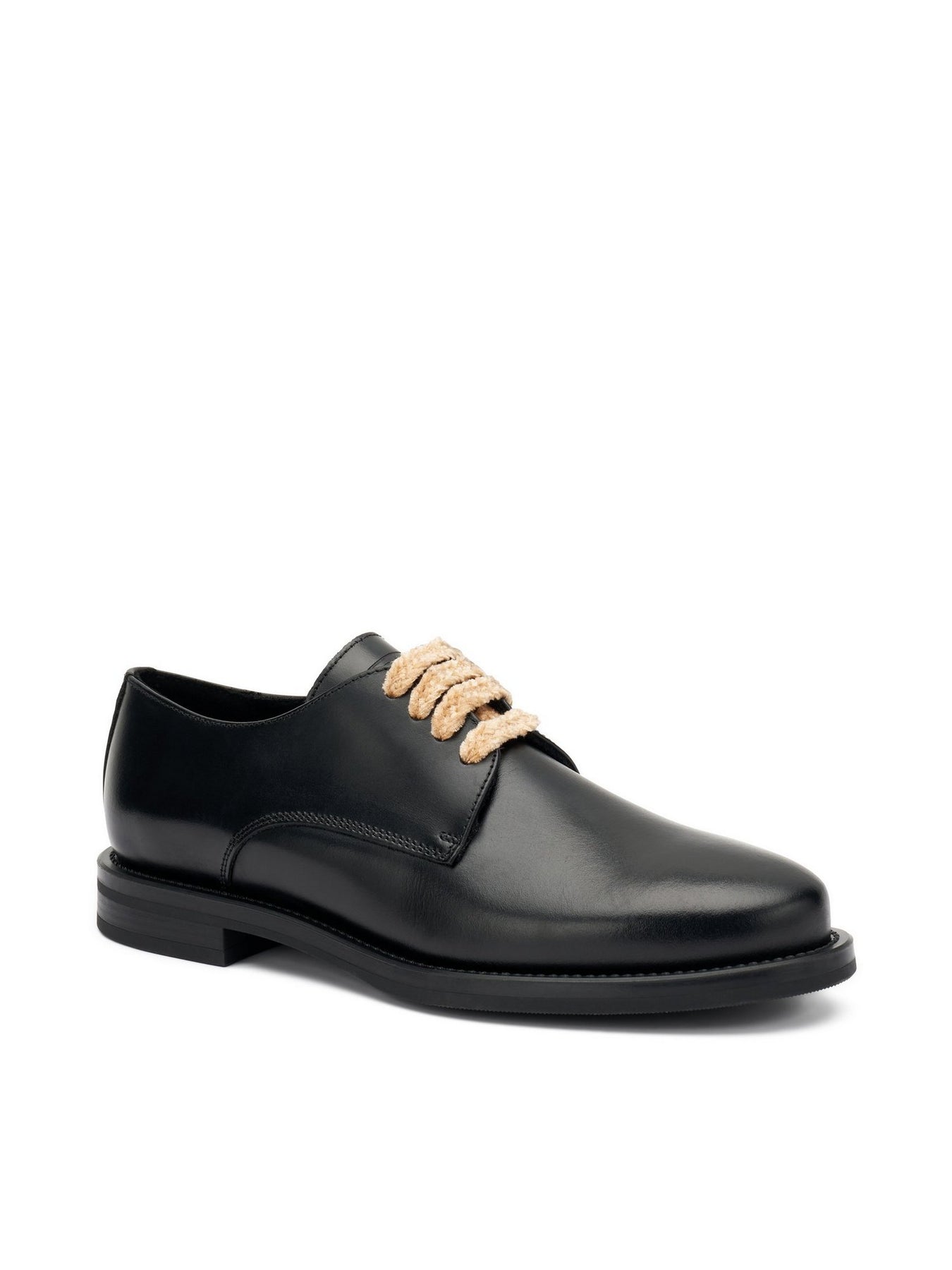 La scarpa elegante FRAU 98U1 è realizzata in pregiata pelle liscia nera, impreziosita da lacci a contrasto che aggiungono un tocco moderno e distintivo alla linea classica del modello derby.