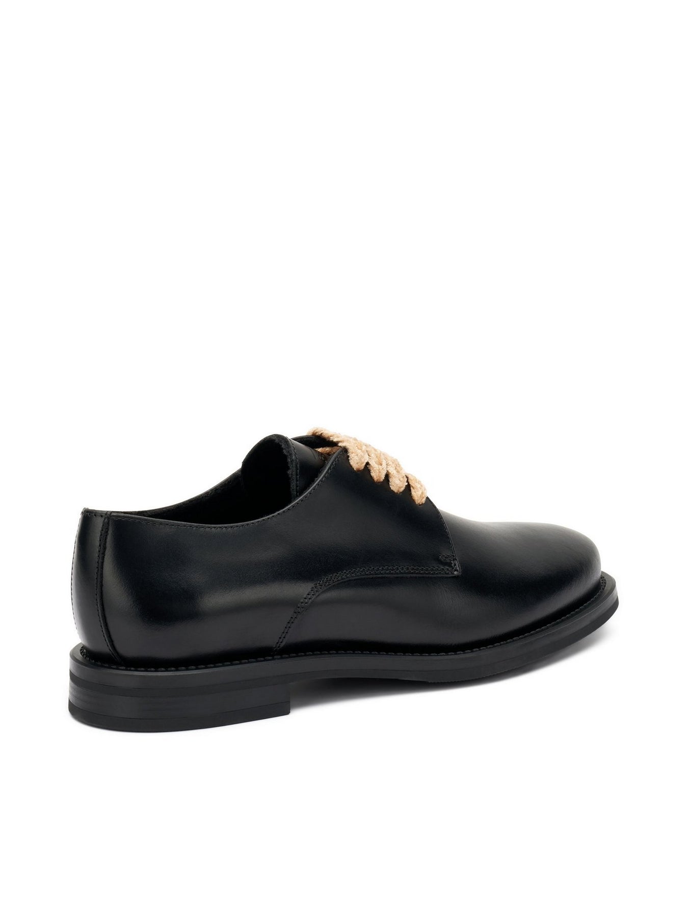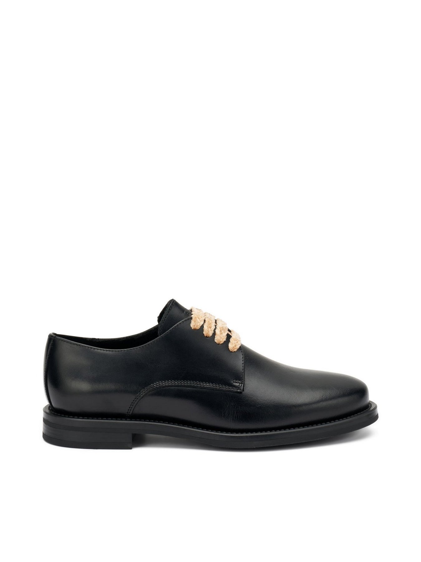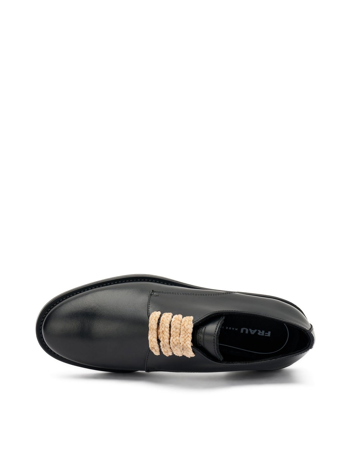 FRAU Scarpa Elegante Donna - 98U1 Nero. Derby in pelle liscia nera con lacci chiari a contrasto e suola leggera in gomma per un look raffinato e contemporaneo.