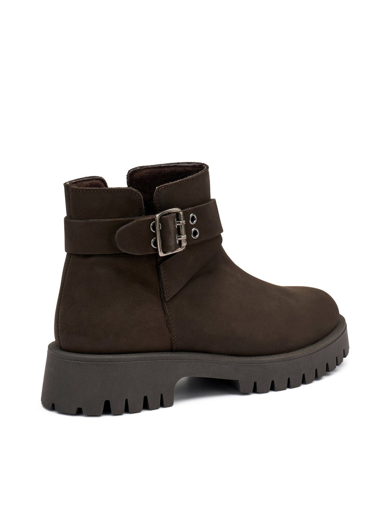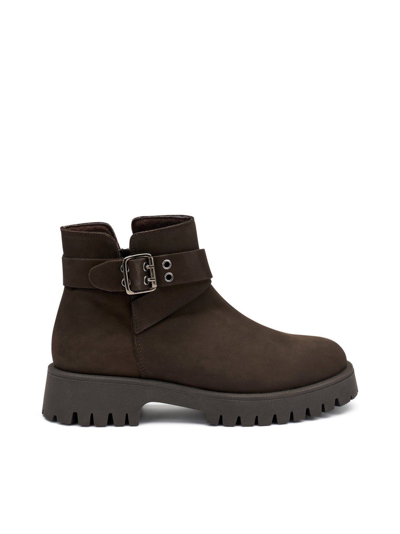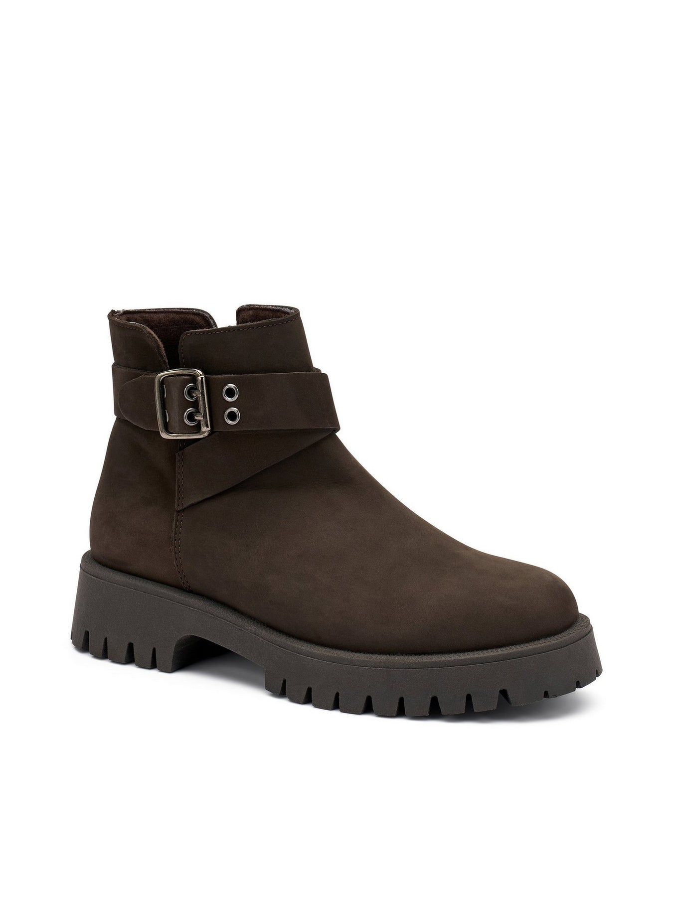 FRAU Tronchetto Donna - 56E1 Chocolat Tronchetto da donna in pelle scamosciata marrone, con cinturino e fibbia laterale. Altezza tacco 5 cm e suola in gomma carrarmato resistente.