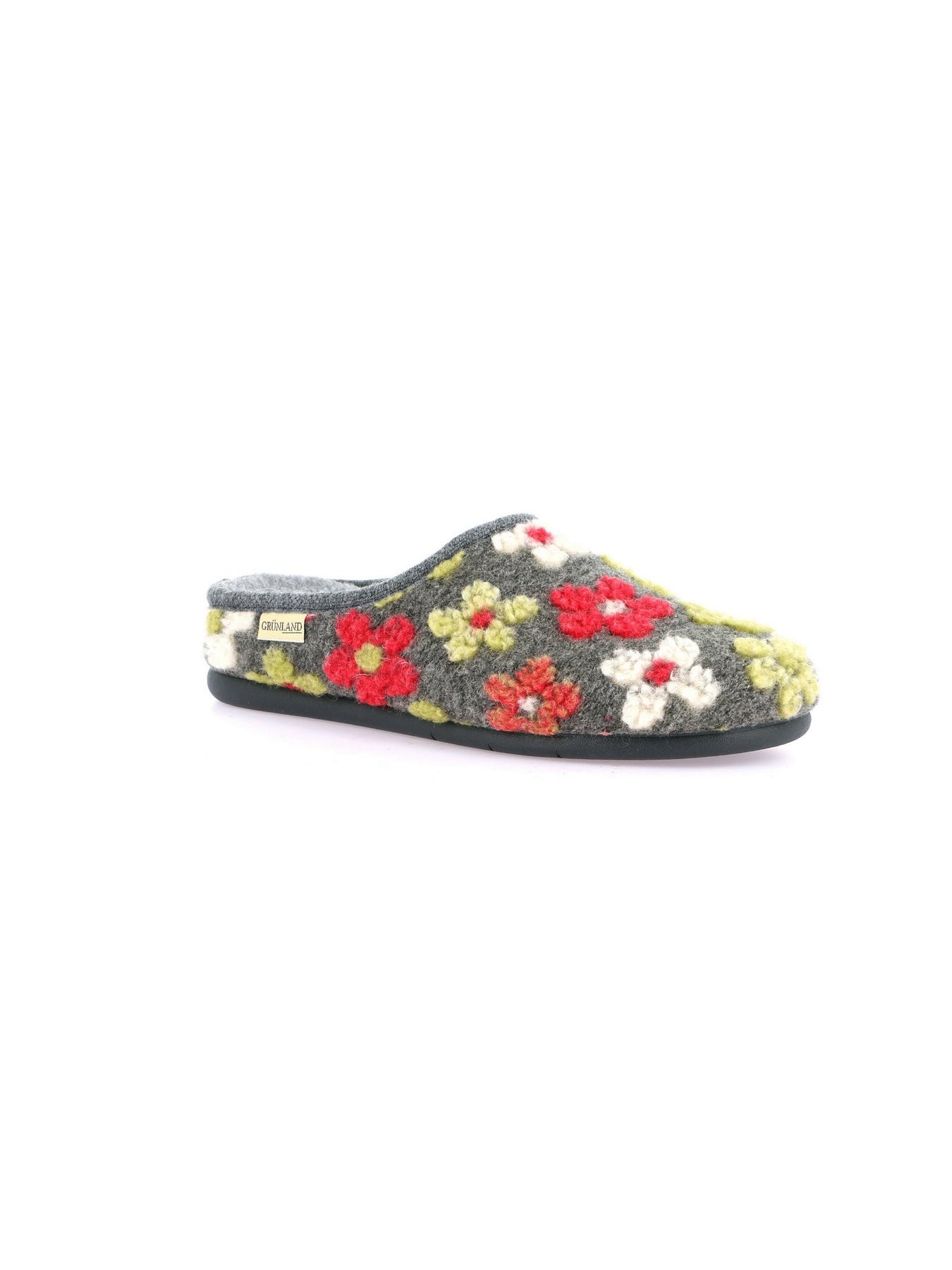 GRUNLAND Ciabatta Donna – CI3042 Grigio Ciabatta in tessuto grigio con fantasia floreale vivace, soletta confortevole e suola in gomma antiscivolo. Comfort e allegria per il relax quotidiano, con la qualità Made in Italy.