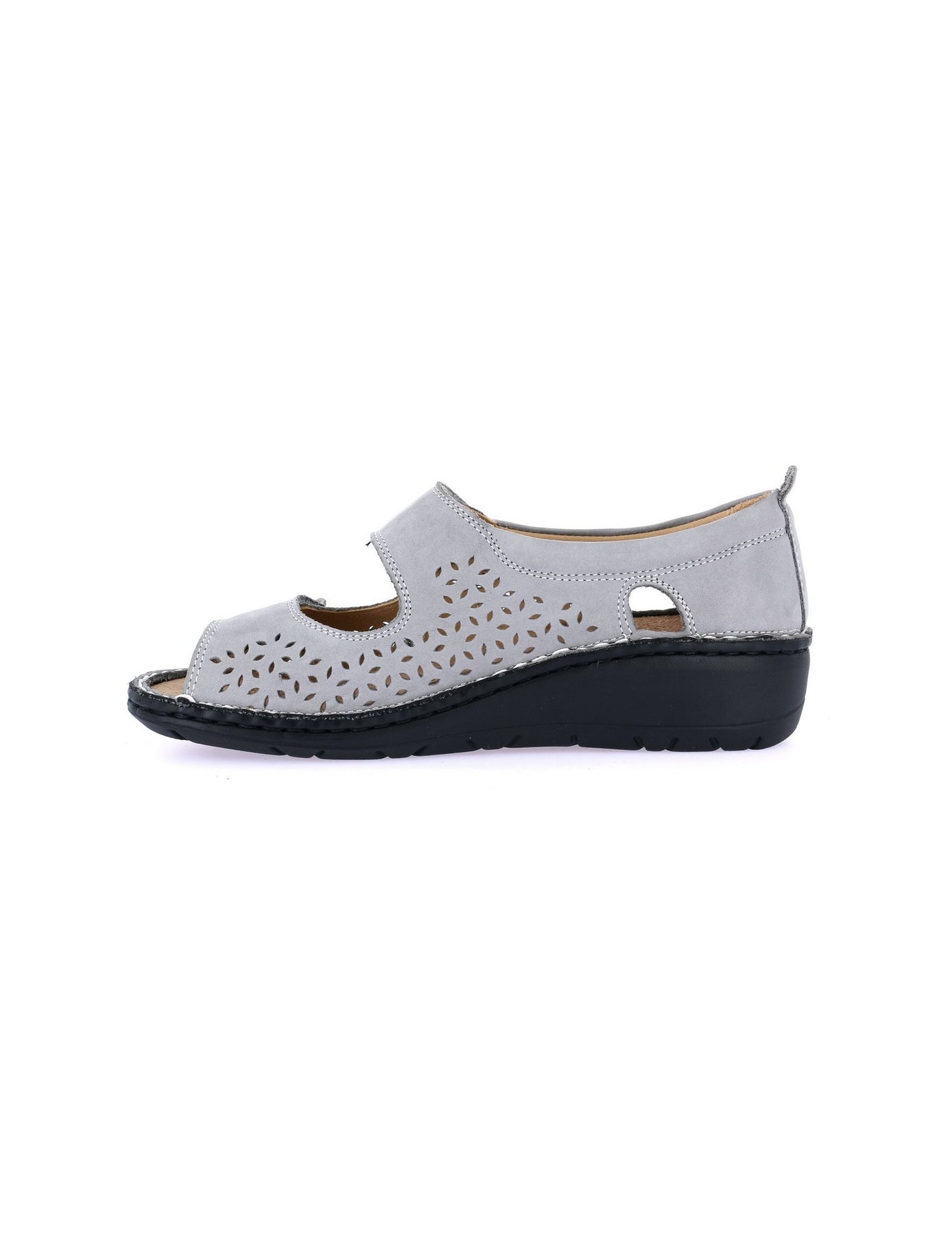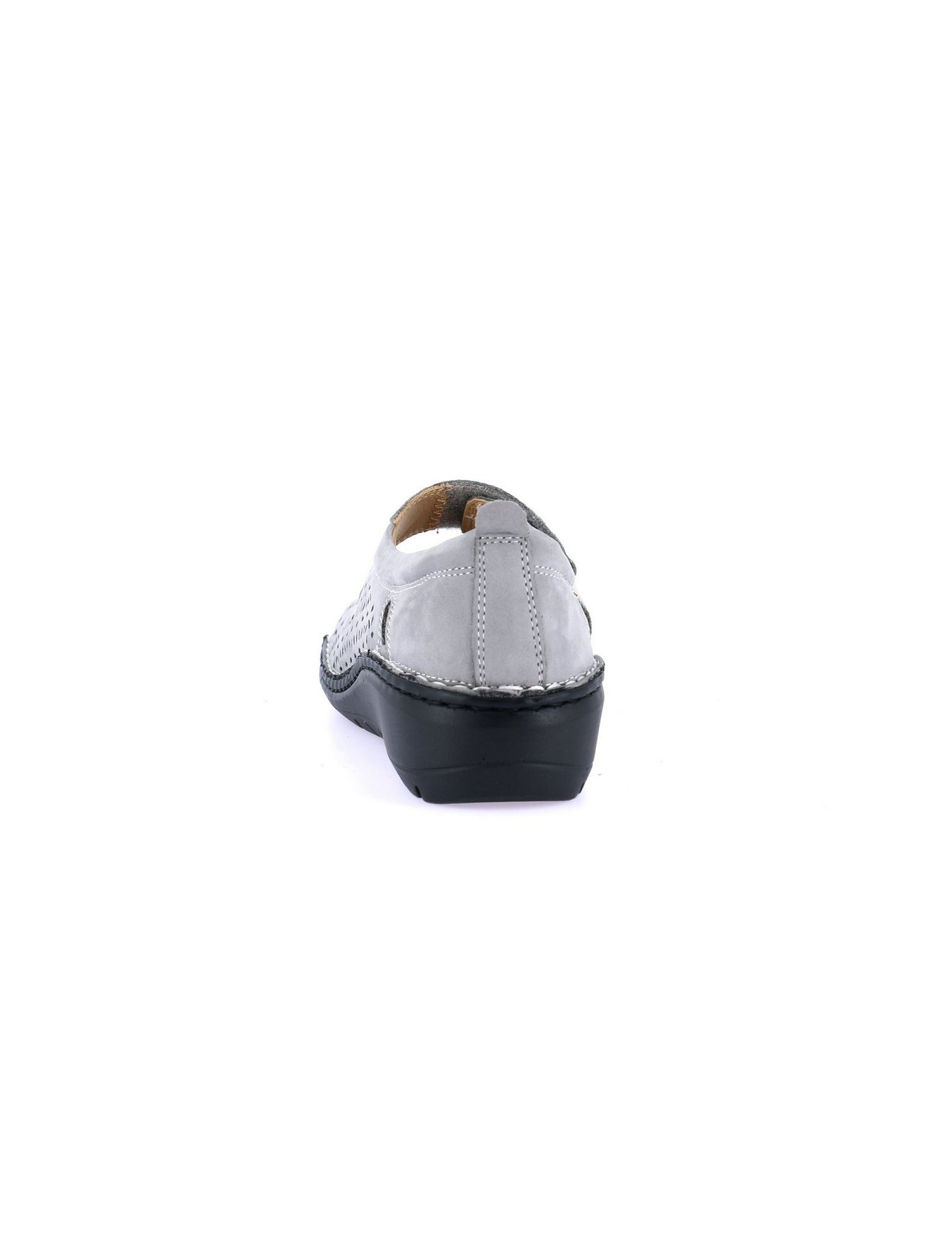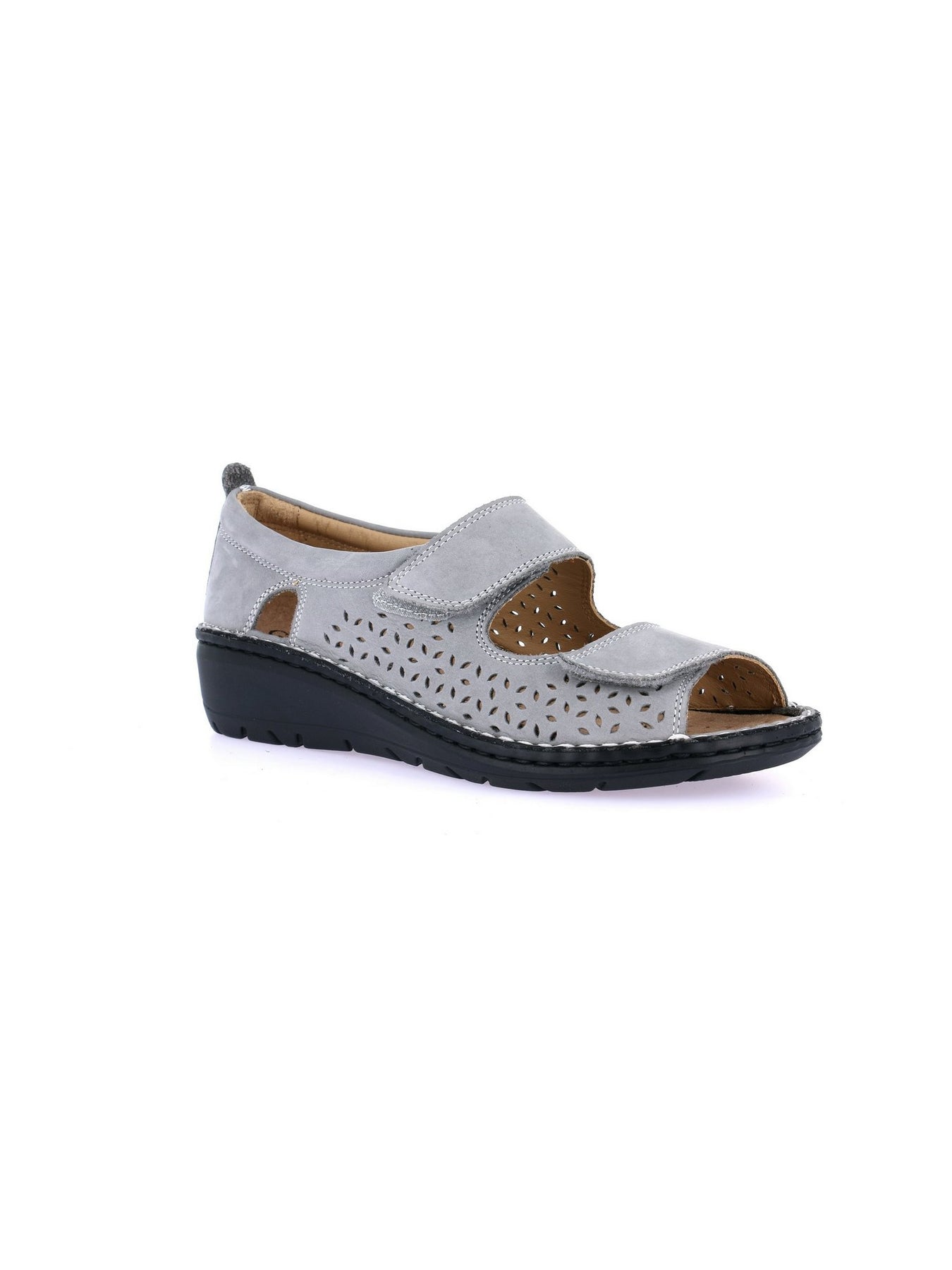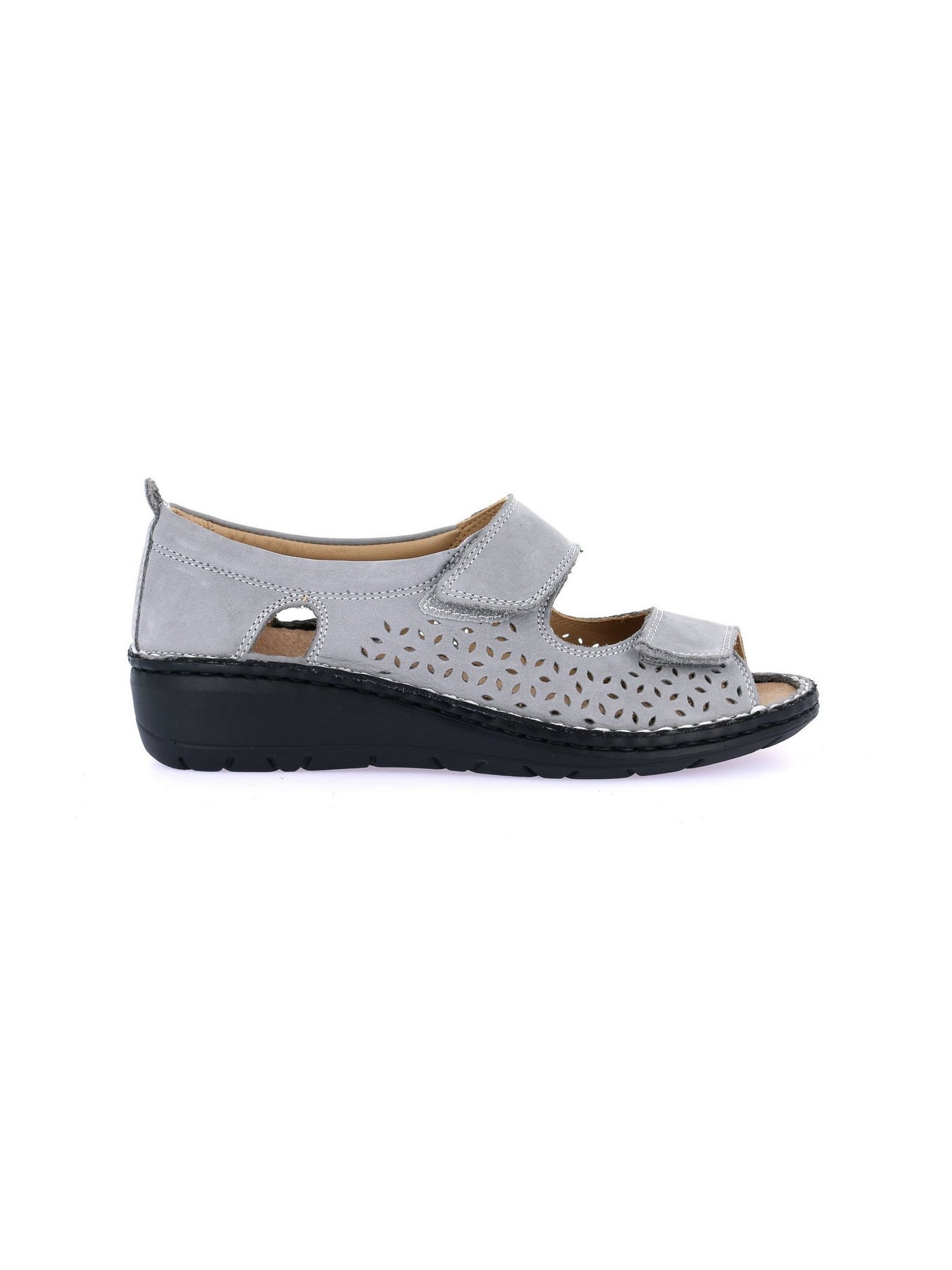 Realizzata in morbido nabuk pelle grigia, con fodera in vera pelle, combina eleganza sobria e funzionalità. Il plantare in sughero e pelle è estraibile, ideale anche per l'uso con plantari ortopedici. La chiusura a strappo consente una regolazione rapida e sicura, mentre la suola leggera in poliuretano e il tacco da 4 cm offrono stabilità e ammortizzazione su ogni superficie.