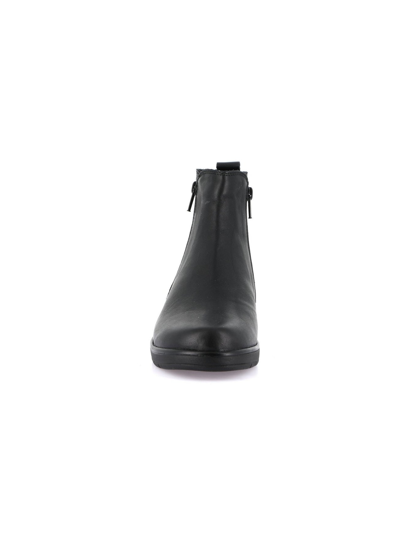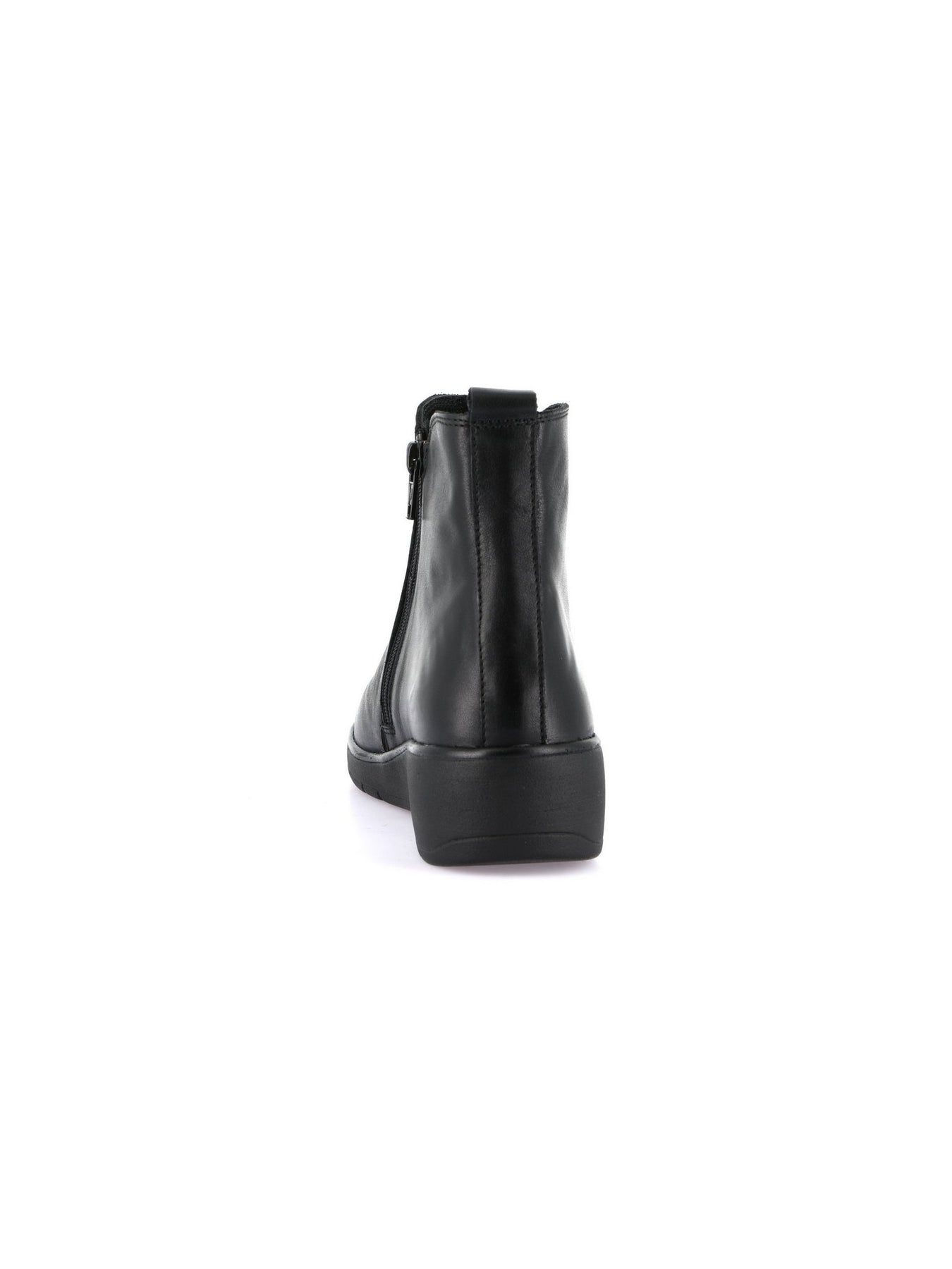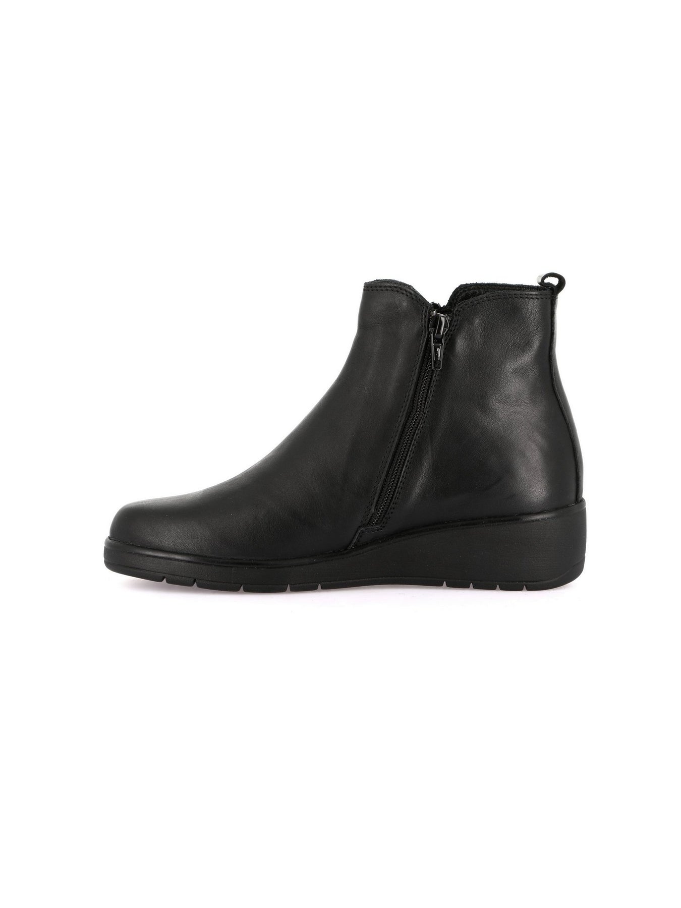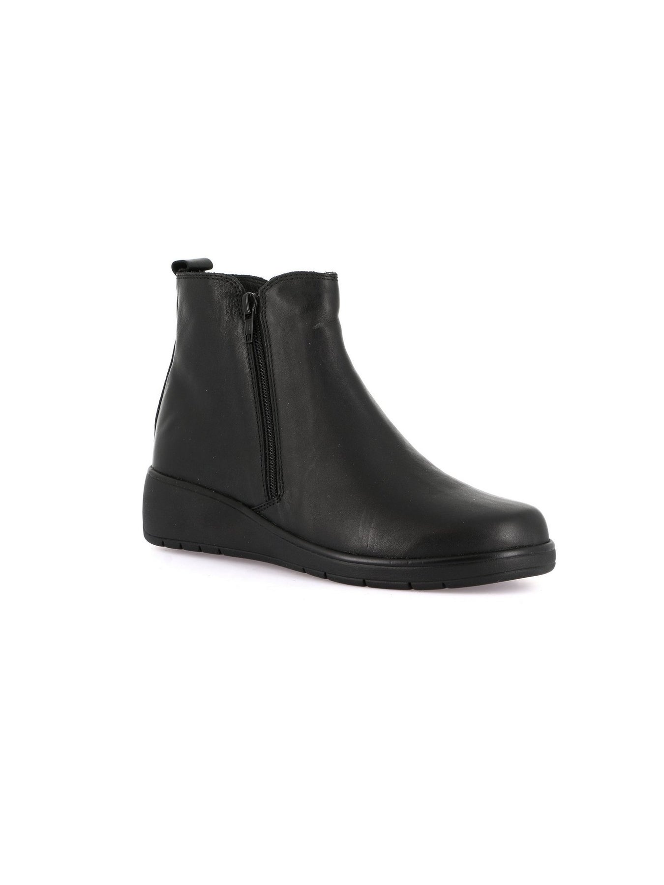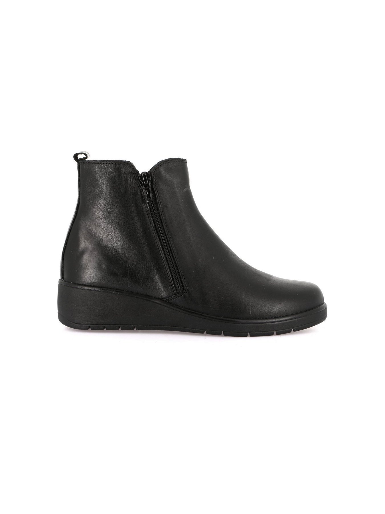 GRUNLAND Tronchetto con Zeppa Donna – PO2291 Nero Tronchetto in pelle nera con cerniera laterale, soletta Drysoft estraibile e zeppa da 4,3 cm. Comfort, eleganza e praticità per l'uso quotidiano.