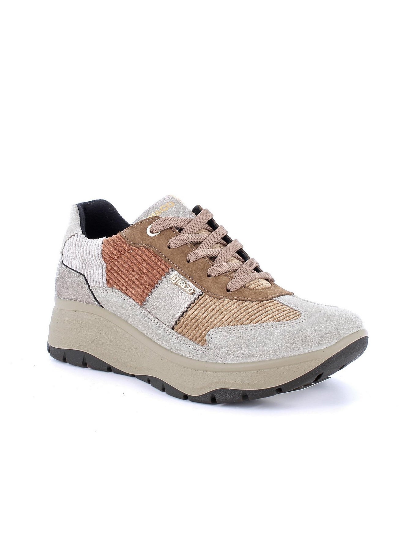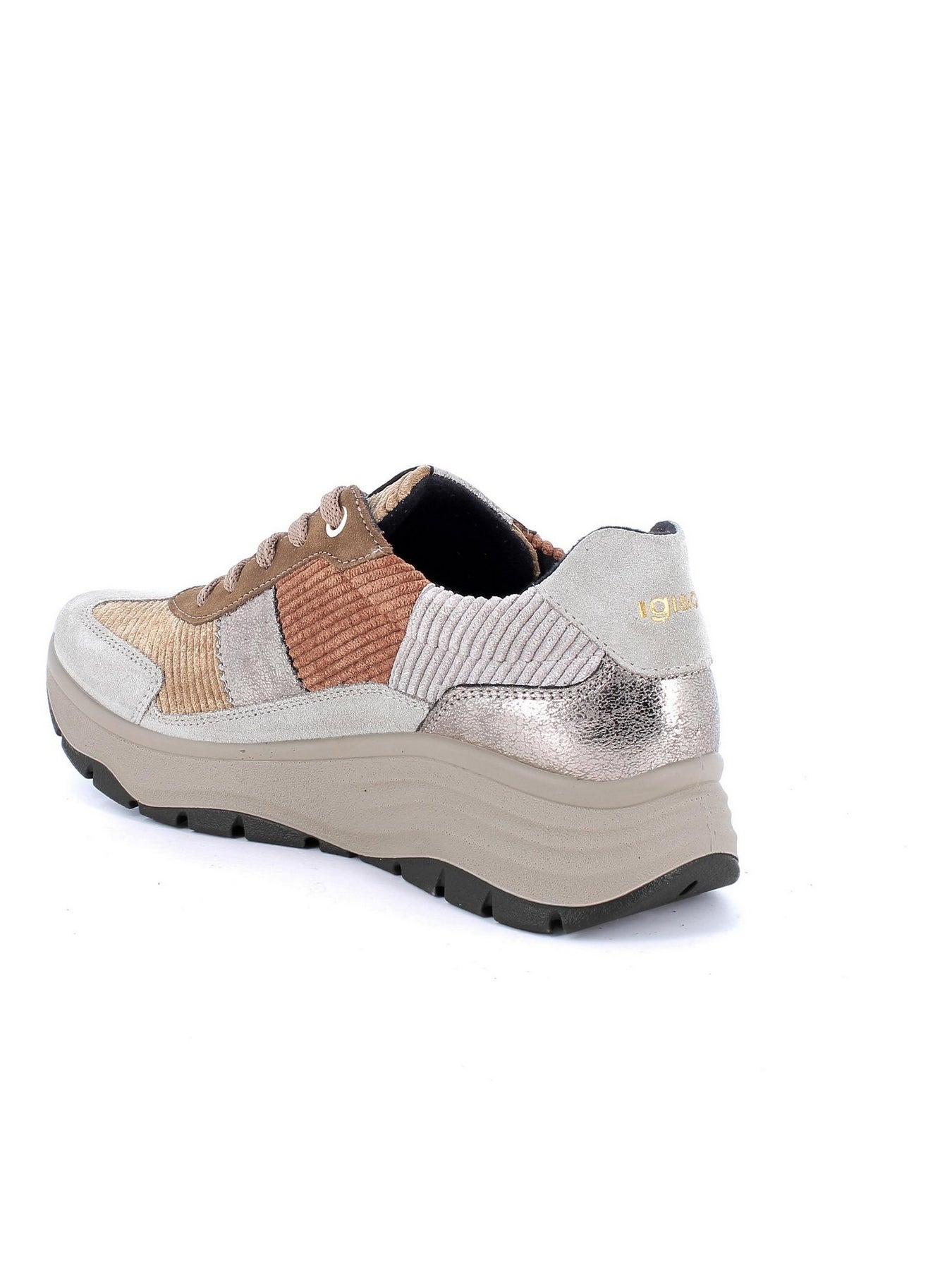 La IGI&CO 86828 Avorio/Beige è una sneaker dal design contemporaneo e femminile, realizzata con una combinazione di pelle, suede e inserti laminati per uno stile unico e ricercato.
