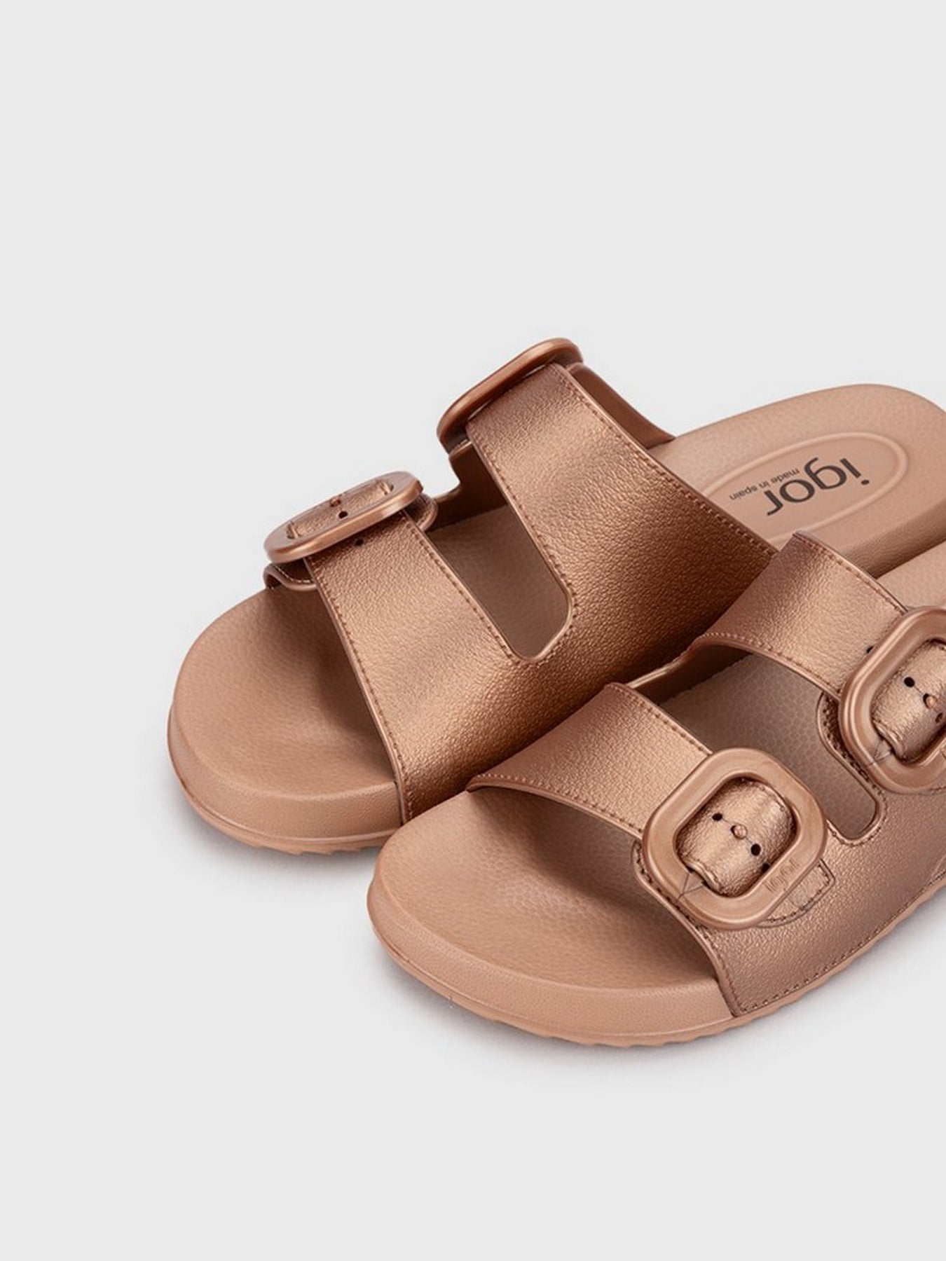Il sandalo basso IGOR modello S10345-099 in tonalità Bronce è la scelta ideale per chi cerca una calzatura estiva pratica, leggera e alla moda. Il design minimalista con doppia fibbia regolabile offre una calzata personalizzata, perfetta per ogni momento della giornata.