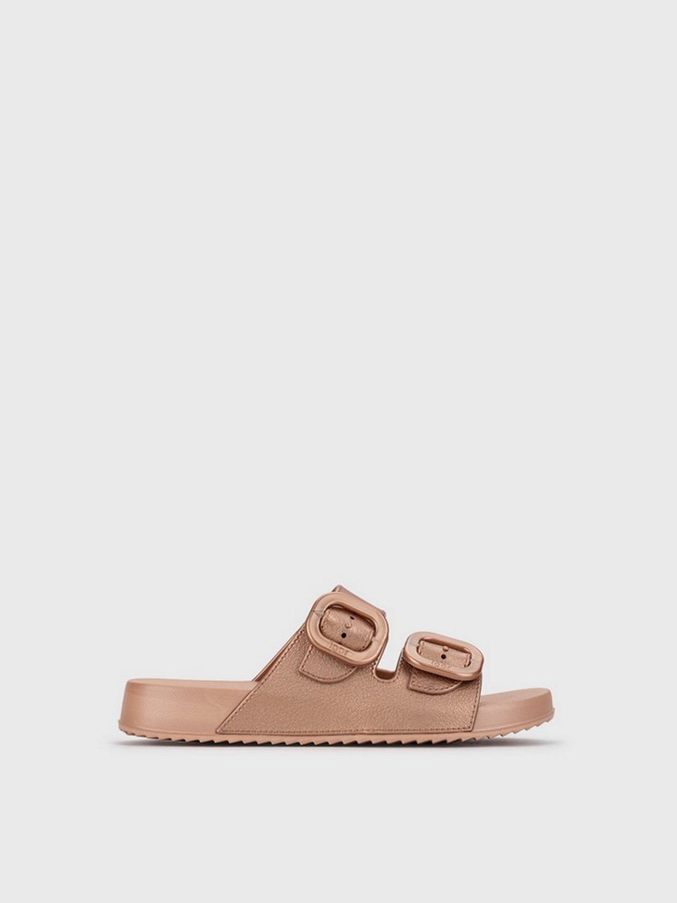 Realizzato in materiale sintetico impermeabile e flessibile, è facile da pulire e resistente all'uso quotidiano. La suola antiscivolo assicura stabilità e comfort su ogni tipo di superficie, mentre il look bronzo dona un tocco moderno e versatile, abbinabile sia con outfit casual che più ricercati.