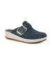 Realizzata in morbido tessuto color ghiaccio, è arricchita da una fibbia decorativa dorata con inserto animalier che dona un tocco moderno e distintivo. Il plantare anatomico garantisce sostegno al piede e comodità prolungata, mentre la zeppa da 4 cm slancia la figura senza sacrificare la stabilità.