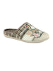 Realizzata in tessuto morbido blu con bordo a contrasto viola, si distingue per l'applicazione decorativa a tema orsetto con cuori ricamati, che dona un tocco dolce e originale. La struttura a sabot permette una calzata pratica e veloce.