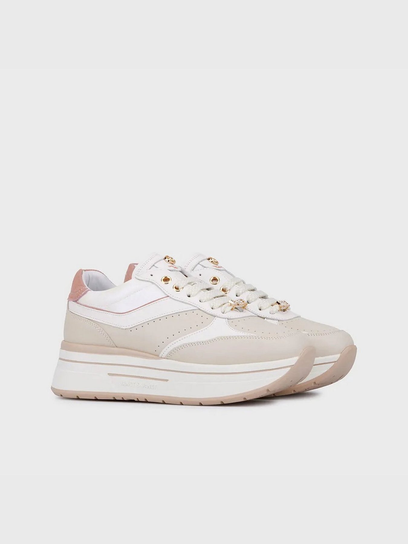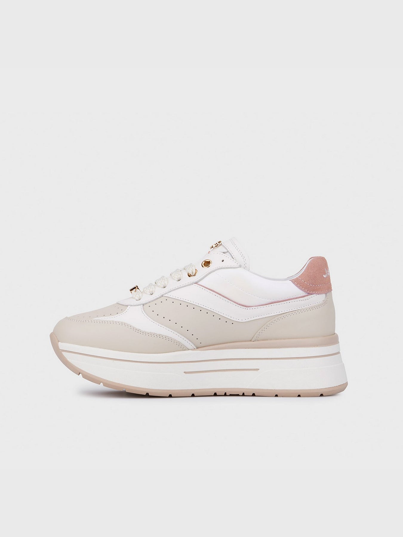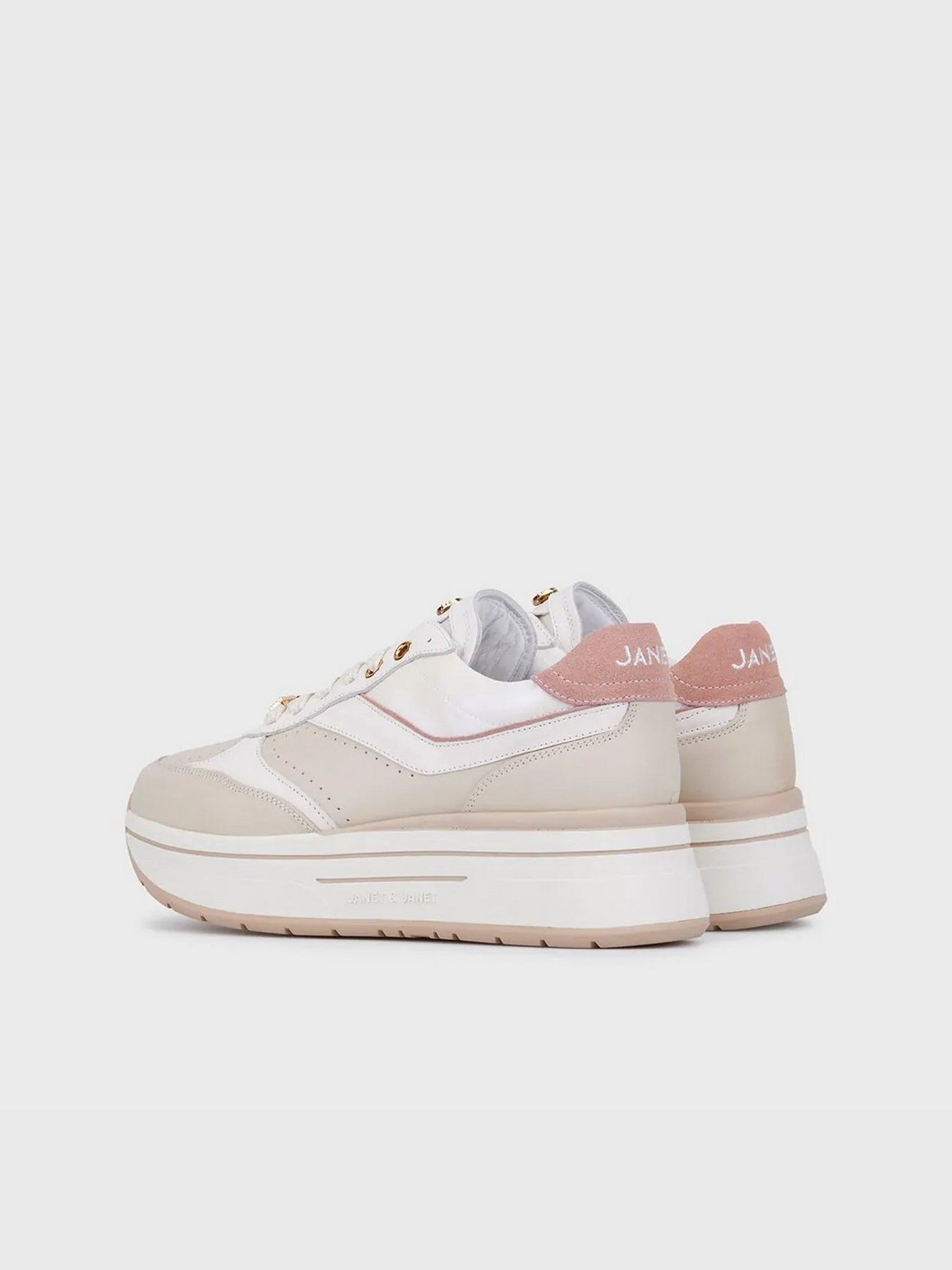 JANET & JANET Sneaker Con Zeppa Donna - J-020 Latte/Pink