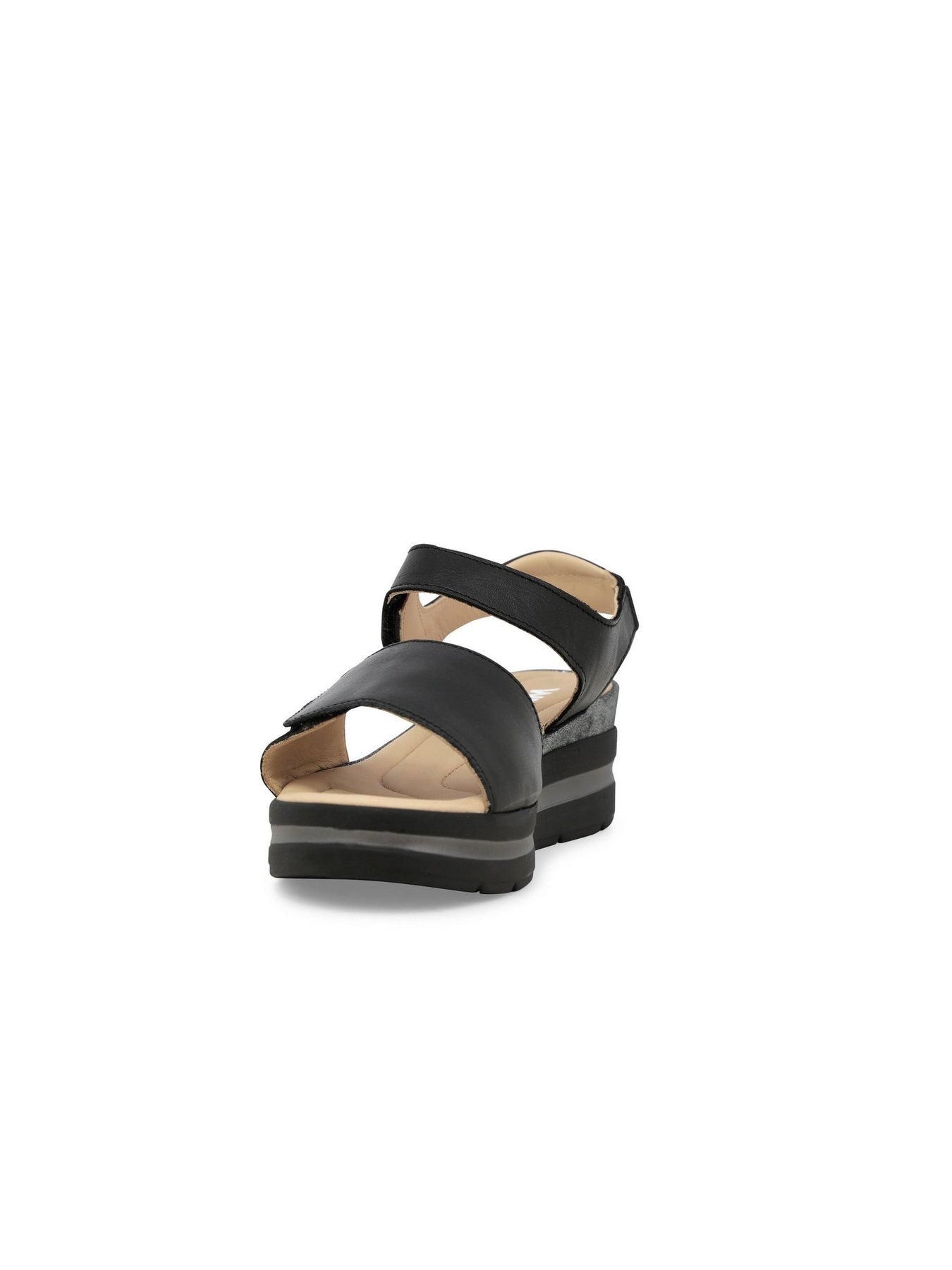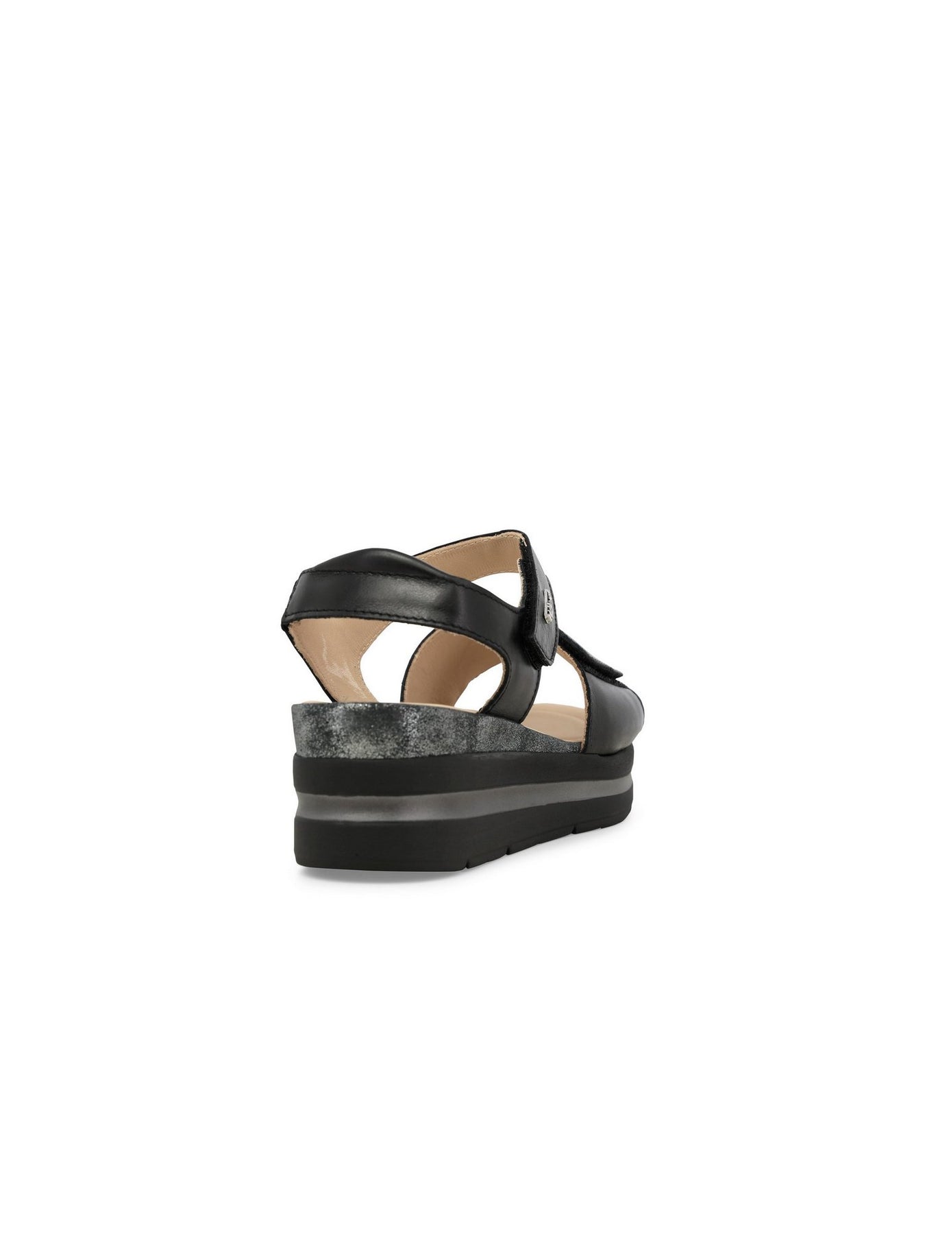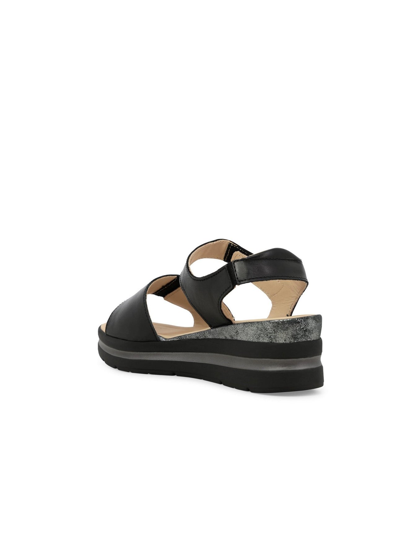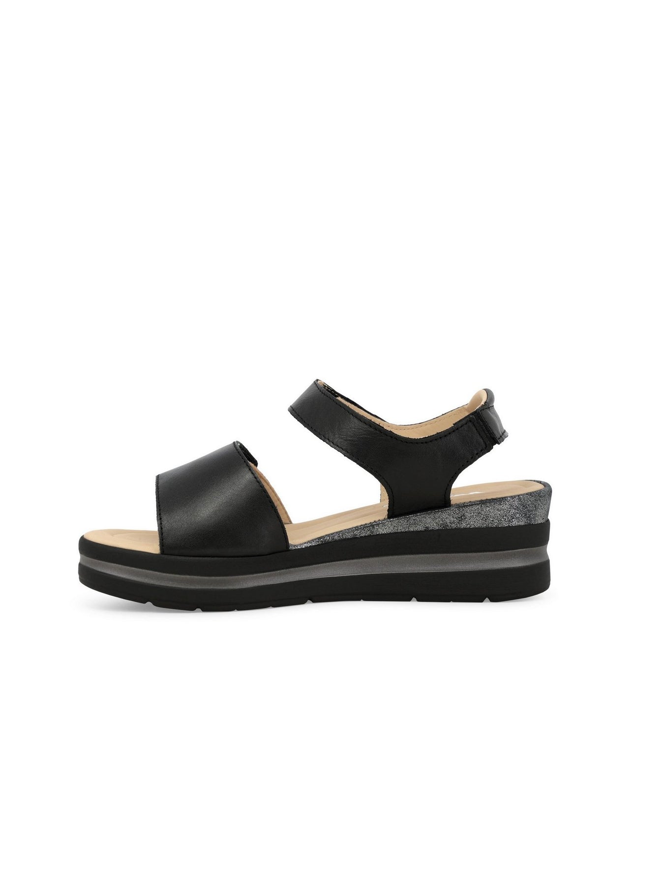 La tomaia in vera pelle con strappi in velcro garantisce una calzata regolabile e stabile, mentre il plantare in memory foam assicura un appoggio soffice e duraturo. La zeppa monoblocco da 5 cm dona slancio senza rinunciare alla comodità.