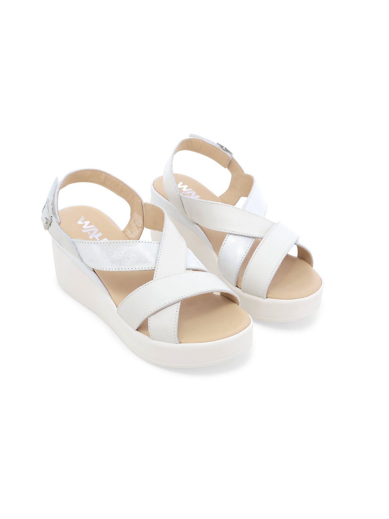 La tomaia in vera pelle, con fasce incrociate e cinturino regolabile, garantisce stabilità e stile, mentre il plantare in memory foam assicura una calzata soffice e comoda. La zeppa monoblocco da 6 cm slancia la silhouette senza sacrificare il comfort.