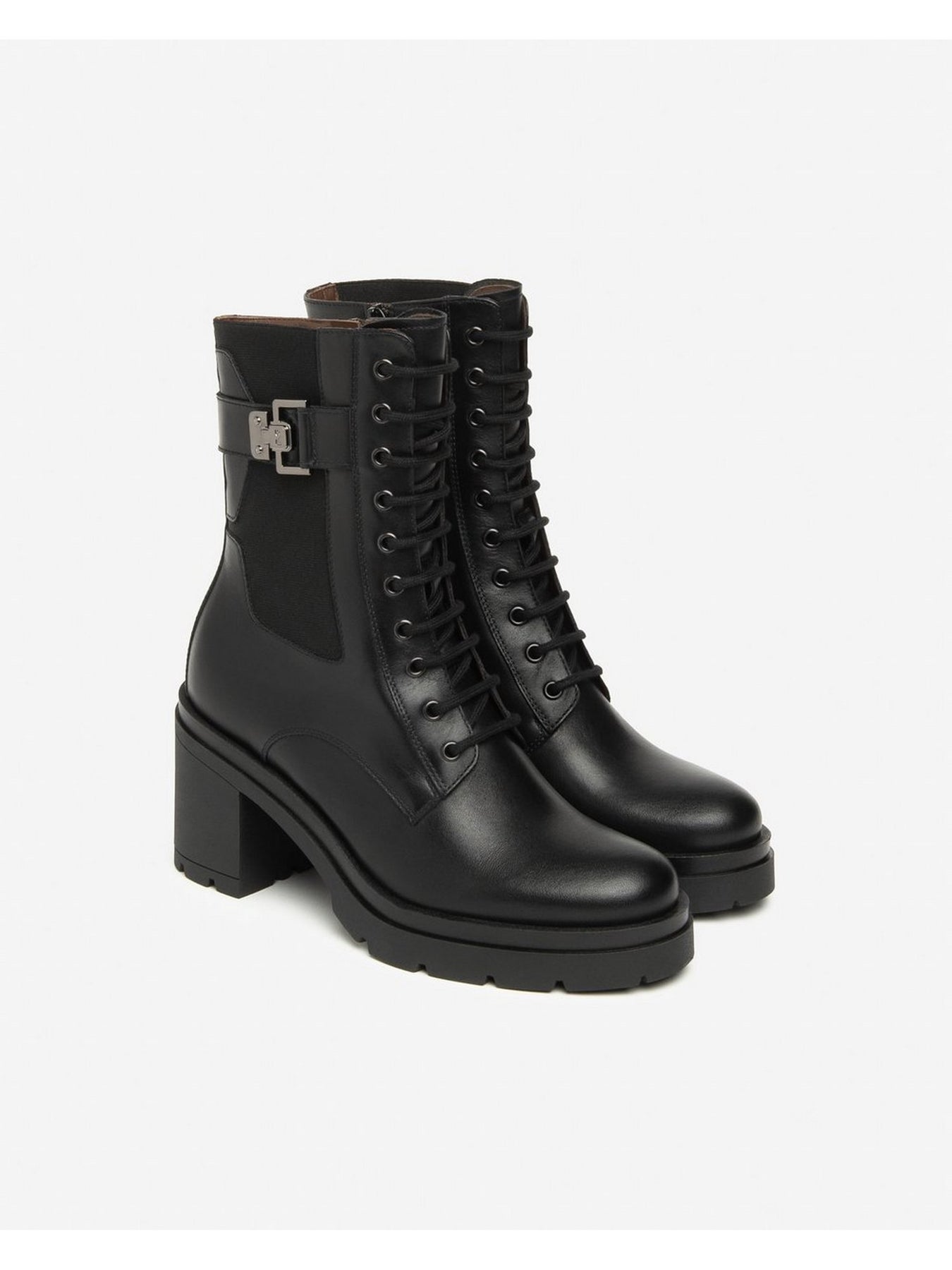NERO GIARDINI Anfibi Tacco Alto Donna - I514793D Nero Anfibi donna in pelle nera con allacciatura frontale, zip laterale e tacco a blocco da 8 cm.