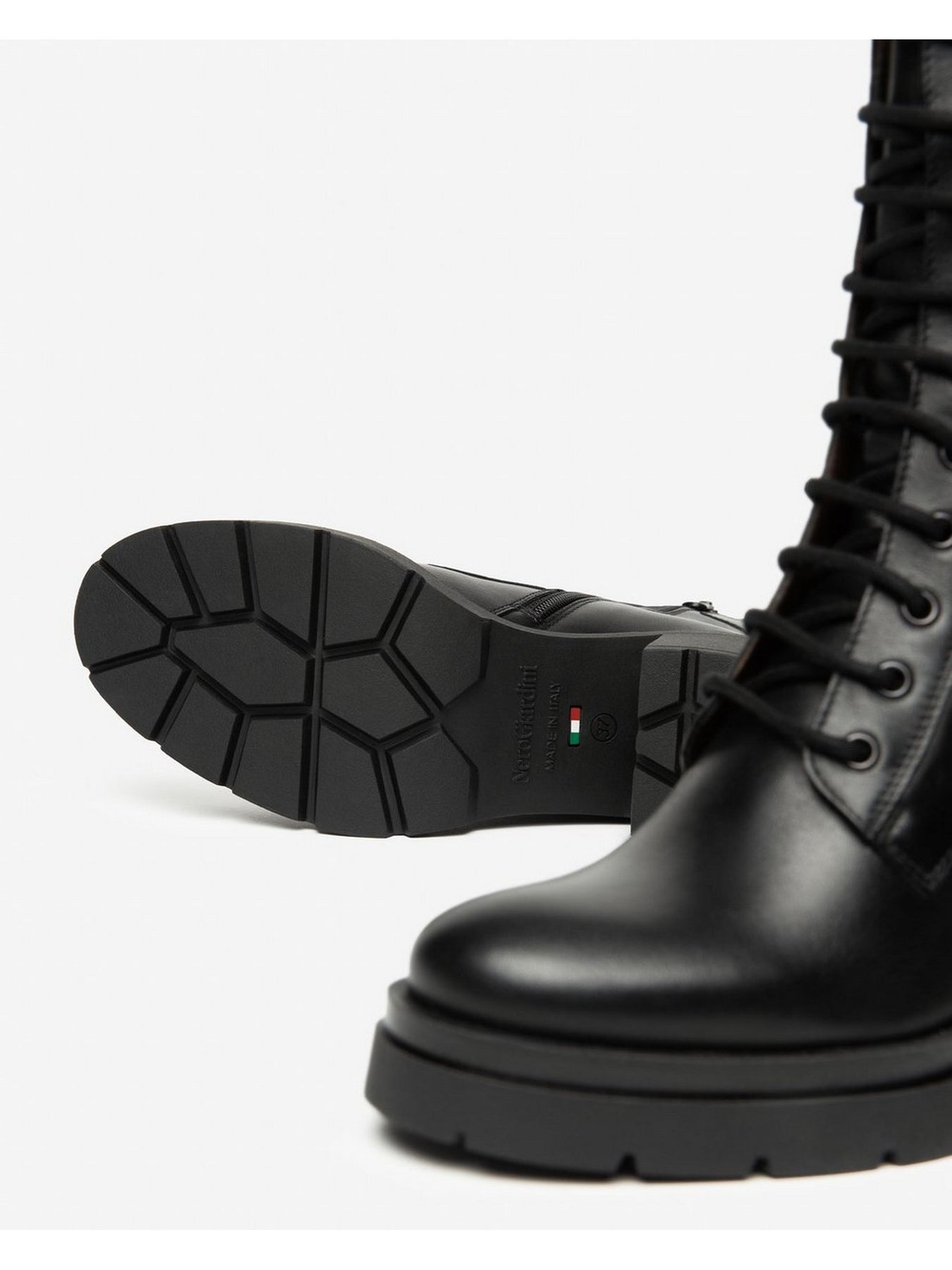 La Nero Giardini I514793D Nero è un anfibio grintoso ed elegante, realizzato in pelle di alta qualità con lavorazione artigianale Made in Italy.