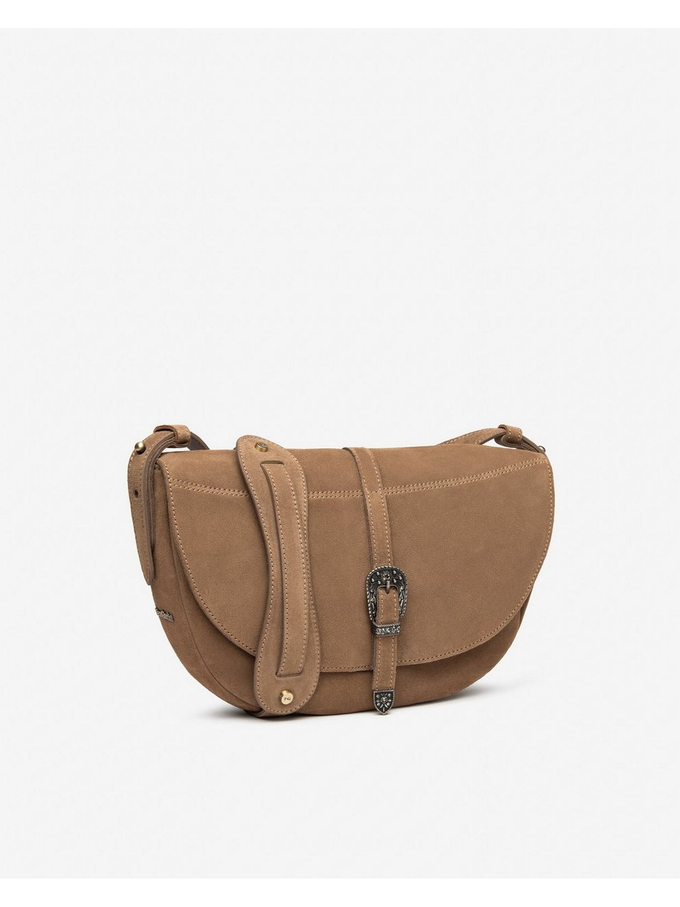 La chiusura con bottone magnetico assicura praticità e sicurezza, arricchita da una fibbia decorativa che dona carattere e unicità al design. L'interno in tessuto sintetico offre resistenza e funzionalità. Con dimensioni di 33x19x8 cm, è compatta ma spaziosa, ideale per portare con sé tutto il necessario.