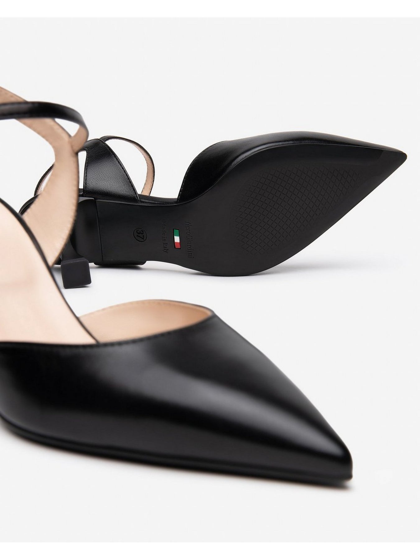 La suola in gomma fornisce una presa sicura su ogni superficie, mentre il colore nero conferisce un tocco di raffinatezza, facilmente abbinabile a ogni outfit.