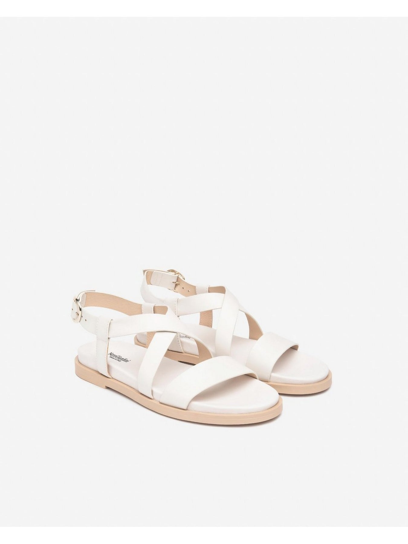 Il sandalo basso NERO GIARDINI E513490D in tonalità osso è la perfetta combinazione tra semplicità e raffinatezza. Il design essenziale con fasce larghe in pelle e il colore neutro lo rendono un must-have per ogni guardaroba estivo, facilmente abbinabile a qualsiasi look.