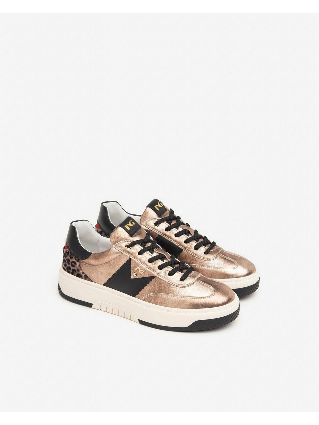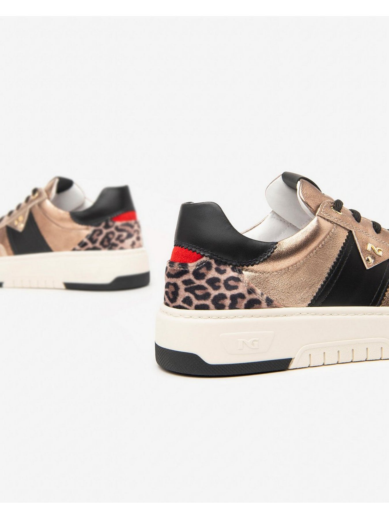 Realizzata in pelle di alta qualità, presenta un design raffinato arricchito da inserti animalier sul retro e logo laterale a contrasto. La suola platform bicolore assicura un look moderno e grintoso, offrendo al tempo stesso stabilità e comfort.