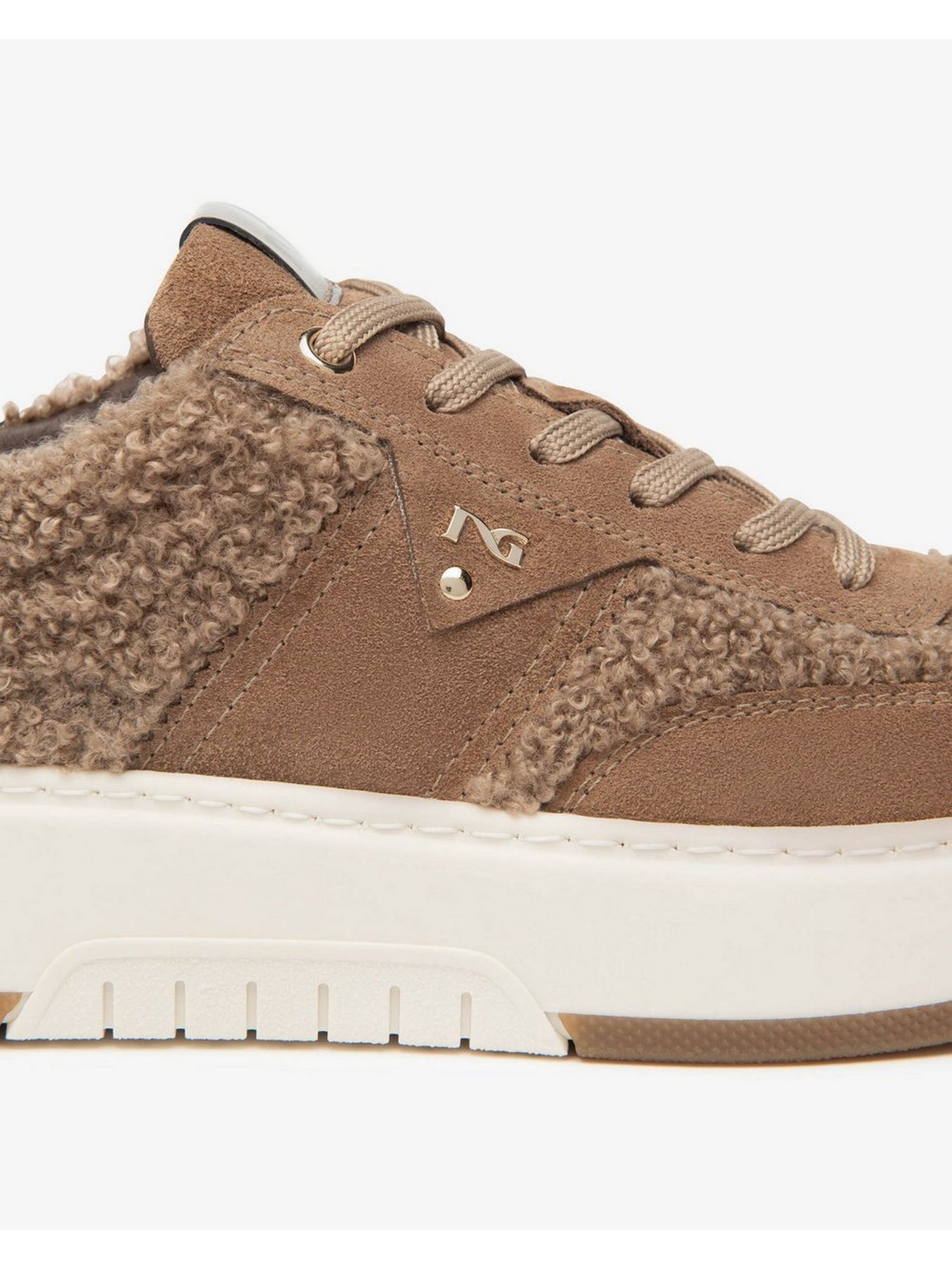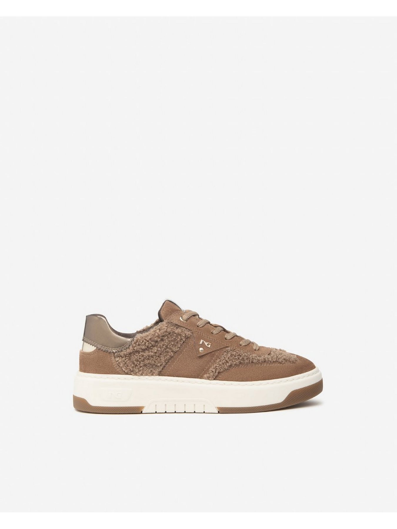 Realizzata in pelle e tessuto con lavorazione effetto shearling, offre un look caldo e sofisticato, perfetto per la stagione autunnale e invernale. La suola platform bicolore in gomma assicura stabilità, grip e leggerezza, mentre la linea moderna dona slancio alla silhouette.
