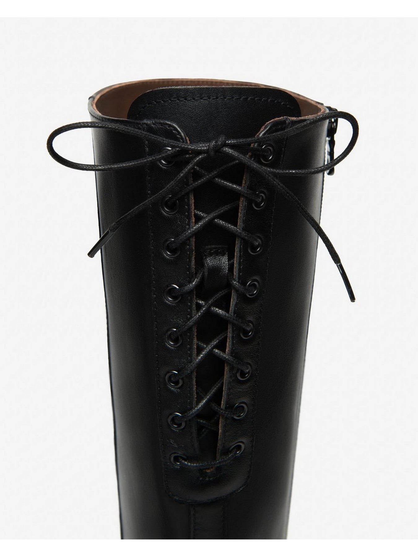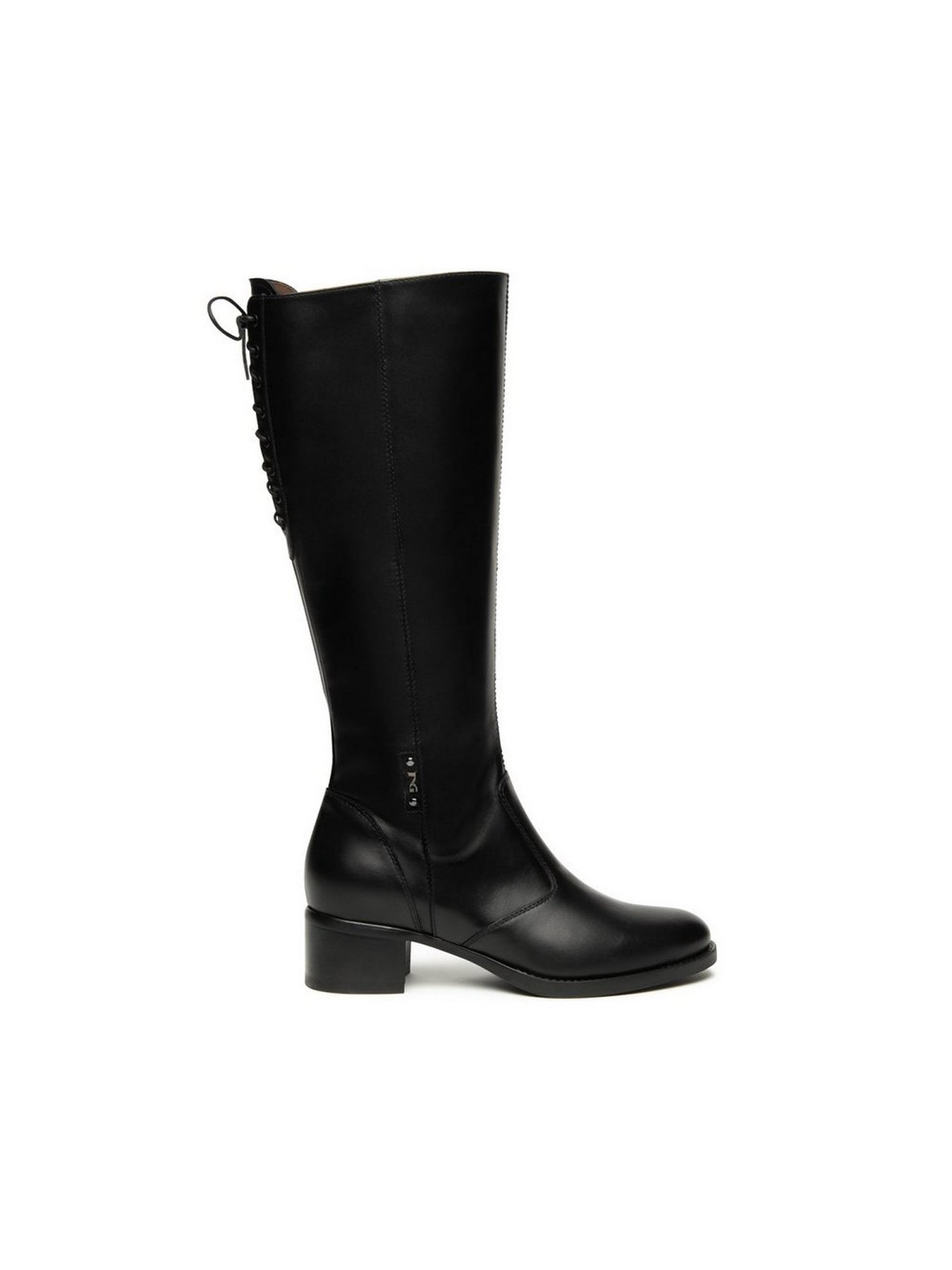 Questo stivale da donna è realizzato in pelle nera di alta qualità, con fodera interna in pelle che assicura comfort e durata nel tempo. La pratica chiusura con zip laterale consente una calzata facile e veloce, mentre il design lineare ed elegante lo rende versatile per diversi abbinamenti.