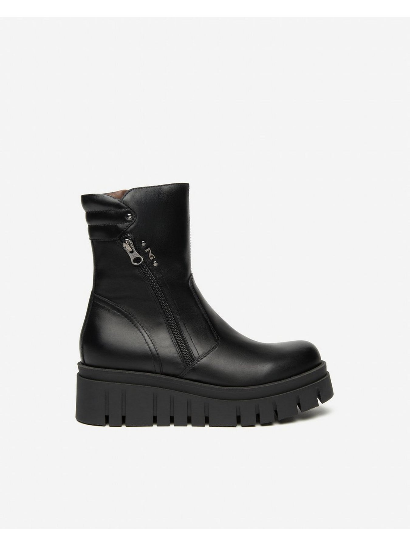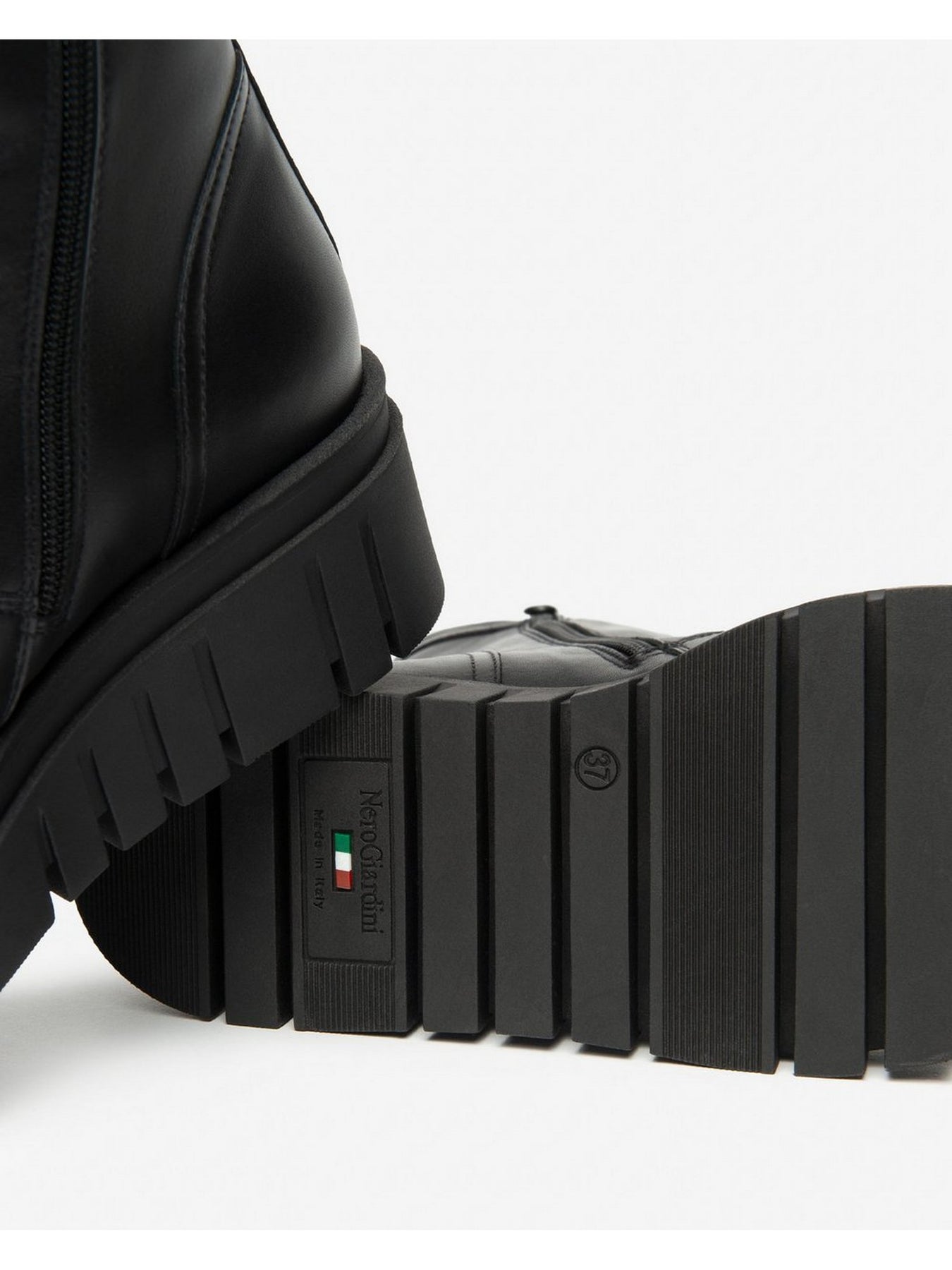 NERO GIARDINI Tronchetto Con Zeppa Donna - I514913D Nero Tronchetto donna in pelle nera con zip laterale e fondo platform con zeppa da 5,5 cm.