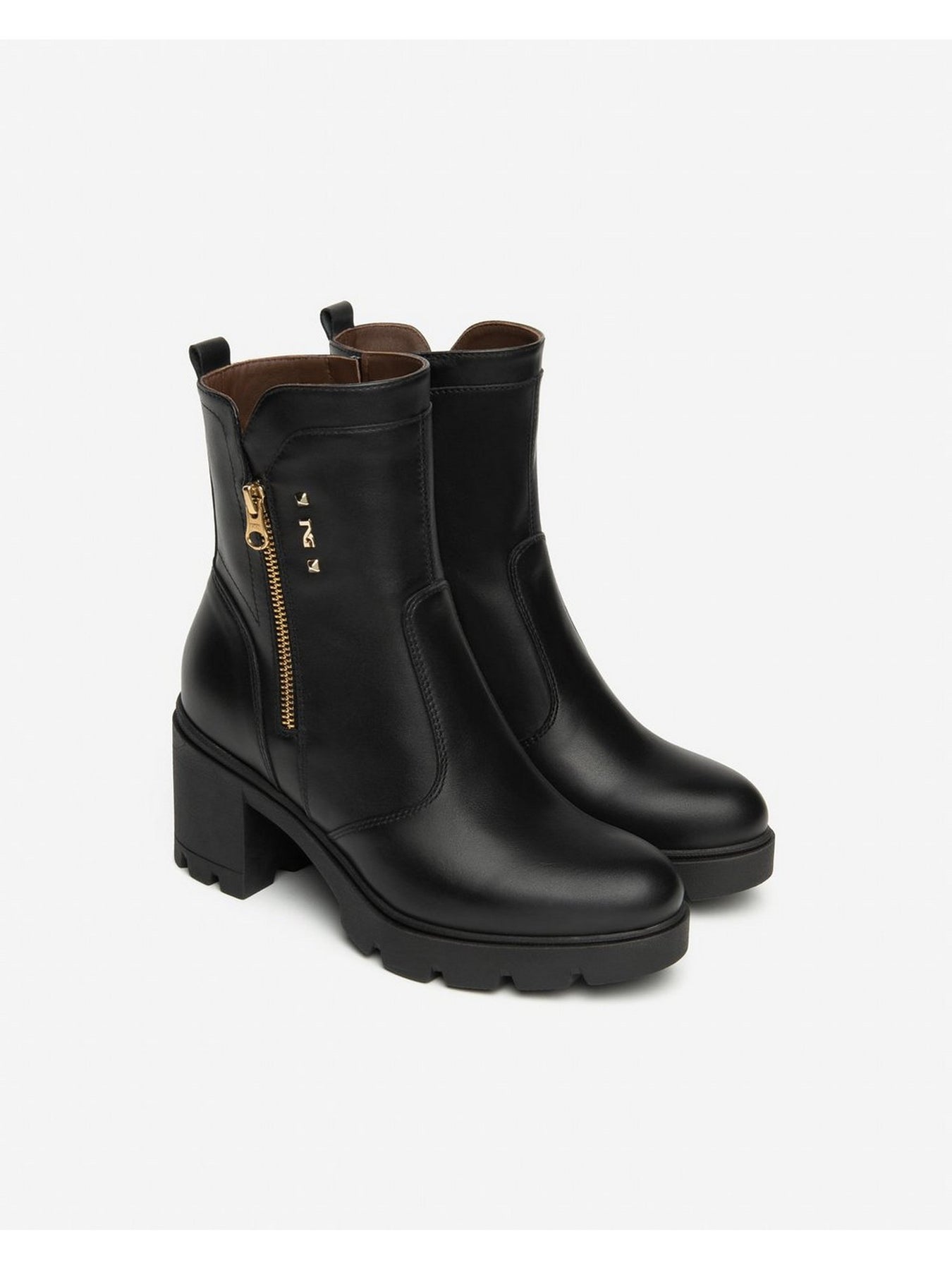 I NERO GIARDINI I514880D Nero sono tronchetti da donna realizzati in pelle liscia di alta qualità Made in Italy. Il design essenziale è arricchito da una zip laterale dorata che dona un tocco moderno e ricercato.