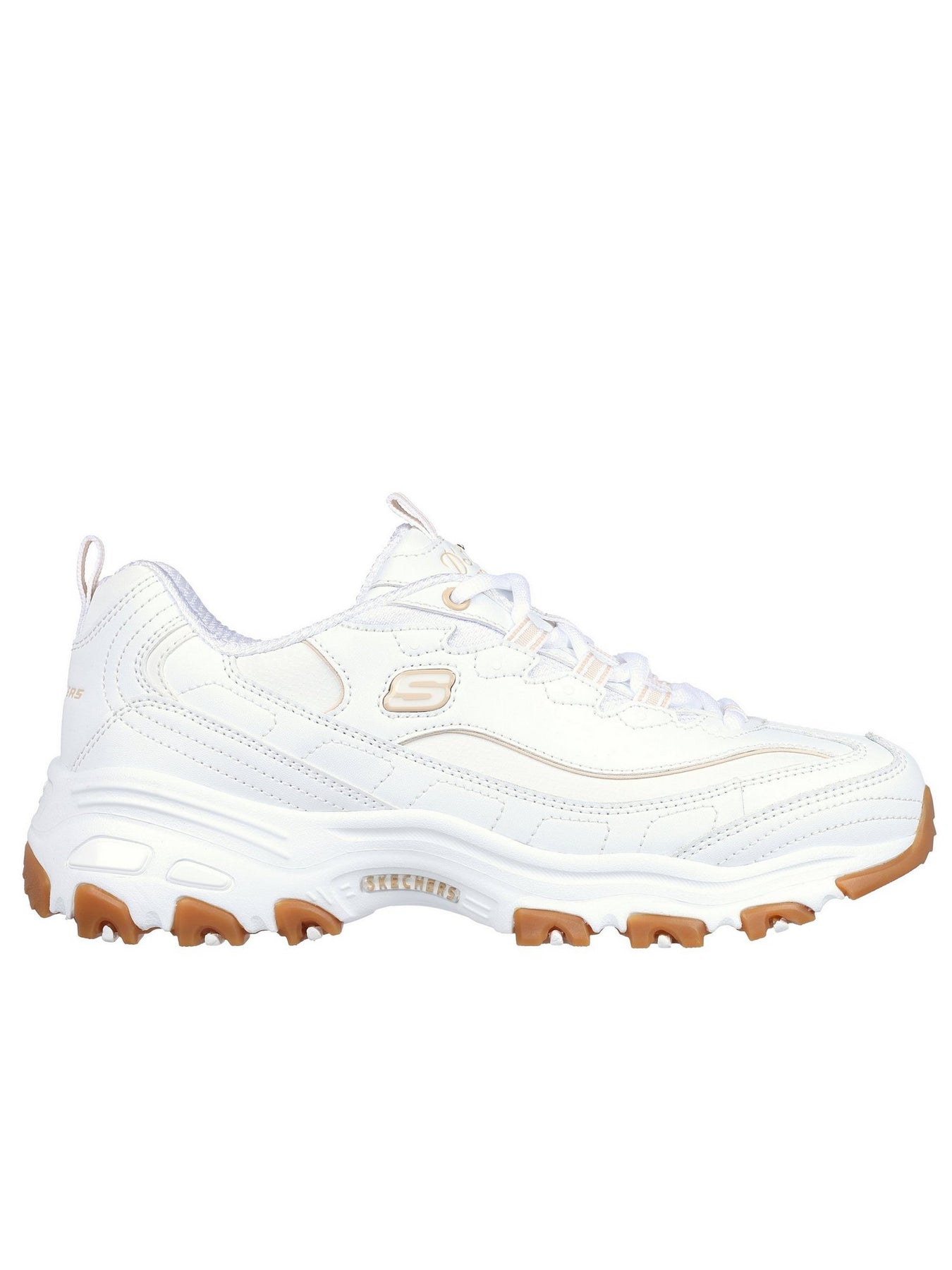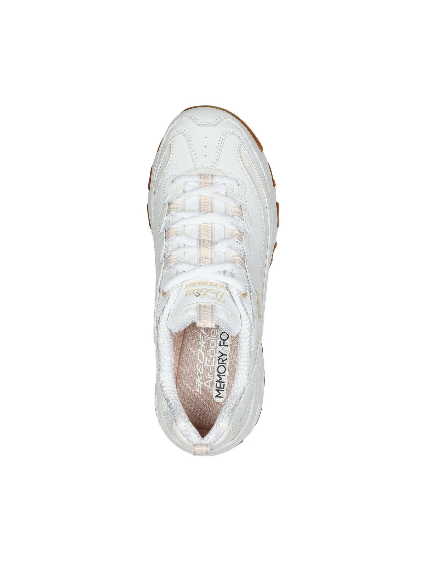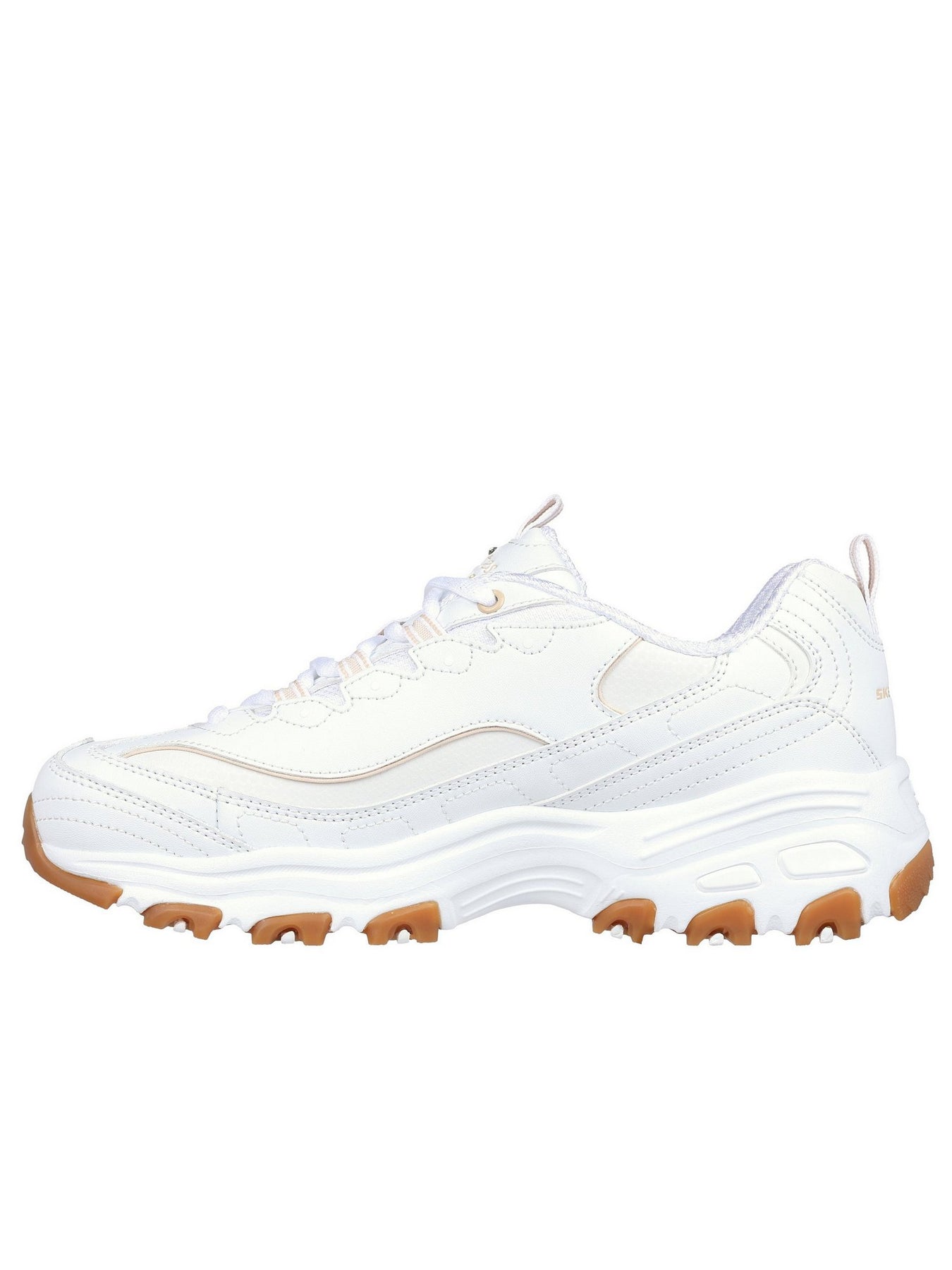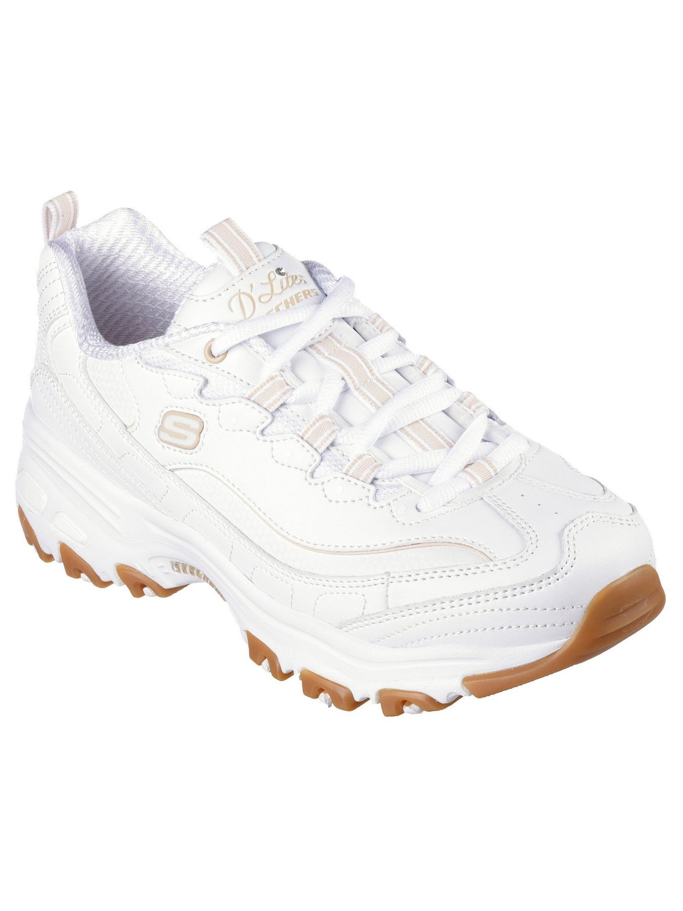 La sneaker SKECHERS D'Lites 149807 Bianco è un'icona del brand, dal look sportivo e fashion. Realizzata in materiale bianco con dettagli beige a contrasto, presenta il tipico design chunky con cuciture a vista e logo laterale S.