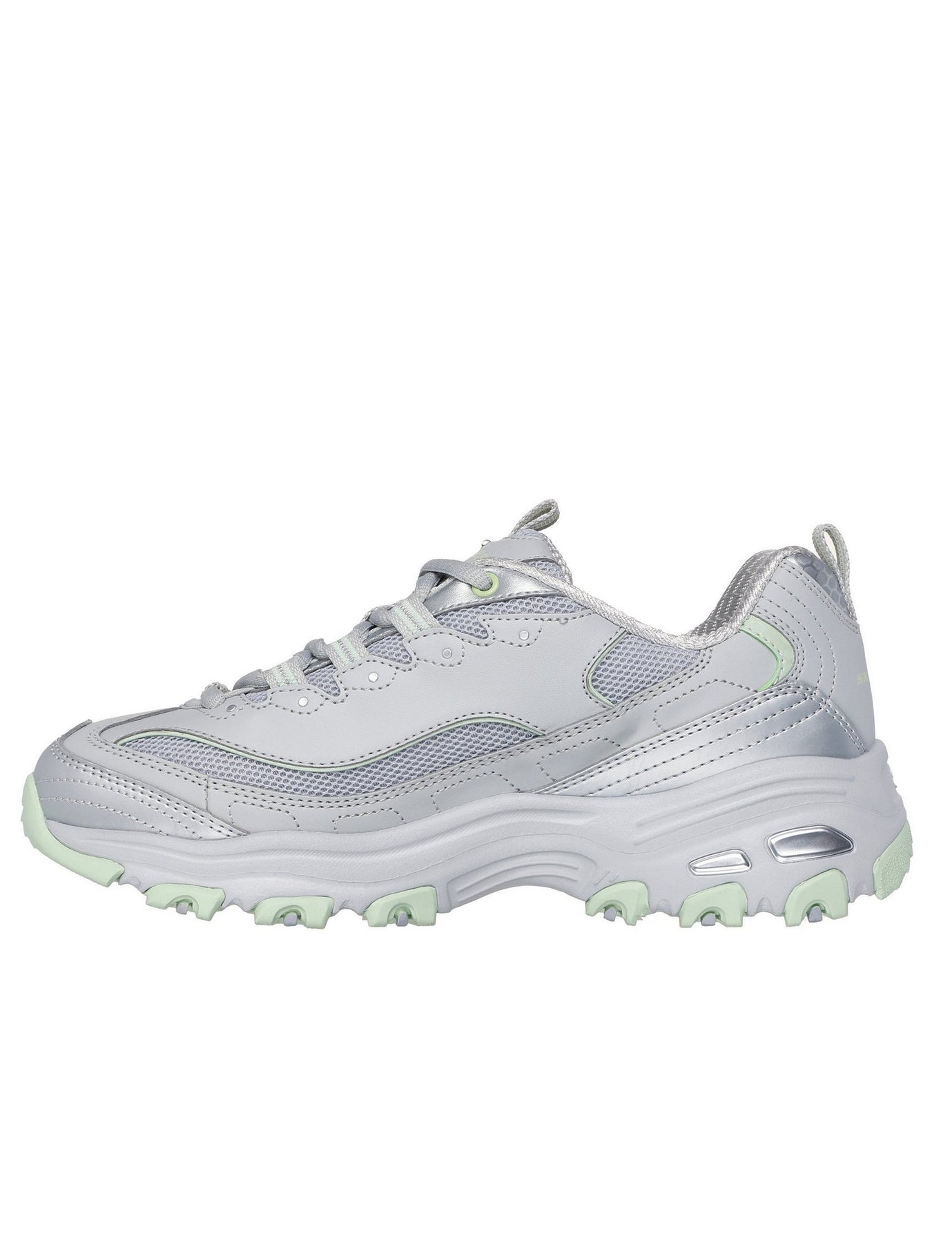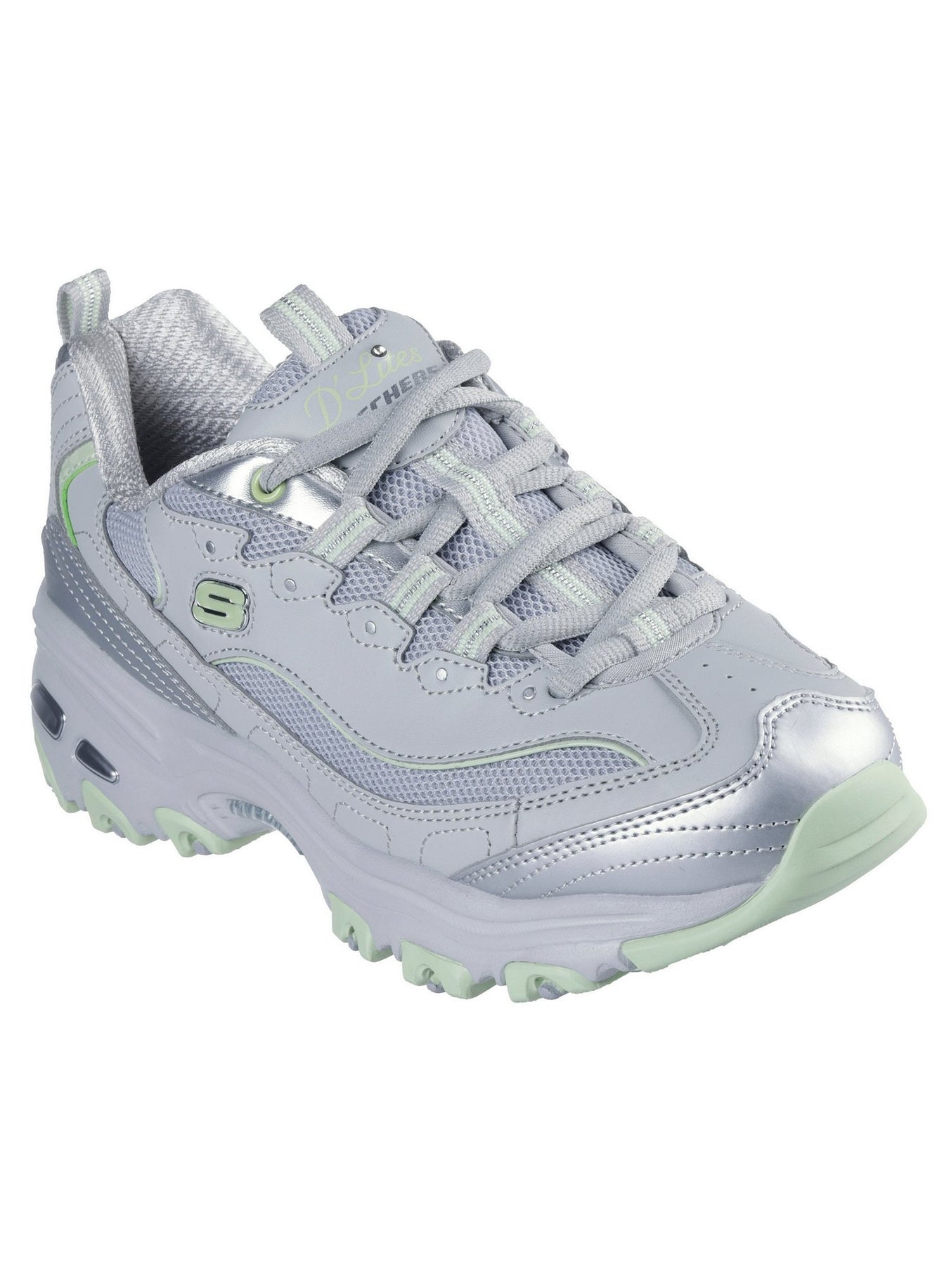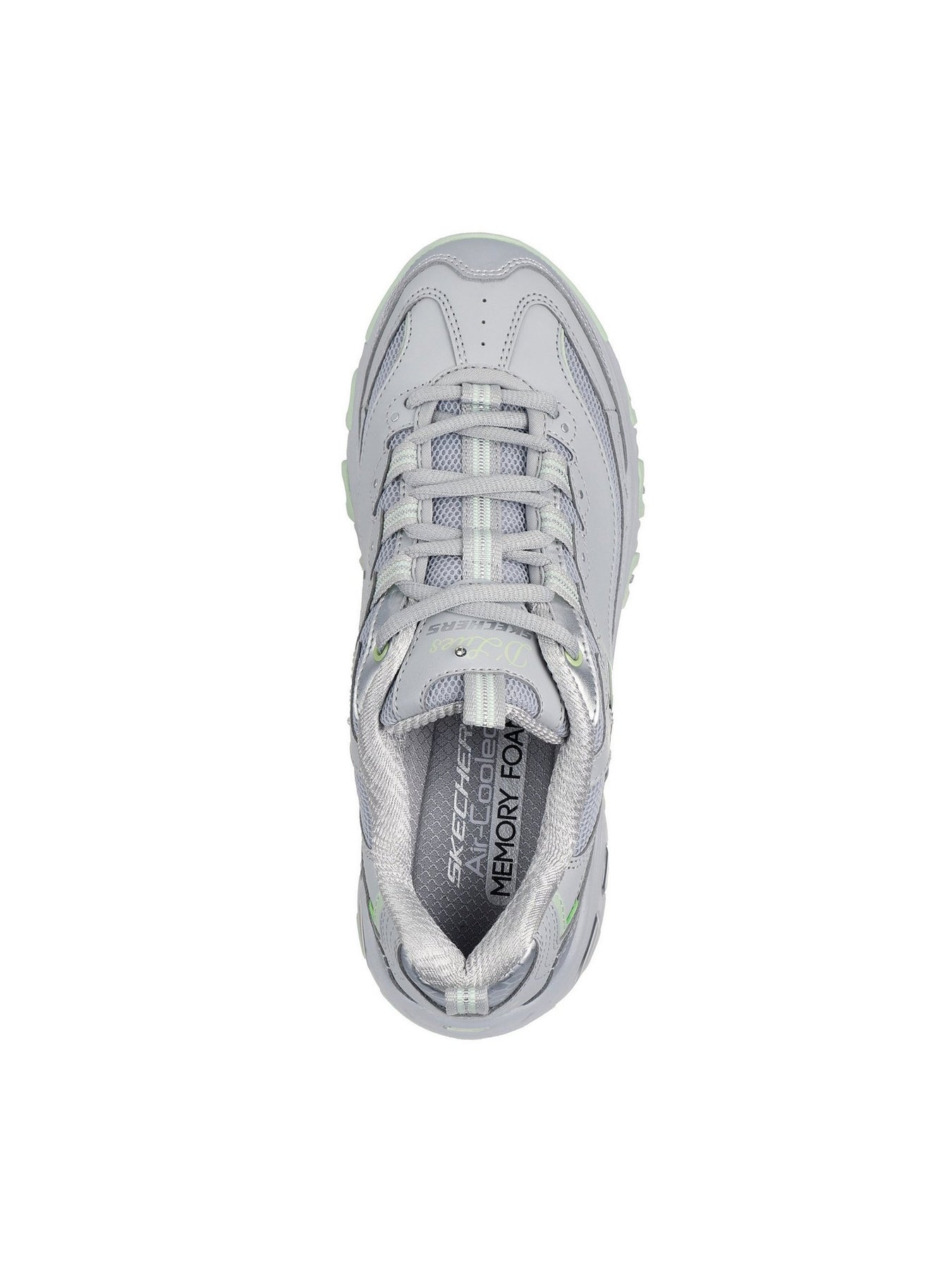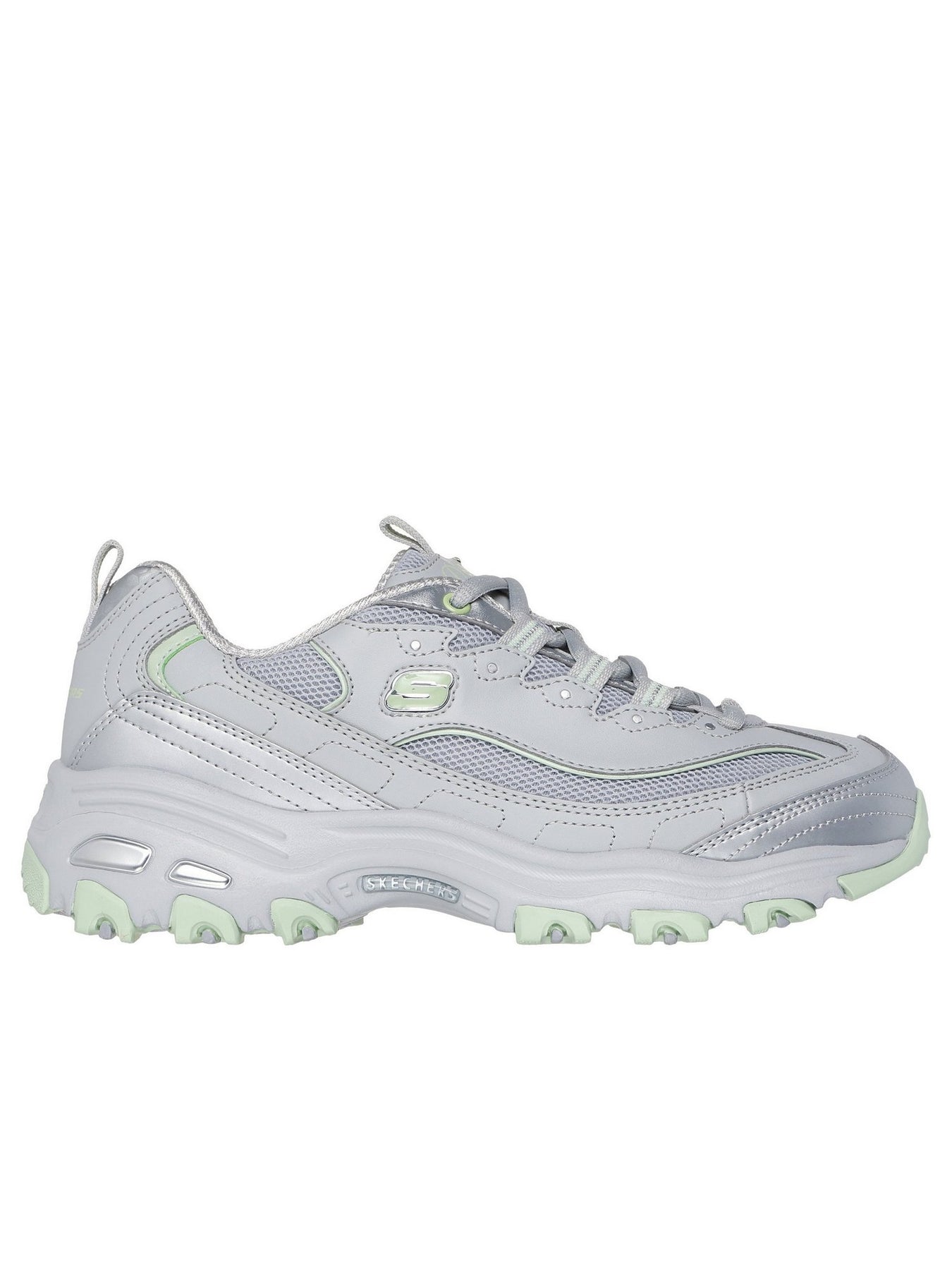 SKECHERS D'Lites Sneaker Bassa Donna - 150246 Grigio. Sneaker grigia dal design rétro con dettagli verde chiaro e suola chunky ammortizzata.