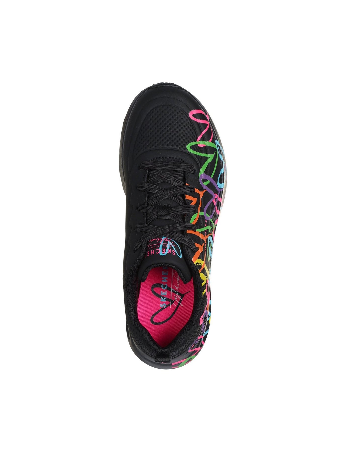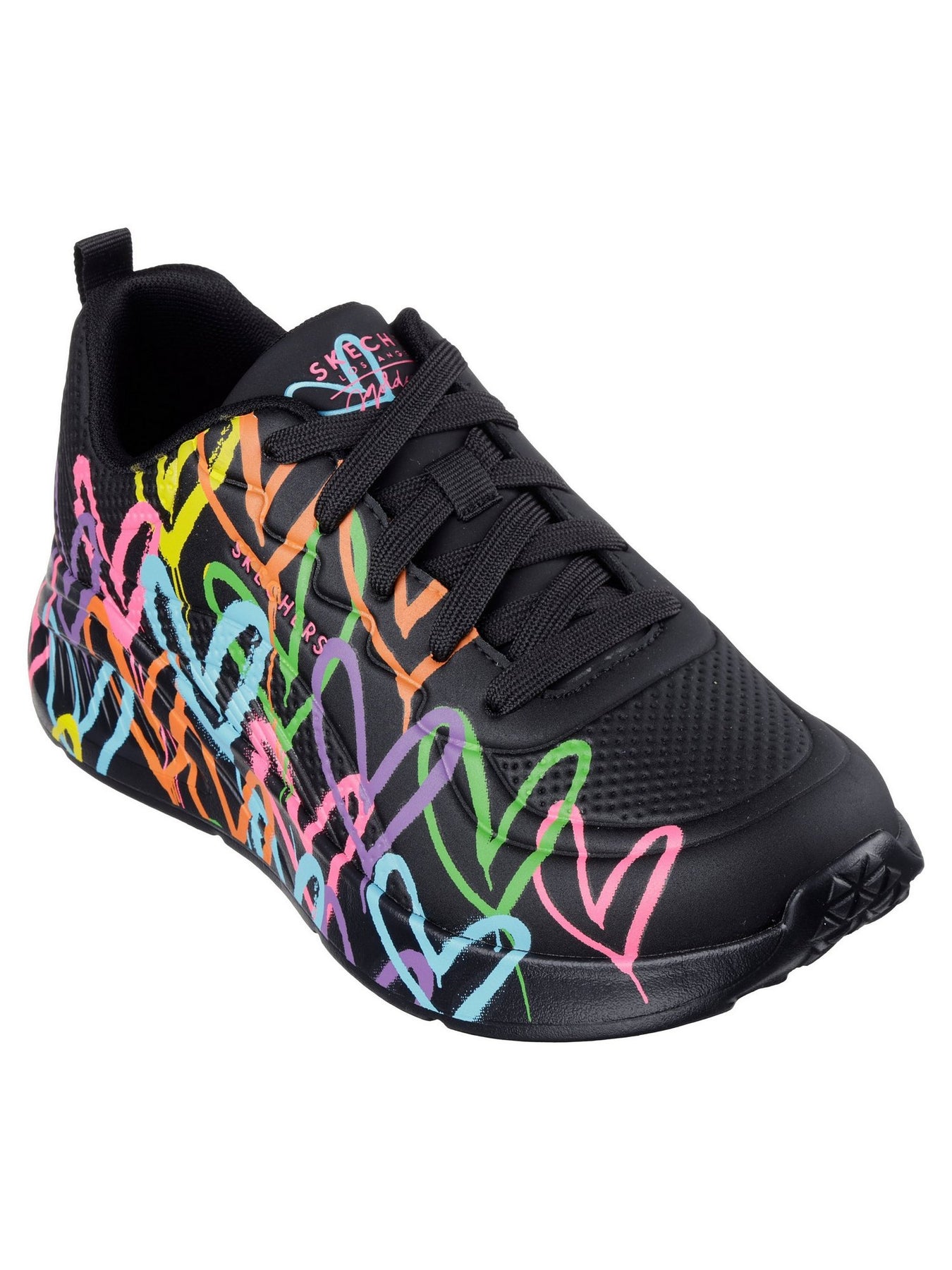 La sneaker SKECHERS Uno Lite 177977 Multicolore è un modello dallo stile vivace e originale che unisce praticità e design fashion. Realizzata in materiale tecnico nero, è decorata con una stampa a cuori colorati che regala un look allegro e unico.