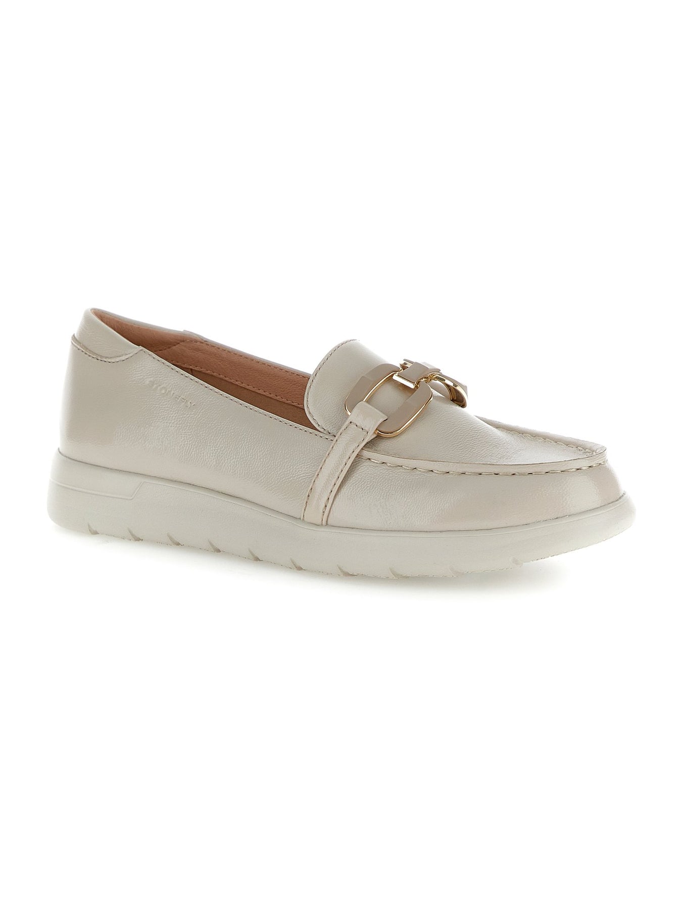 Il mocassino STONEFLY 222298 in tonalità Birch Brown è un'elegante rivisitazione del classico stile college, perfetto per donne che desiderano unire comfort e raffinatezza. Realizzato in pelle ovina lucida, conquista con il suo effetto shiny e il dettaglio del morsetto dorato che ne valorizza la linea.